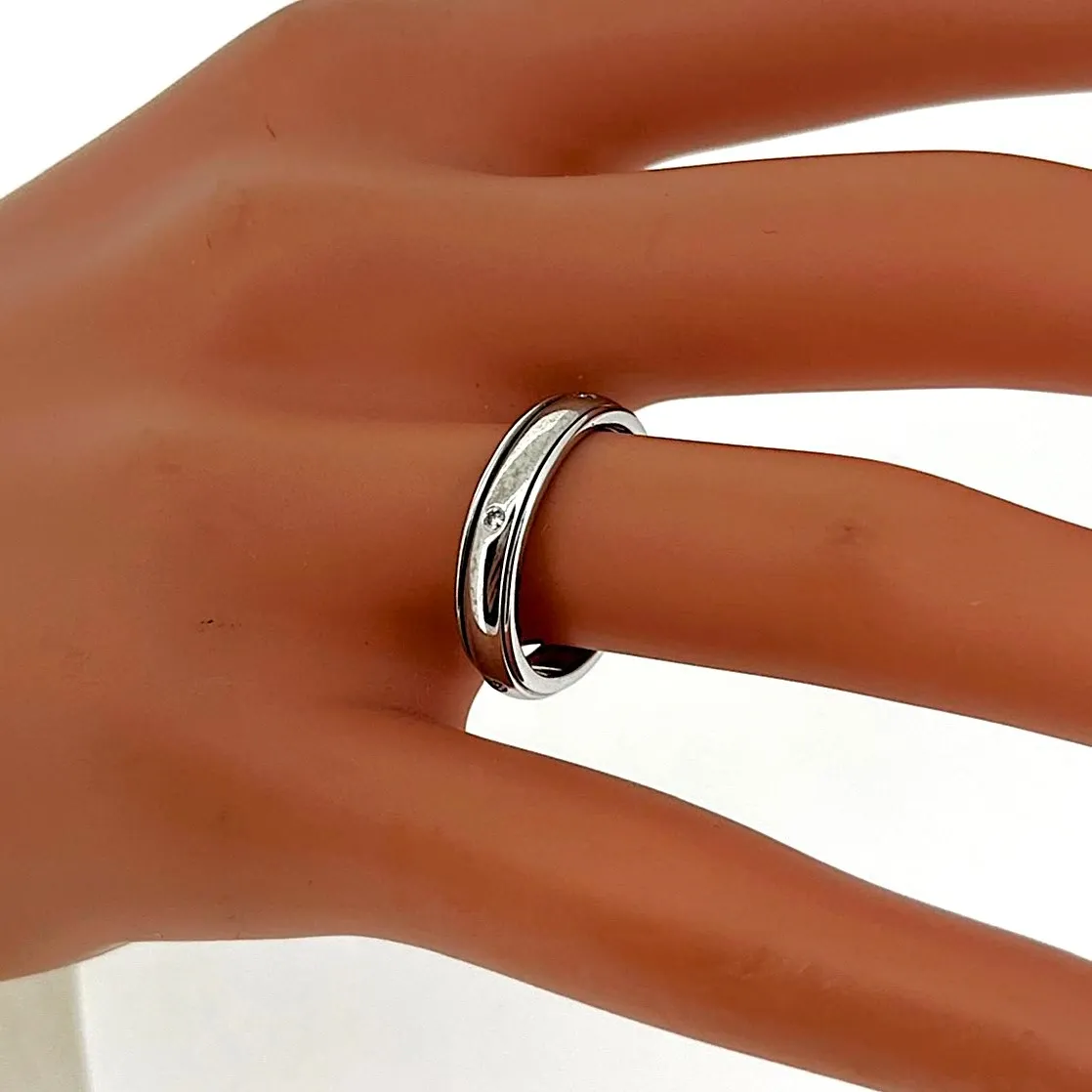 0.08ct Diamond & 9ct White Gold 4mm Spinner Band – 2.7g A unique blend of style and symbolism, this 4mm spinner band is crafted in 9ct white gold and features a total of 0.08 carats of sparkling diamonds. Weighing 2.7 grams, it offers a comfortable fit while delivering subtle elegance. The spinning outer band provides a calming, tactile experience, while the inner diamond-studded ring glimmers with every movement. Perfect as a thoughtful gift, a meditation accessory, or a stylish addition to your jewellery collection, this spinner band combines beauty, functionality, and timeless appeal