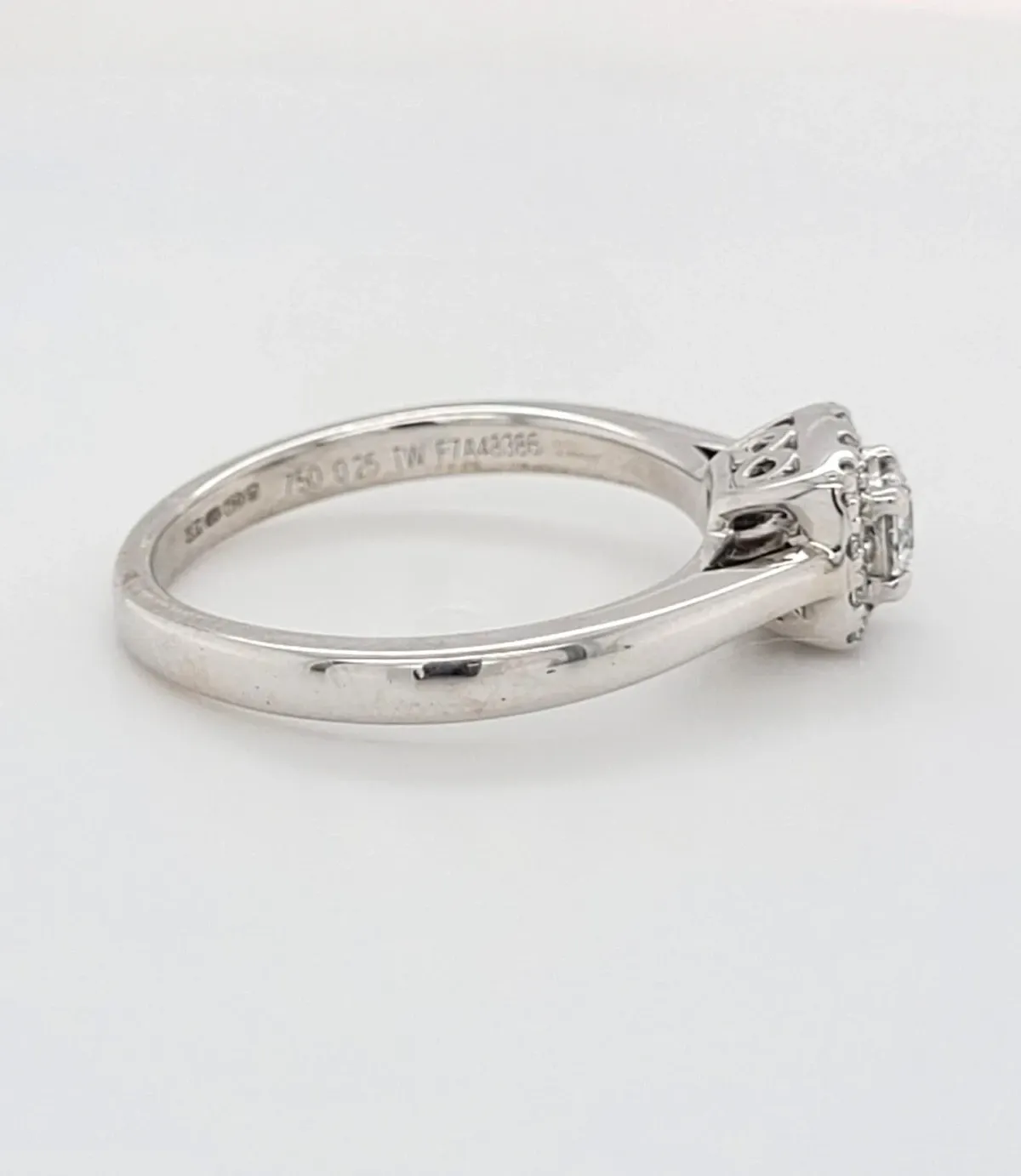 Timeless sophistication meets modern sparkle in this exquisite 0.25-carat diamond ring. Crafted from luxurious 18ct white gold and weighing 3.0 grams, this Size J ring features a dazzling solitaire diamond set at the heart of a delicate halo design, enhancing brilliance and visual impact.