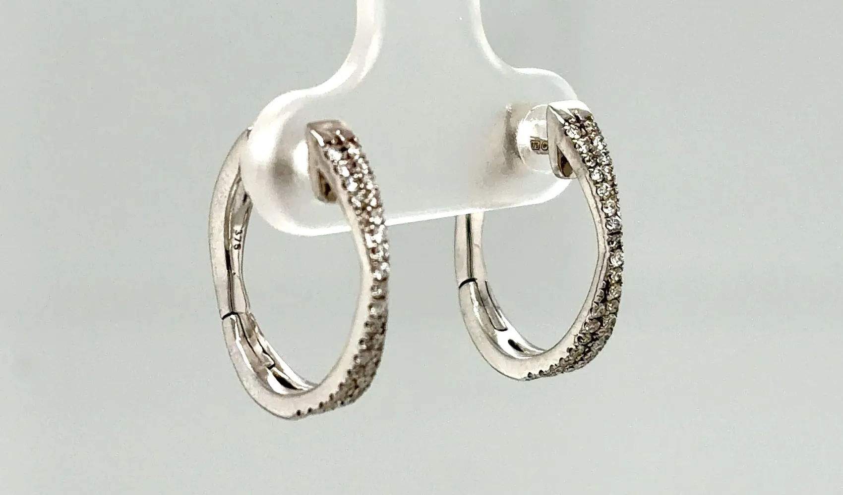 0.25ct Diamond & 9ct White Gold Kiss Hoop Earrings – 2.4g Add a touch of sparkle and elegance with these 0.25ct Diamond Kiss Hoop Earrings, crafted in 9ct white gold. Featuring a contemporary “kiss” hoop design adorned with brilliant-cut diamonds, these earrings offer a stylish yet timeless look. Weighing 2.4 grams, they are lightweight and comfortable for everyday wear or special occasions, making them a versatile addition to any jewellery collection. Details: