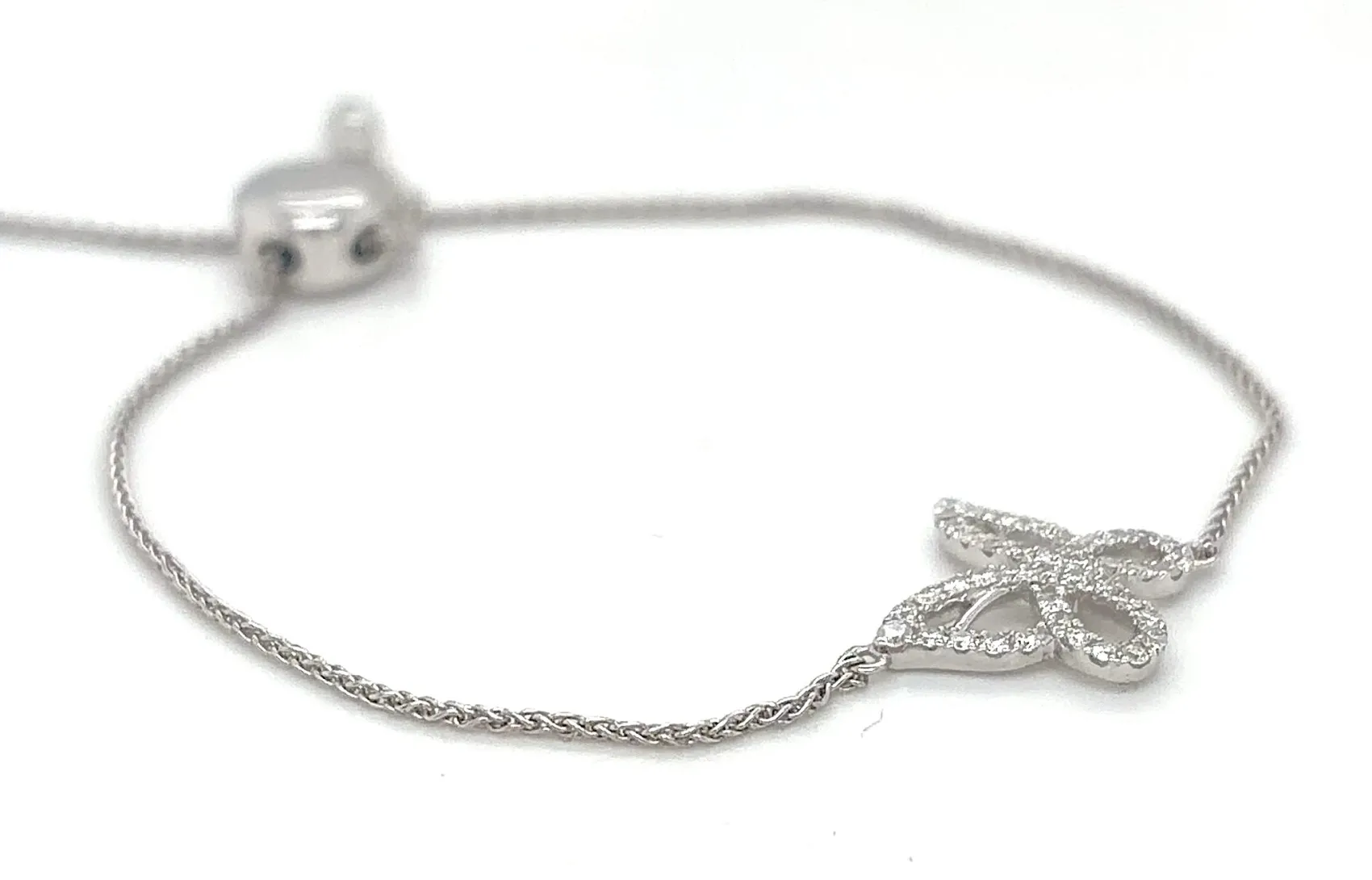 0.30ct Diamond Butterfly Adjustable Bracelet – 7.5 inch, 3.8g Delicate and whimsical, this 0.30ct Diamond Butterfly Bracelet combines elegance with a touch of charm. Crafted with precision, the bracelet features a sparkling diamond-accented butterfly centerpiece, set to catch the light beautifully. Its adjustable 7.5-inch design ensures a perfect fit, making it versatile for any wrist size. Weighing 3.8 grams, this bracelet is ideal for everyday wear or special occasions, offering a graceful and contemporary addition to any jewellery collection. Details: