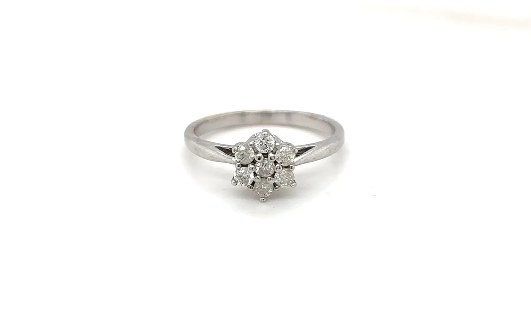 This stunning 0.33ct Diamond Cluster Ring is crafted from elegant 9ct white gold, weighing 2.0 grams. Featuring a sparkling cluster of round brilliant-cut diamonds, this ring creates a beautiful illusion of a larger centrepiece. Its timeless and versatile design makes it ideal for everyday elegance or special occasions, adding a touch of sophistication to any look.