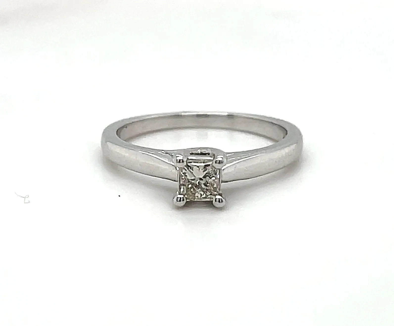 0.42ct Diamond & 9ct White Gold Solitaire Ring (2.5g) Timeless and elegant, this solitaire ring is crafted from 9ct white gold and features a dazzling 0.42 carat diamond at its centre. The classic design highlights the brilliance of the diamond, allowing it to catch the light from every angle for maximum sparkle. Weighing 2.5 grams, this lightweight ring offers a comfortable fit for everyday wear while maintaining a sophisticated and refined presence on the finger. Perfect as an engagement ring or a special gift, this 9ct white gold solitaire combines simplicity, elegance, and enduring style.