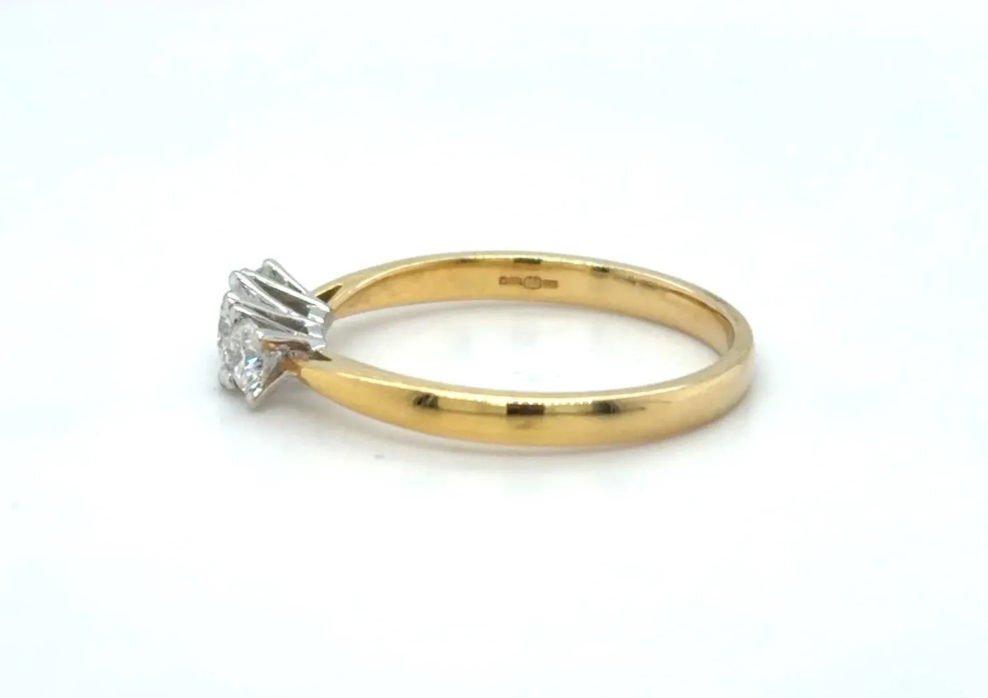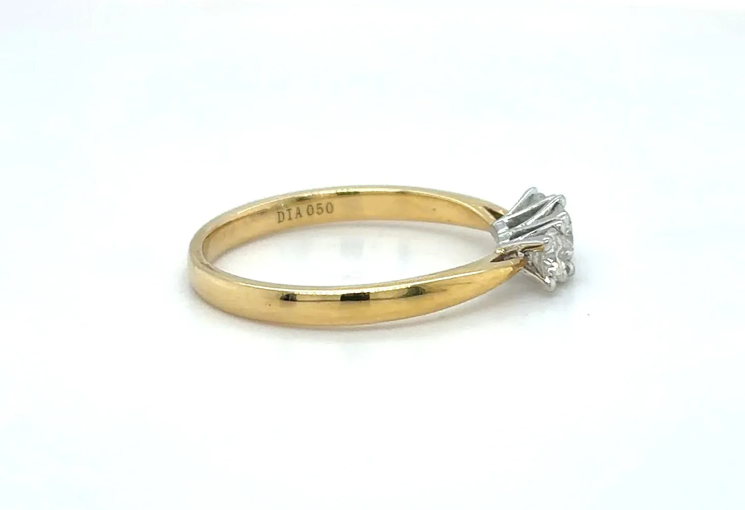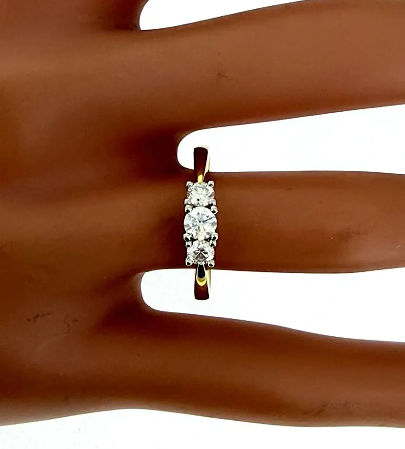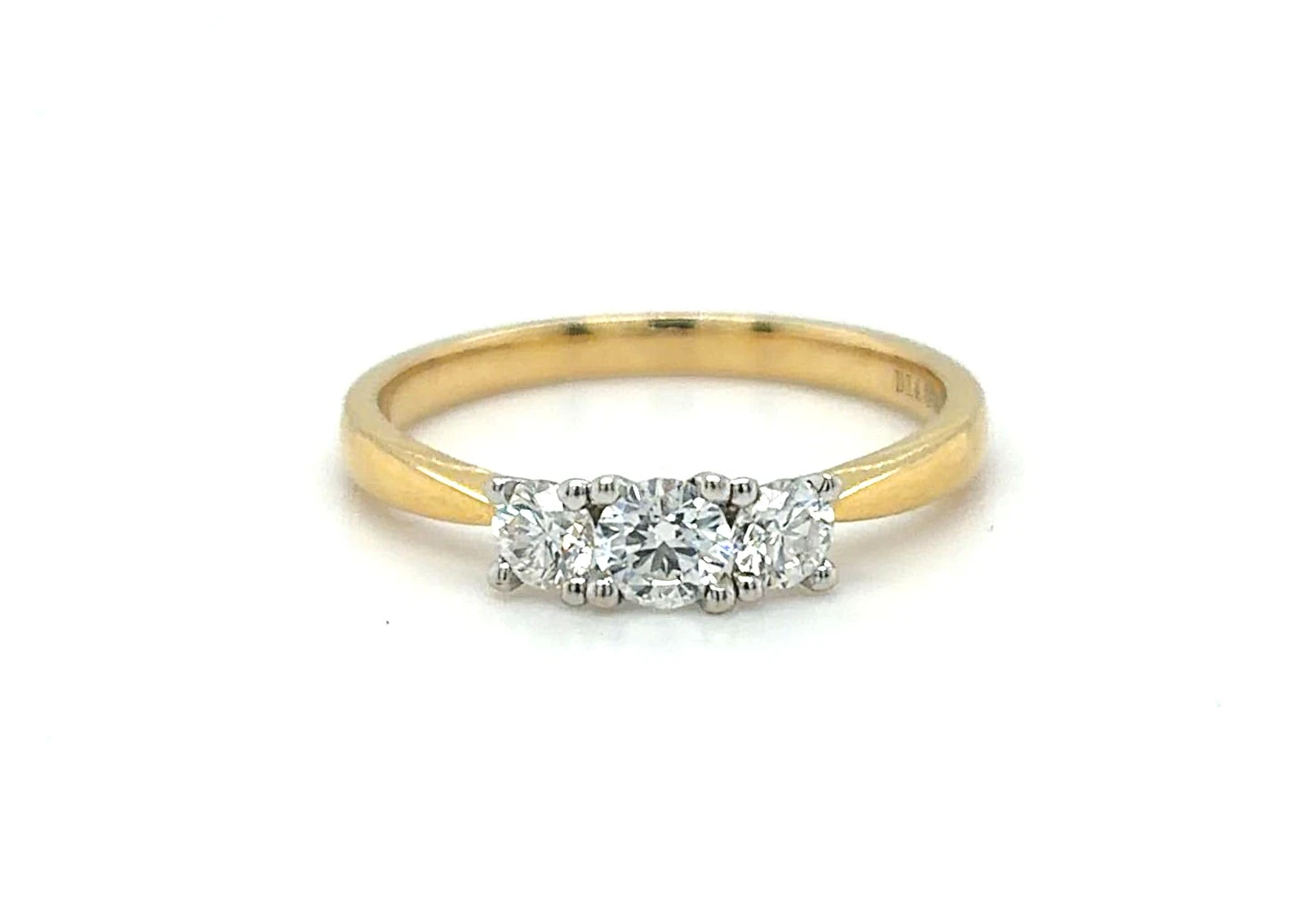 0.50ct Diamond & 18ct Gold Trilogy Ring – 2.5g A symbol of love, past, present, and future, this exquisite trilogy ring features three dazzling diamonds with a total weight of 0.50 carats. Crafted from rich 18ct gold, the band offers a luxurious setting that enhances the brilliance of each carefully selected stone. Weighing 2.5 grams, this timeless design is elegant yet substantial, making it perfect for engagement, anniversary, or everyday sophistication. The classic trilogy style captures enduring beauty and sentiment in one radiant piece. Features: