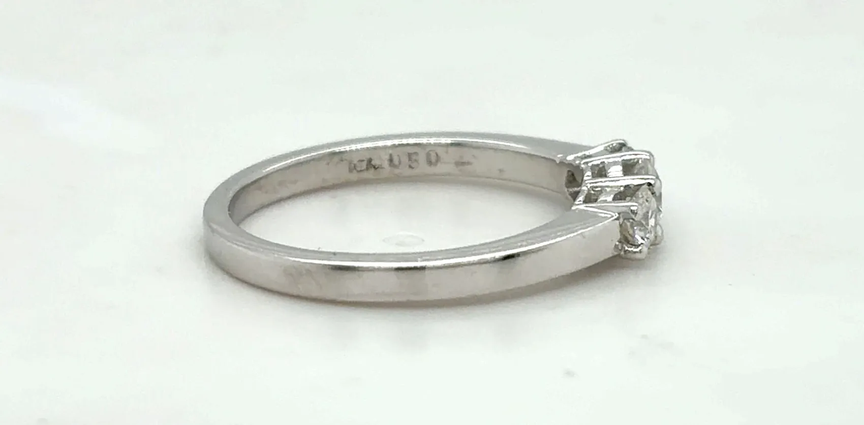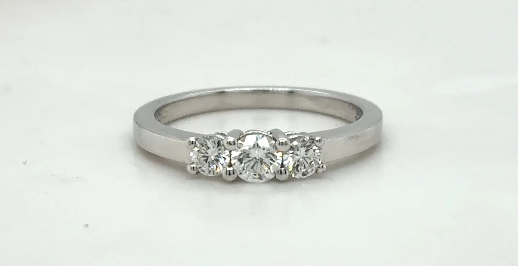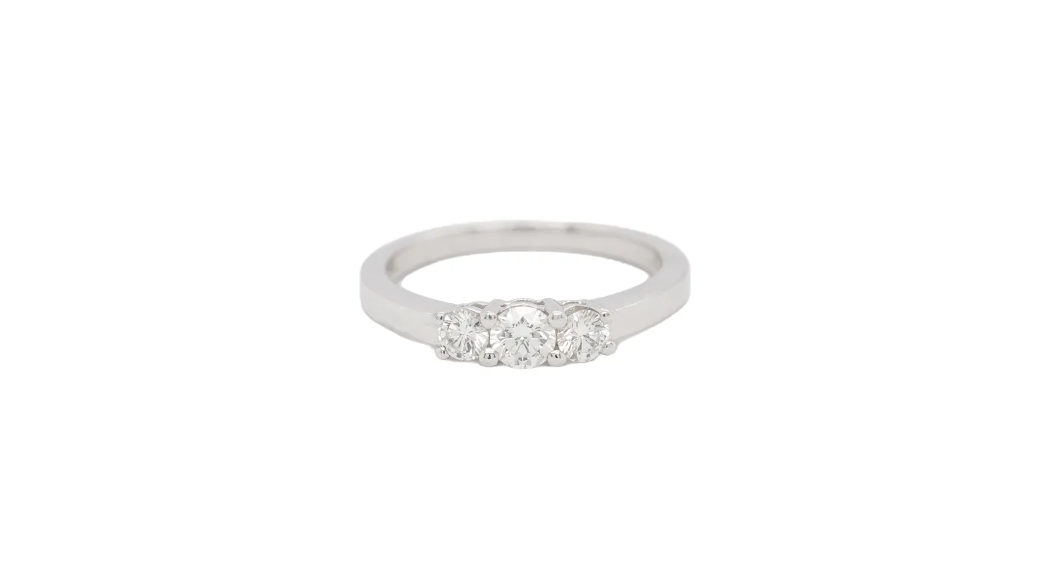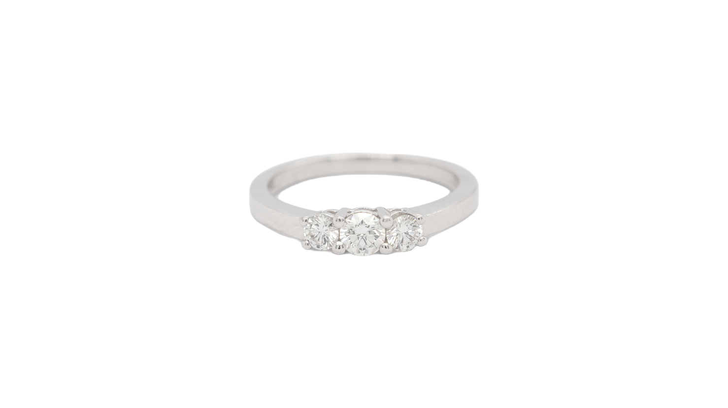 This exquisite 0.50ct Diamond Trilogy Ring is beautifully crafted in 18ct white gold, weighing 3.7 grams. Showcasing three dazzling brilliant-cut diamonds, this timeless design symbolises the past, present, and future — a perfect choice for engagements, anniversaries, or as a meaningful gift. Its elegant white gold setting enhances the sparkle of each diamond, creating a refined and romantic look.