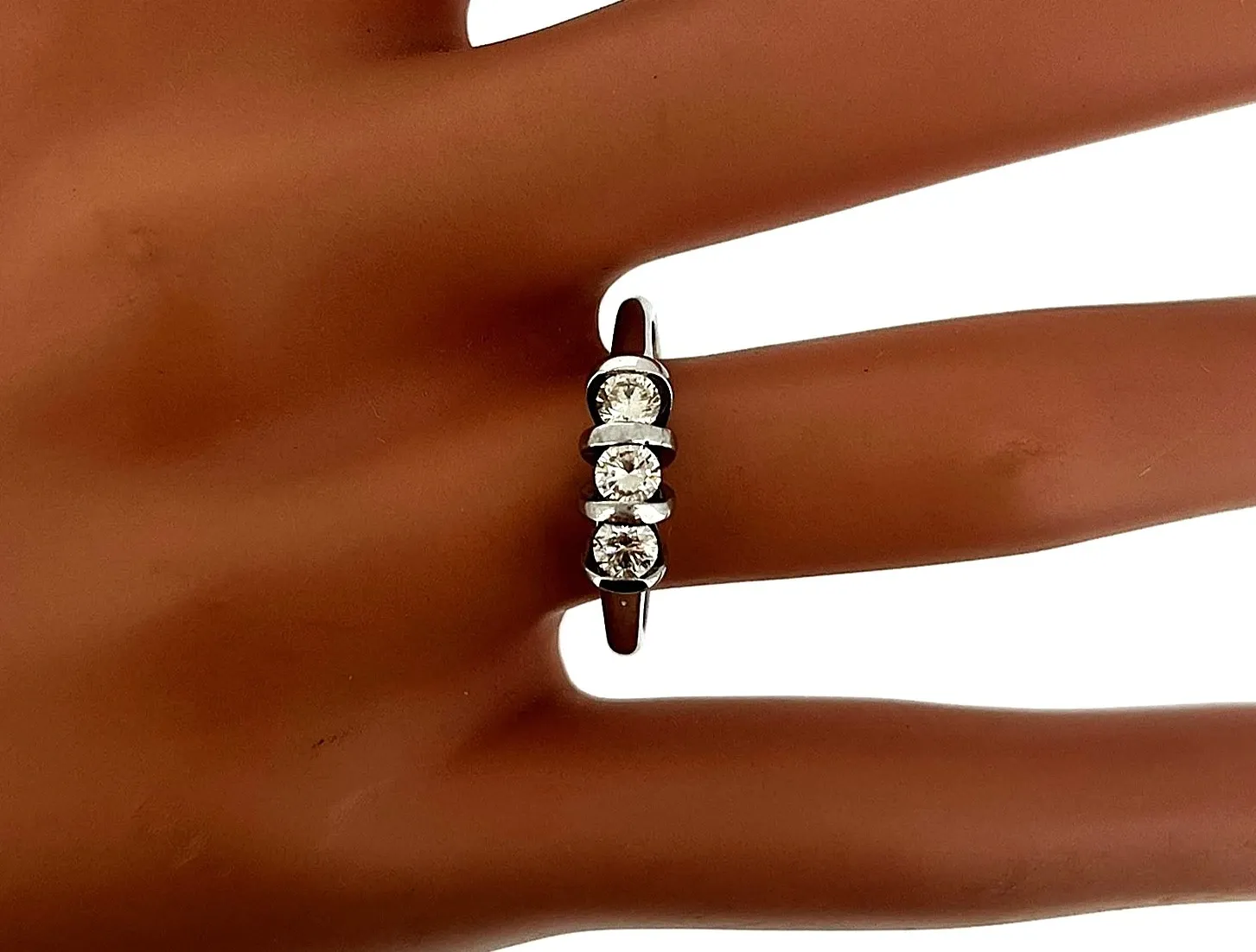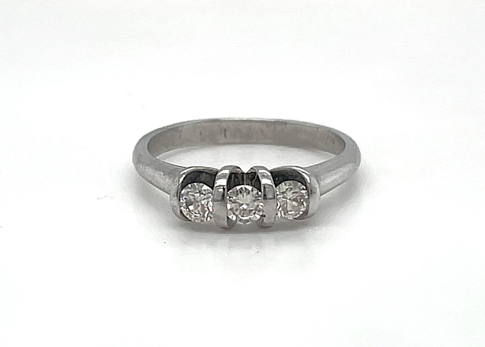 0.50ct Diamond & 18ct White Gold Trilogy Ring – 4.1g Celebrate timeless elegance with this trilogy ring, featuring 0.50ct of sparkling diamonds set in 18ct white gold. Weighing 4.1 grams, the ring offers a comfortable fit while showcasing a classic three-stone design symbolising past, present, and future. Ideal as a gift for anniversaries, special occasions, or as a stunning addition to your fine jewellery collection, this piece combines sophisticated style with enduring brilliance.