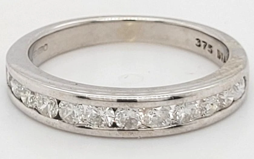 0.50ct Diamond & 9ct White Gold Wedding/Eternity Band – 2.4g Celebrate your everlasting love with this stunning 0.50ct diamond eternity band, expertly crafted in radiant 9ct white gold. Weighing a comfortable 2.4 grams, this elegant band offers a perfect balance of sparkle and subtle sophistication. The ring is adorned with brilliant-cut diamonds, carefully set to create a continuous circle of dazzling light that symbolises eternal commitment. The sleek white gold setting enhances the diamonds’ brilliance, making this band a beautiful choice for a wedding ring, anniversary gift, or stacking piece. Its timeless design ensures versatility, allowing it to be worn alone or paired effortlessly with an engagement ring. Specifications: