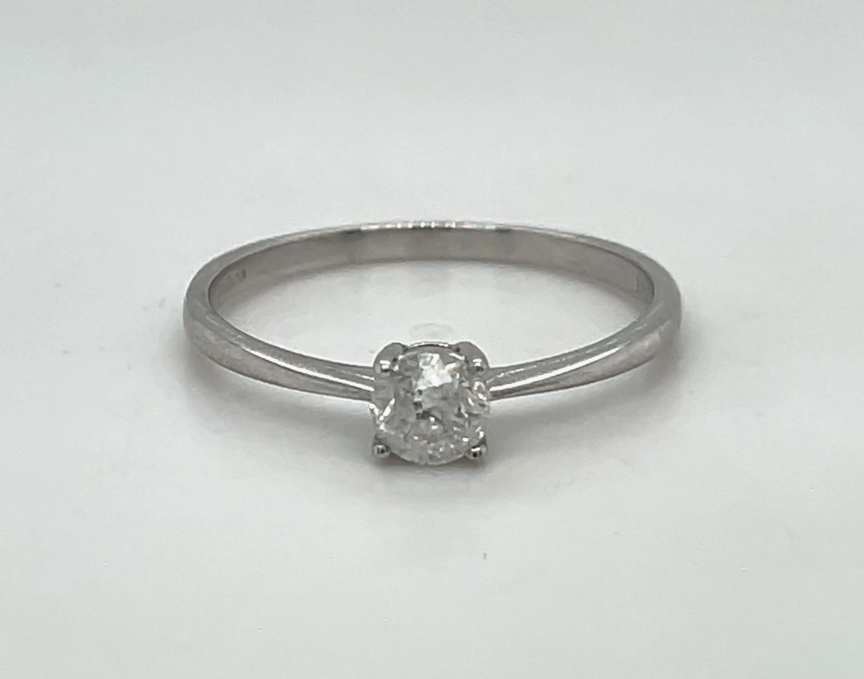 0.50ct Diamond & 9ct White Gold Solitaire Ring – 1.8g Showcasing timeless elegance, this solitaire ring features a brilliant 0.50ct diamond set in 9ct white gold, weighing just 1.8 grams. Its classic design highlights the diamond’s sparkle, making it a perfect choice for engagements, anniversaries, or as a cherished fine jewellery piece. A versatile and enduring design, this ring combines understated sophistication with lasting brilliance, making it a timeless addition to any collection.