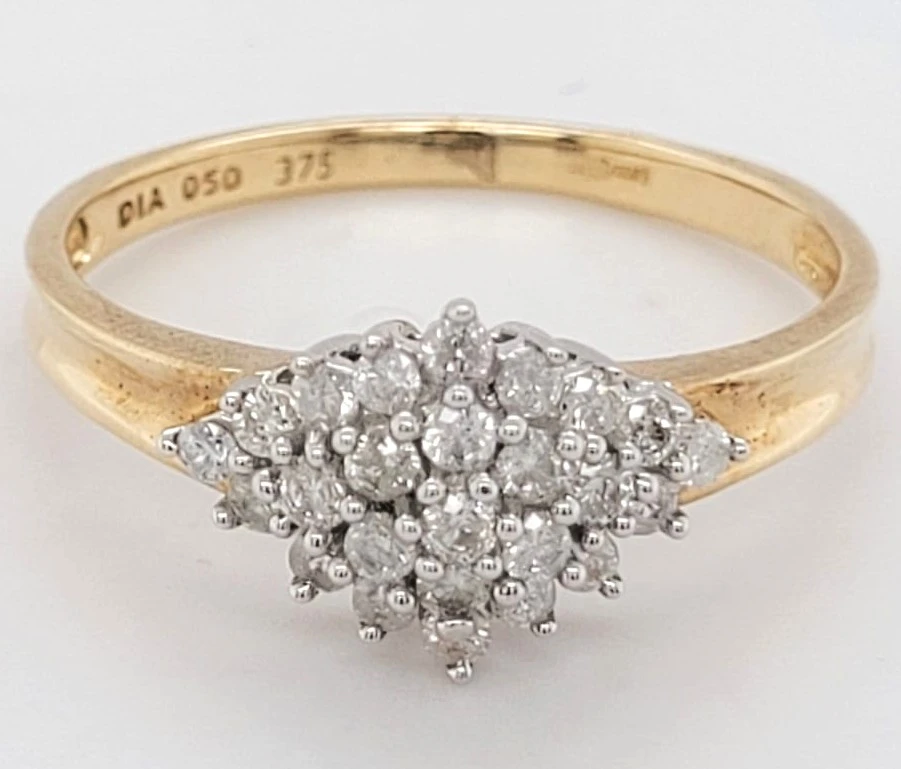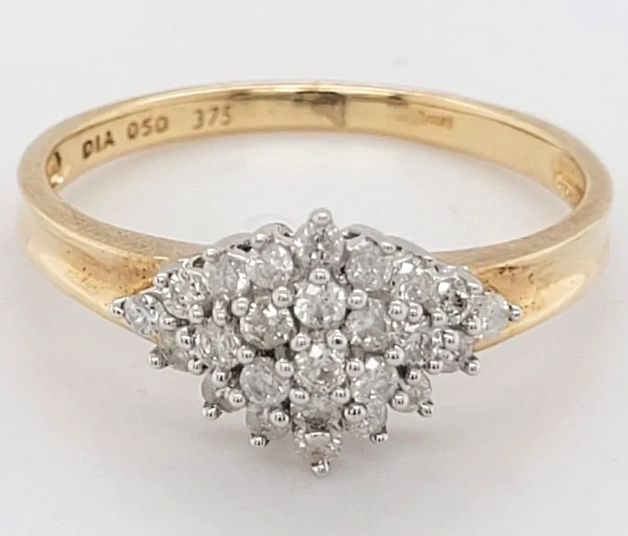 0.50ct Diamond & 9ct Gold Cluster Ring – 2.7g