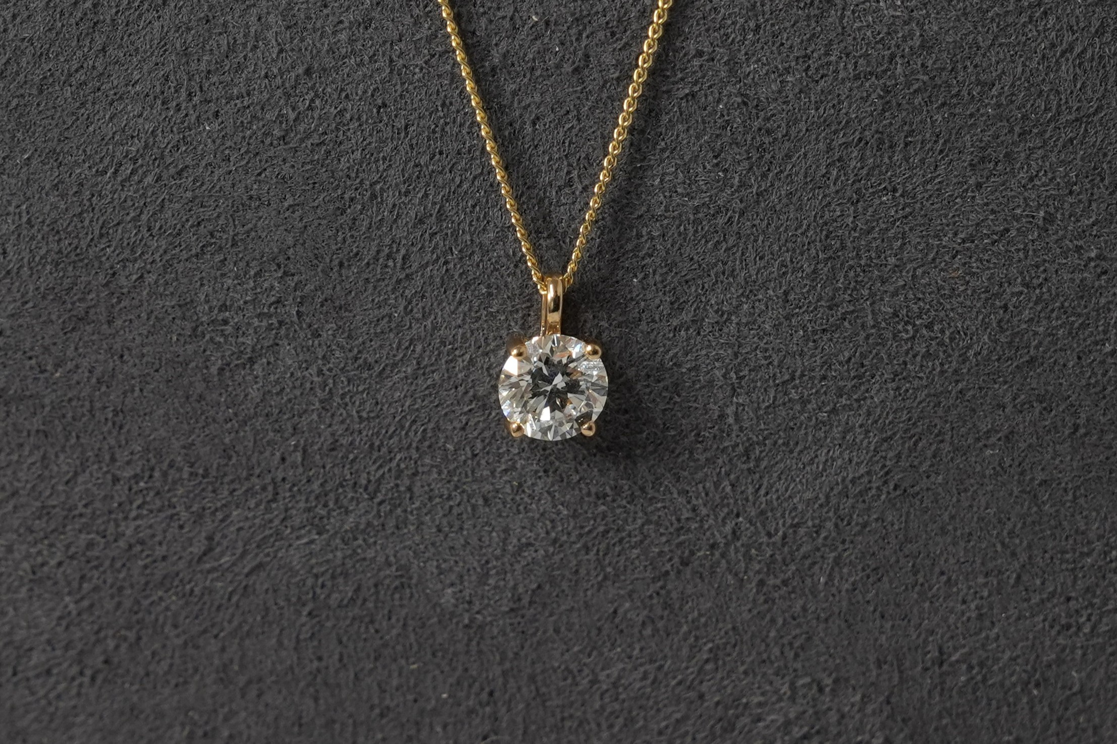 Add a touch of timeless elegance with this lab-grown diamond solitaire pendant. Featuring a 0.50ct brilliant-cut diamond, ethically created to deliver exceptional sparkle and clarity, this pendant combines luxury with sustainability. Set in 9ct gold, the classic four-claw design ensures the diamond is the focal point while providing secure wear. The 18-inch chain offers a versatile length, perfect for layering or wearing alone as a statement piece. Ideal for gifting or elevating your everyday jewellery collection, this pendant offers refined sophistication and enduring beauty. Features: