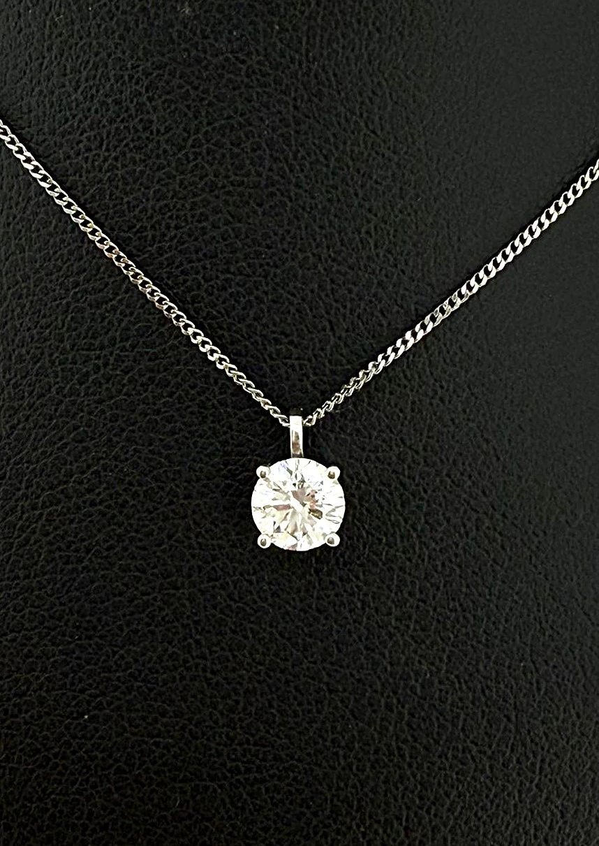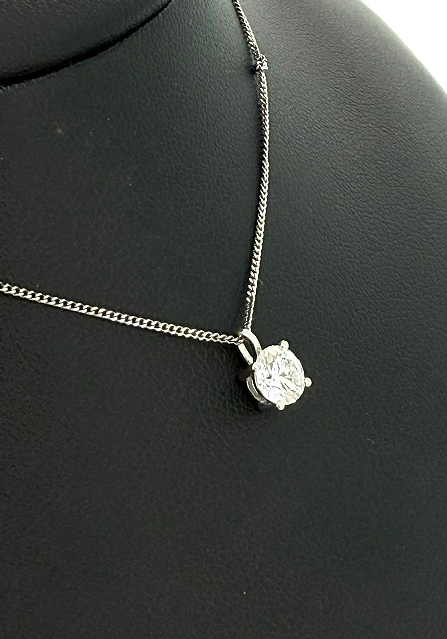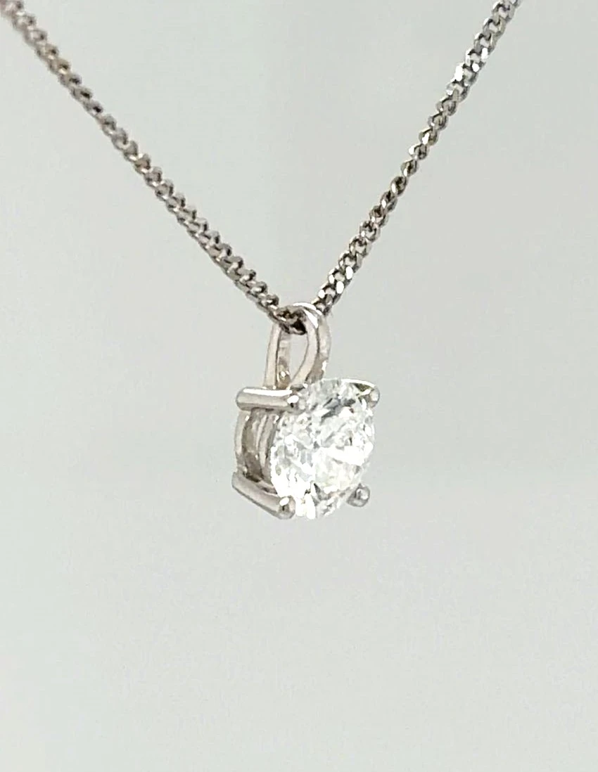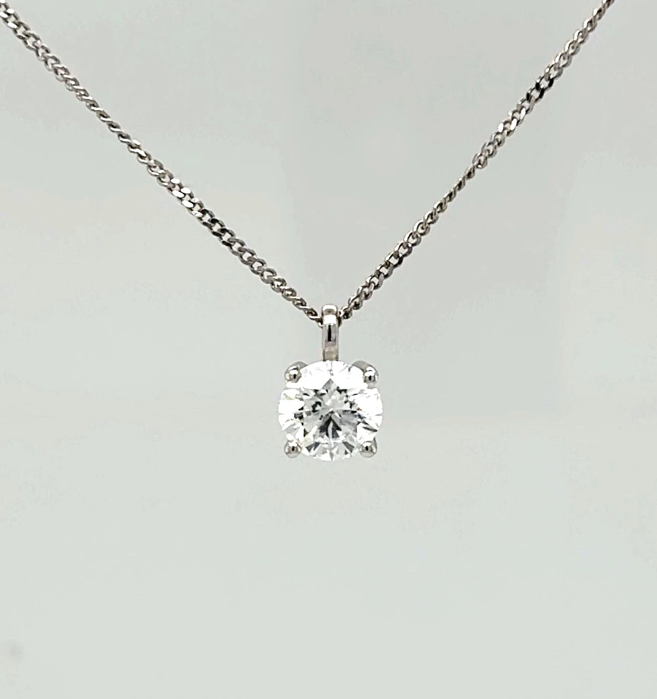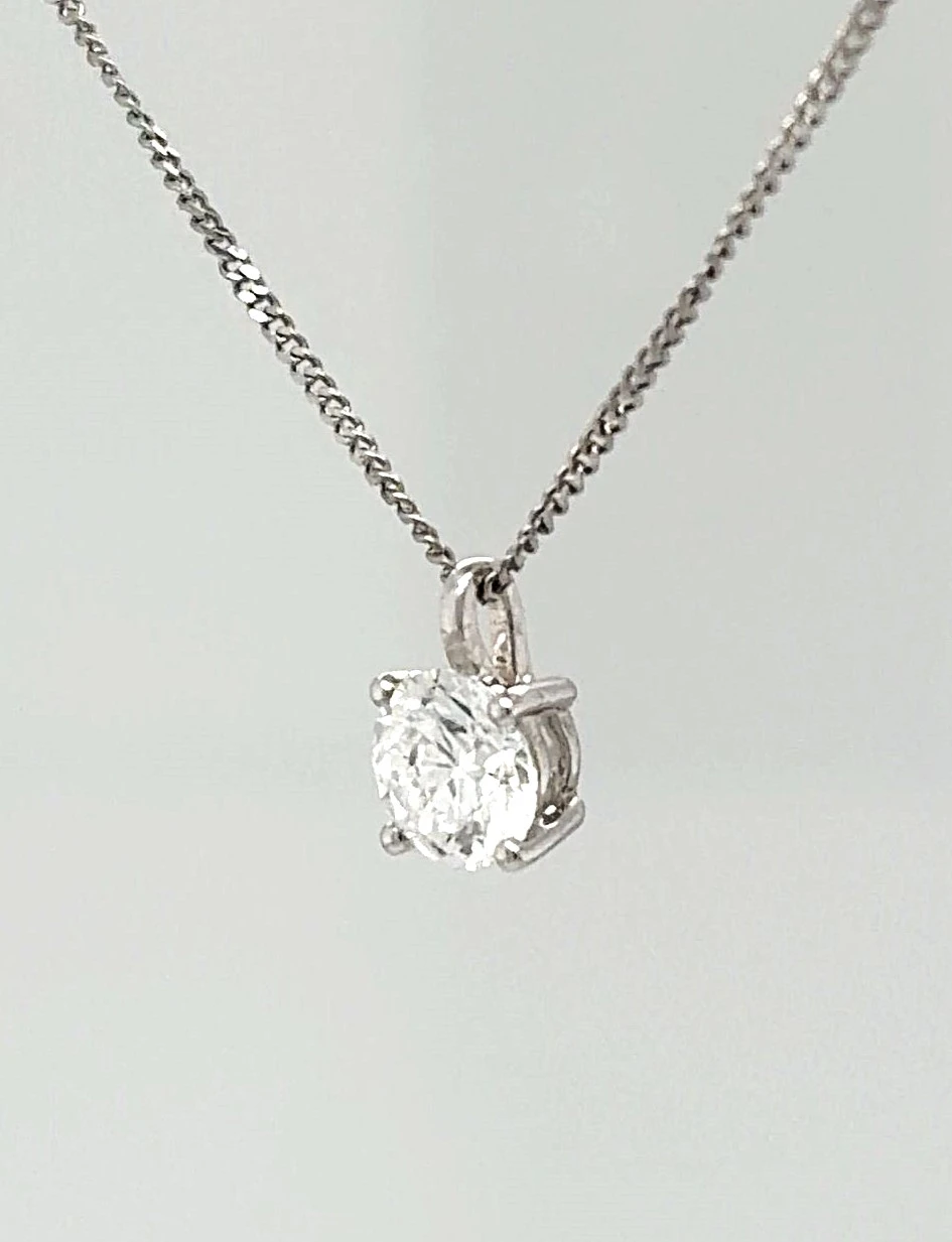 Add understated elegance to any outfit with this 0.50ct lab-grown diamond solitaire pendant, crafted in 9ct white gold. Featuring a brilliant-cut 0.50ct lab-grown diamond, ethically sourced for exceptional sparkle and clarity, this pendant is a sophisticated and conscious choice. The diamond is set in a classic four-claw white gold setting, allowing maximum light to enhance its natural brilliance. Suspended on an 18-inch white gold chain, the pendant sits perfectly at the neckline, making it ideal for both everyday wear and special occasions. A timeless gift or cherished personal keepsake, this pendant delivers effortless sophistication and lasting beauty. Details: