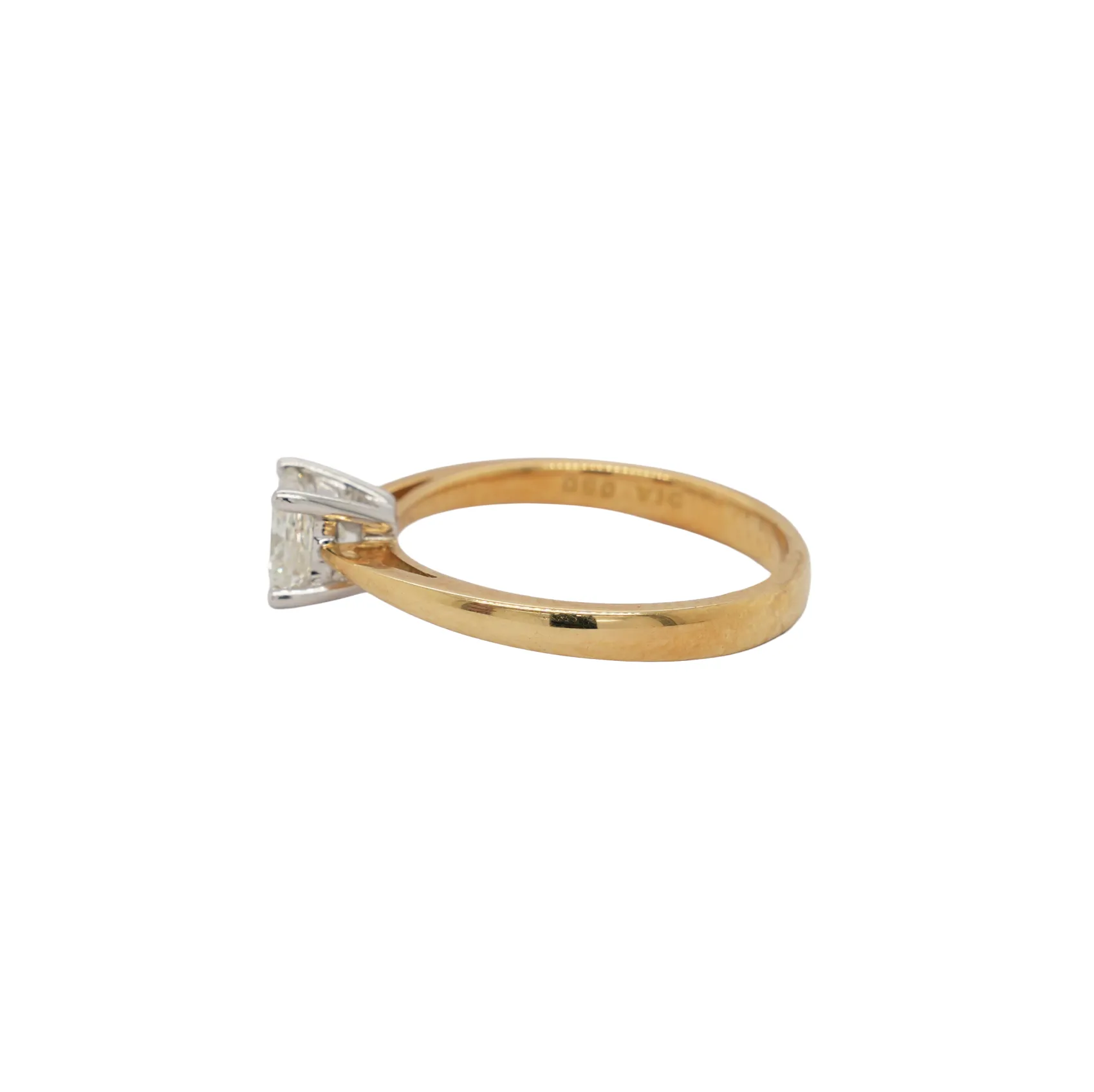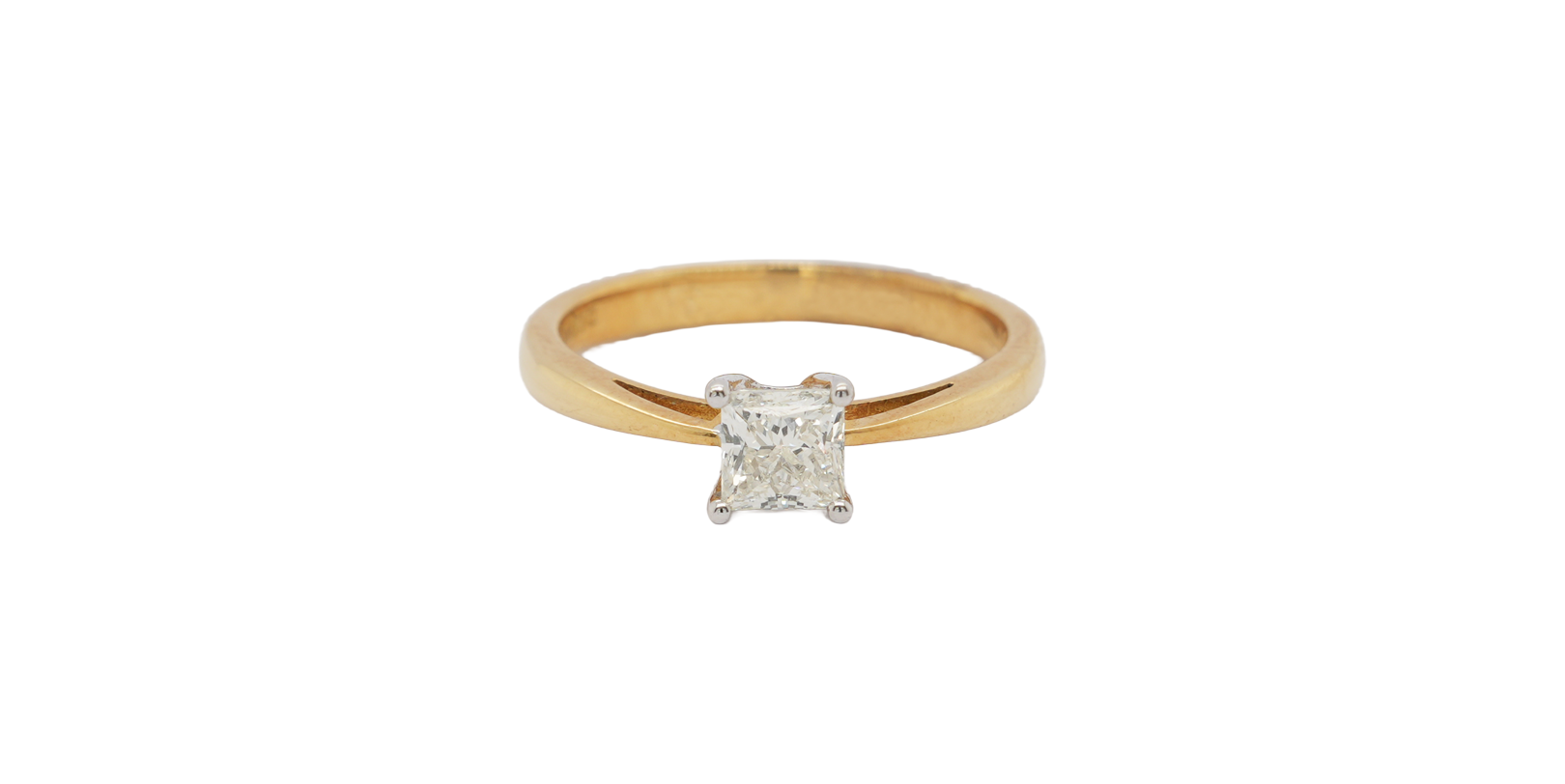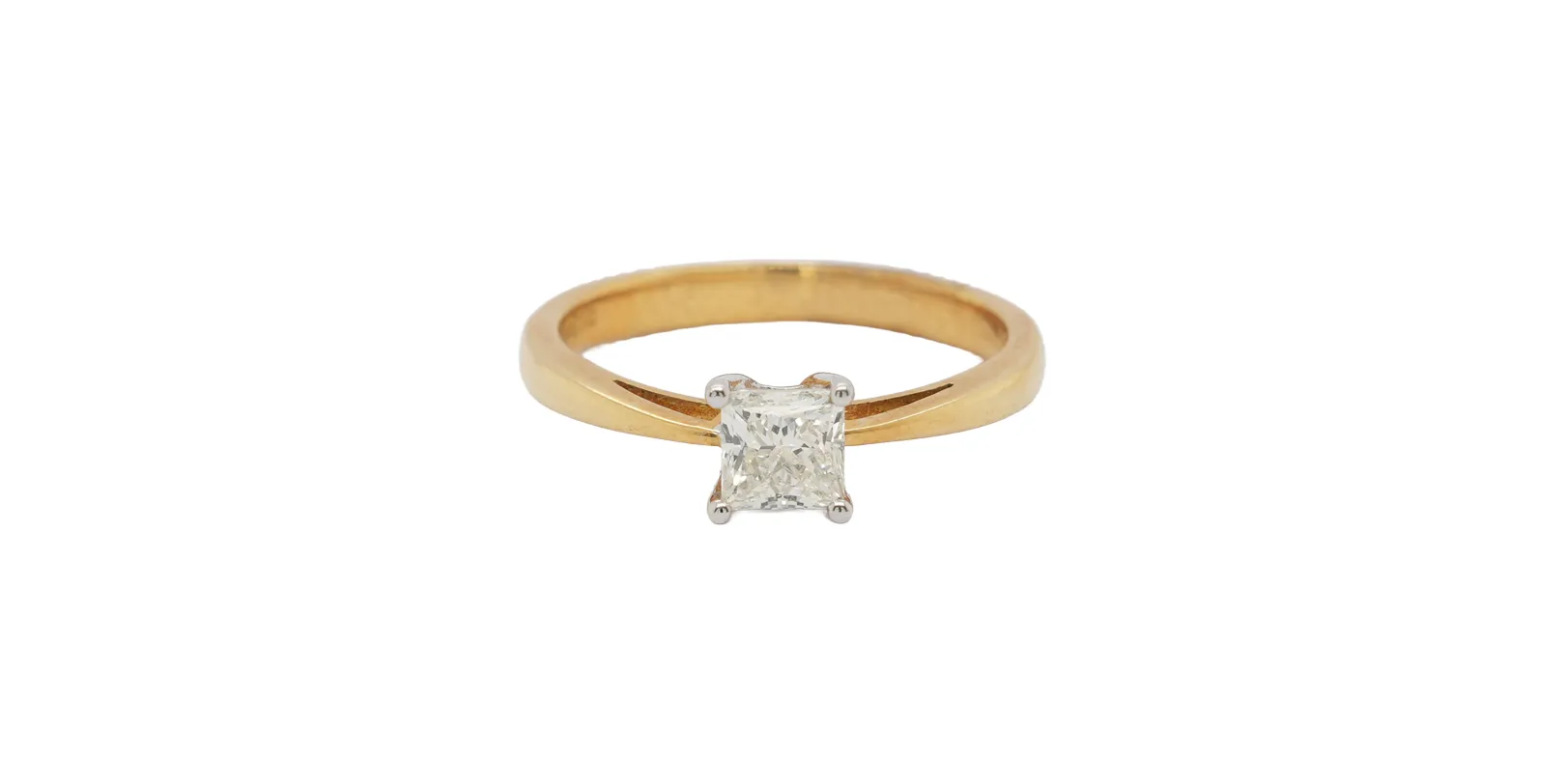 A perfect blend of modern elegance and classic style, this ring features a 0.50 carat princess cut natural diamond set in a timeless four-claw solitaire design. The sharp, clean lines of the princess cut reflect light beautifully, offering brilliant sparkle from every angle. Crafted from 18ct yellow gold, the band provides a warm, luxurious tone that complements the diamond’s natural brilliance. With a total weight of 2.3 grams, the ring strikes a balance between durability and delicate sophistication, making it ideal for everyday wear or special occasions. Whether as an engagement ring or a meaningful gift, this solitaire design embodies simplicity, elegance, and enduring style. Key Features:
