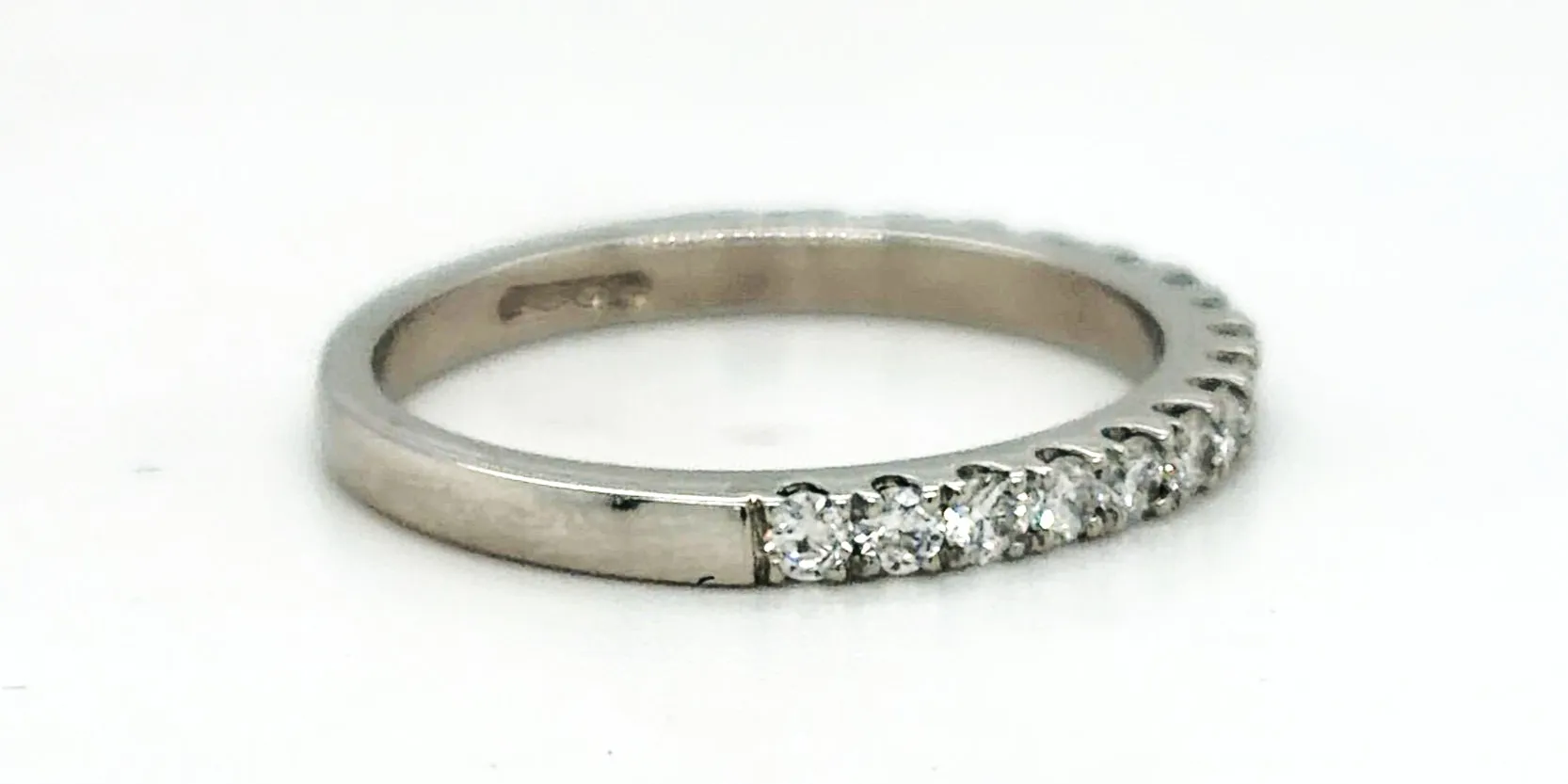 Elegant and timeless, this diamond eternity / wedding band is crafted in platinum and set with 0.51 carats of sparkling diamonds. Its classic full-circle design symbolises eternal love, making it a perfect choice for weddings, anniversaries, or as a meaningful addition to any fine jewellery collection. Made from premium platinum, the band weighs 3.6 grams, offering a durable yet comfortable fit for everyday wear. The polished finish enhances the brilliance of the diamonds, giving a luxurious and refined appearance. A versatile and enduring piece, this platinum eternity band pairs beautifully with engagement rings or can be worn solo as a sophisticated statement of elegance.