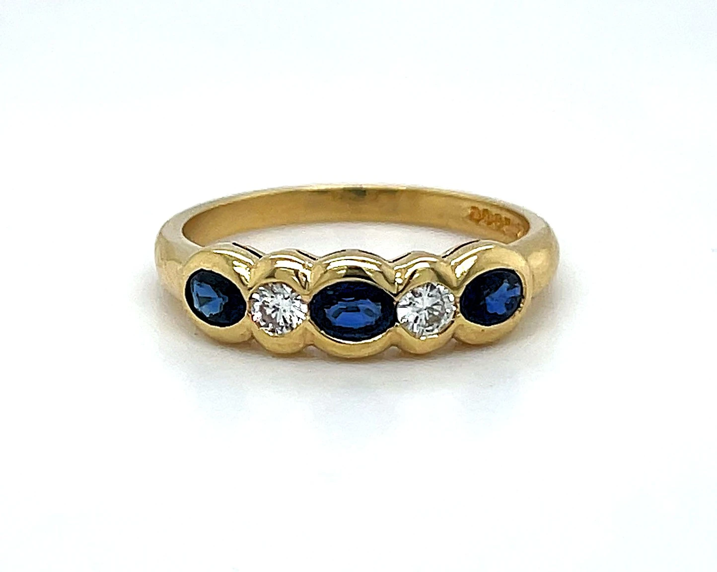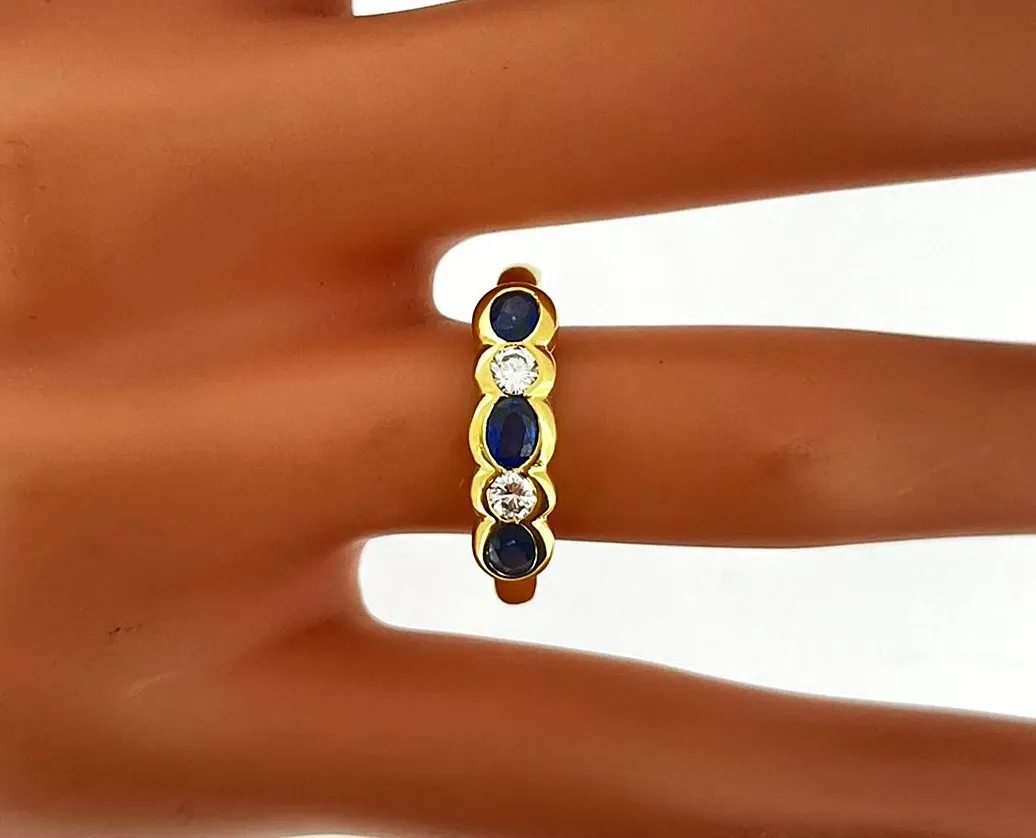 A timeless blend of elegance and luxury, this exquisite 18ct Gold Ring showcases a rich 0.60ct sapphire perfectly accented by 0.20ct of sparkling diamonds. The deep blue sapphire symbolises wisdom and serenity, while the surrounding diamonds add brilliance and fire, creating a truly captivating piece. Crafted in 18ct yellow gold, the ring has a total weight of 3.3g, offering a substantial yet comfortable feel. Its classic design makes it perfect for marking life’s special moments – from engagements to anniversaries – or as a sophisticated addition to any fine jewellery collection. Details: