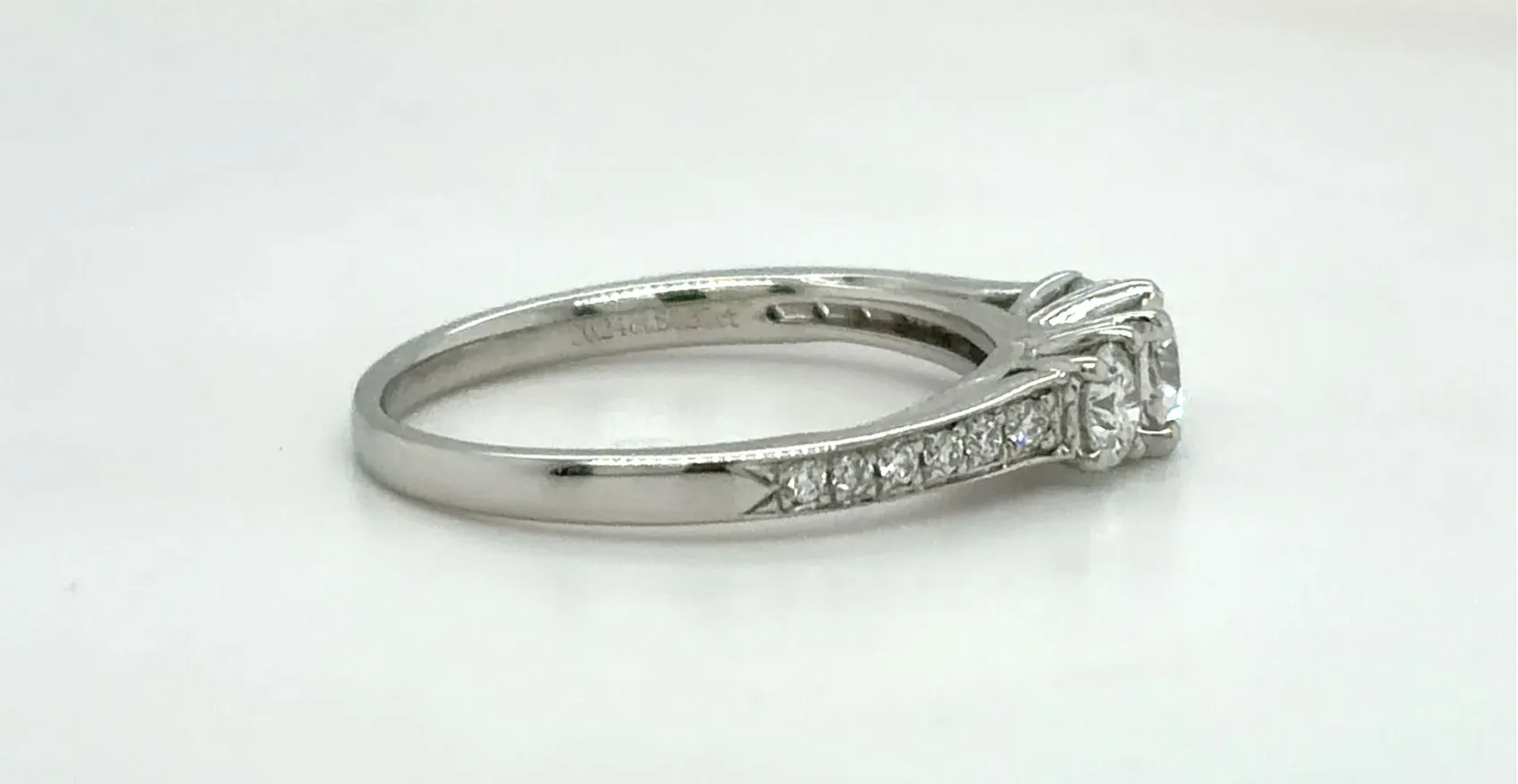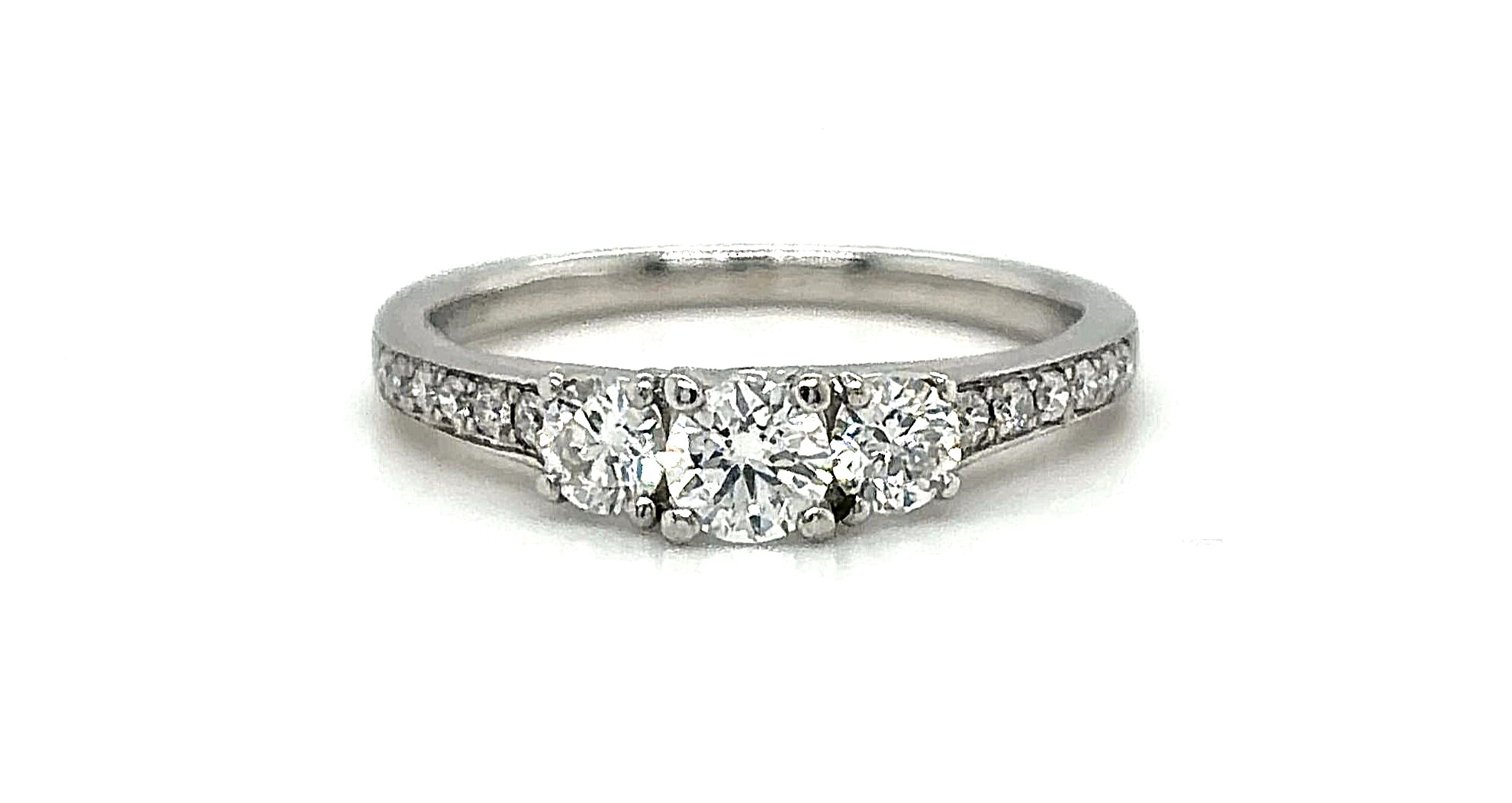 0.61ct Diamond & Platinum Trilogy Ring – 3.9g, Size L Celebrate love and elegance with this 0.61ct Diamond Trilogy Ring, crafted in durable platinum. Featuring three brilliant-cut diamonds set in a classic trilogy design, this ring symbolises the past, present, and future. Weighing 3.9 grams and in Size L, it combines luxury with comfort, making it ideal for engagements, anniversaries, or as a meaningful statement piece. Details: