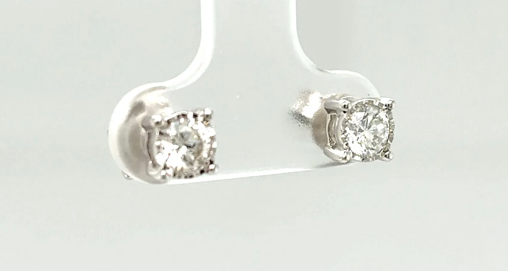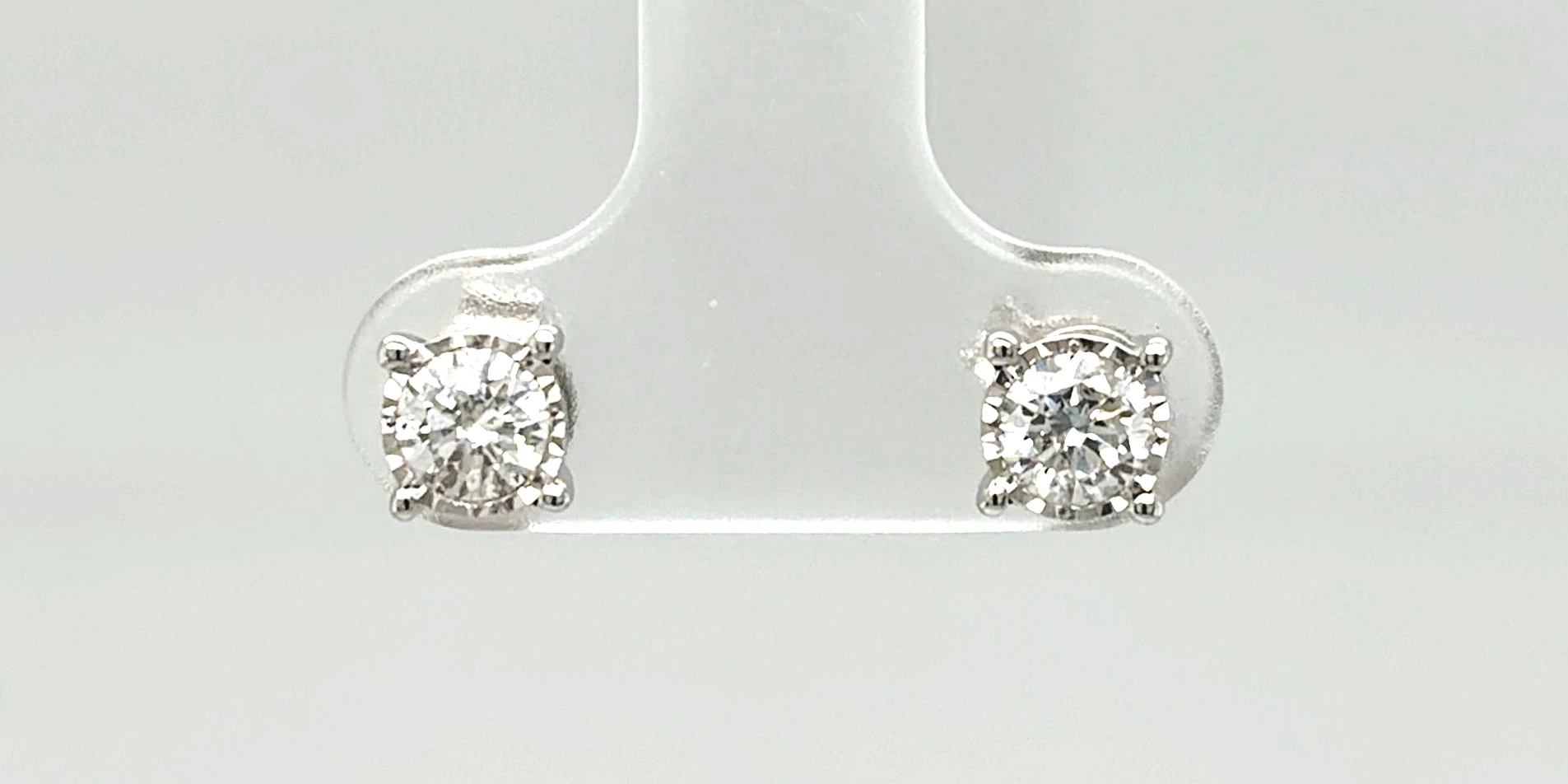 0.62ct Diamond & 18ct White Gold Solitaire Stud Earrings – 1.2g Add timeless sparkle to your jewellery collection with these solitaire diamond stud earrings set in 18ct white gold. Featuring a total of 0.62ct of brilliant-cut diamonds, these lightweight earrings (1.2g) offer elegance and comfort for everyday wear or special occasions. The classic solitaire design ensures the diamonds take centre stage, reflecting light beautifully and adding a touch of sophistication to any outfit. Perfect as a gift or as a personal treat, these earrings embody enduring style and exceptional craftsmanship. Features: