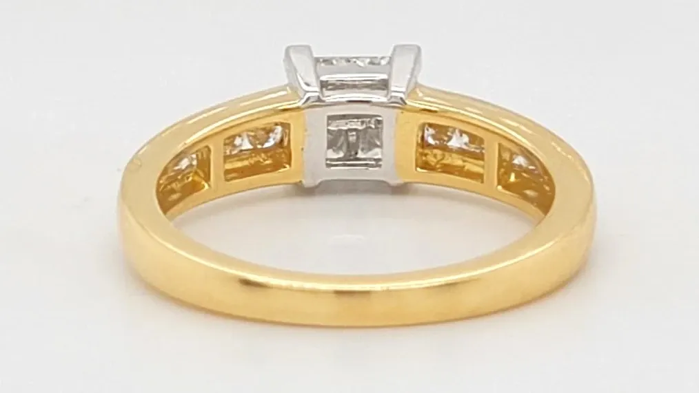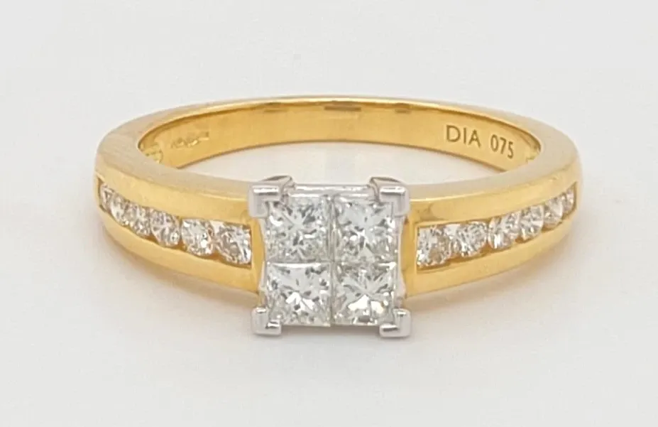 0.75ct Diamond & 18ct Gold Illusion Set Solitaire Ring – Size O (5.0g) Make a stunning statement with this elegant 0.75ct diamond solitaire ring, expertly crafted in rich 18ct gold. The diamond is beautifully set in an illusion setting, designed to maximise the stone’s brilliance and create the appearance of a larger centrepiece, making it truly captivating from every angle. Weighing 5.0 grams and sized at O, this solitaire ring combines classic sophistication with modern design, making it an ideal choice for engagements, anniversaries, or as a cherished gift.