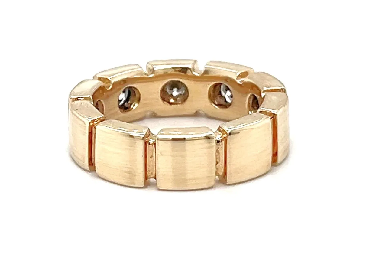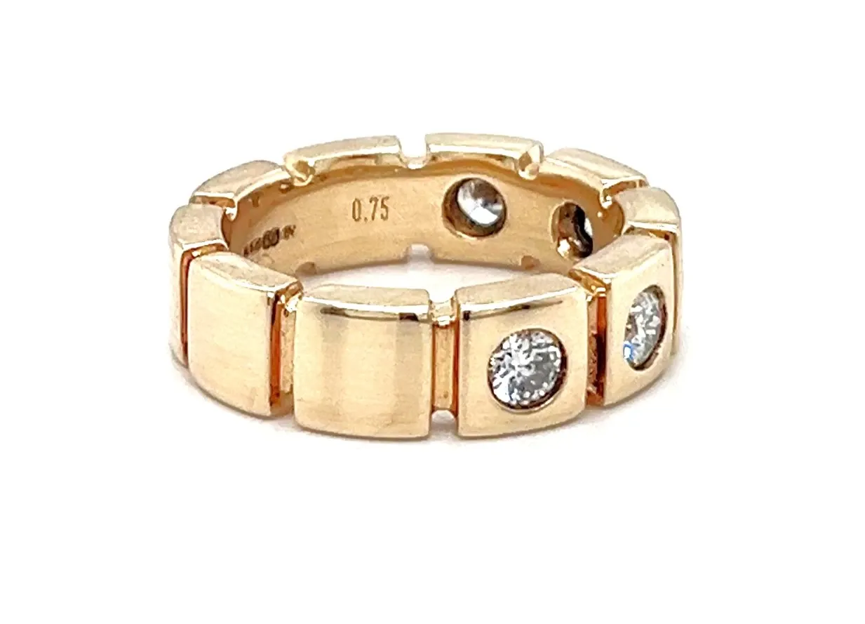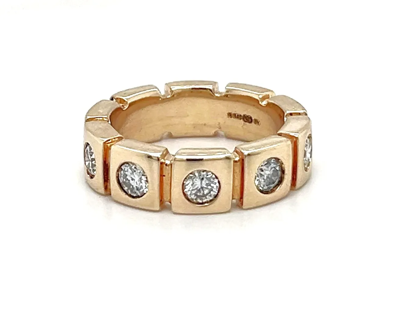 0.75ct Diamond & 9ct Rose Gold 6mm Section Band – 9.2g Exuding elegance and sophistication, this 6mm section band is crafted in warm 9ct rose gold and set with a total of 0.75ct sparkling diamonds. The sectioned design adds a modern twist to a classic band, catching the light beautifully from every angle. Weighing 9.2 grams, this substantial band offers a comfortable yet prominent presence on the finger. The polished rose gold finish enhances the brilliance of the diamonds, making this ring a stunning statement piece suitable for weddings, anniversaries, or special occasions. Details: