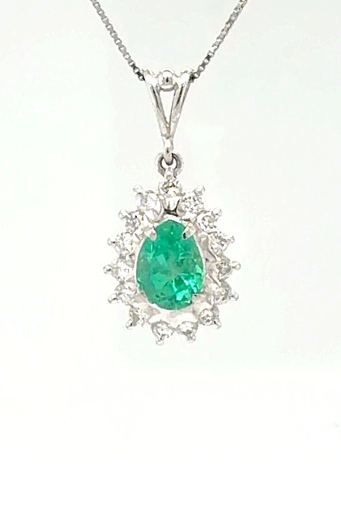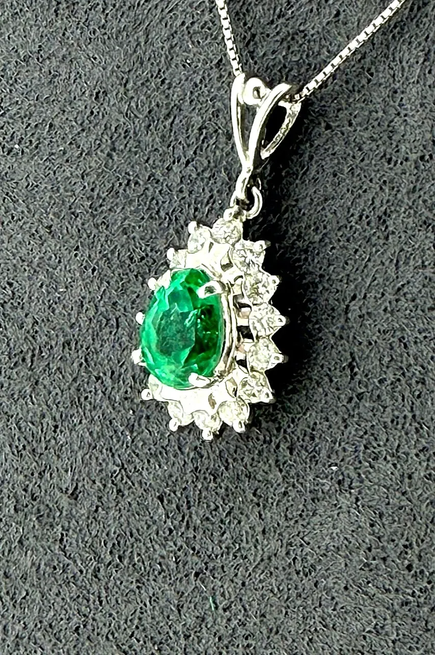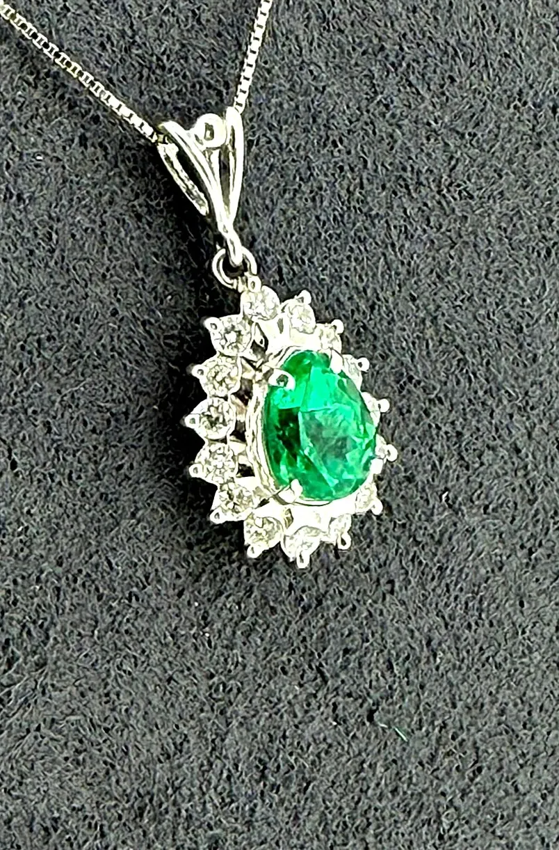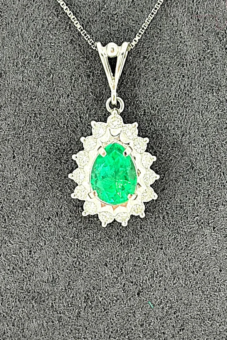 Add a touch of timeless elegance with this 0.78ct Emerald & 0.30ct Diamond Pendant, beautifully crafted in platinum. The vibrant green emerald is complemented by 0.30ct of sparkling diamonds, enhancing its brilliance and creating a striking contrast. Suspended from a 16-inch platinum chain, this pendant weighs 4.1g, offering a refined, lightweight feel perfect for daily wear or special occasions. Its classic design makes it a versatile addition to any fine jewellery collection and a thoughtful gift for someone special. A sophisticated piece that highlights luxury, colour, and expert craftsmanship.