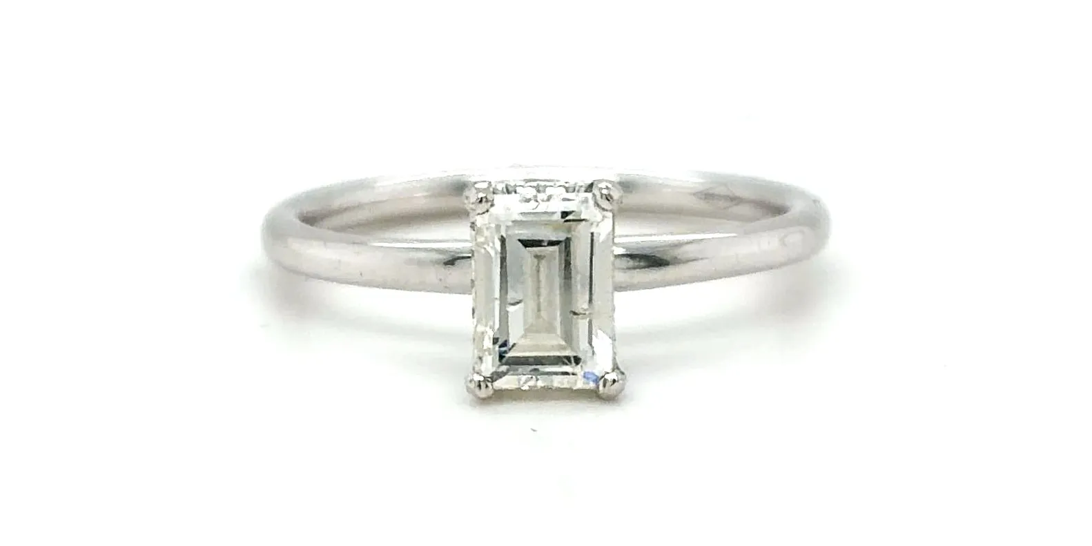 Timeless and elegant, this solitaire diamond ring is crafted in platinum and features a dazzling 0.95 carat brilliant-cut diamond. The classic solitaire setting maximises the diamond’s brilliance and showcases its clarity, making it a perfect choice for engagements, anniversaries, or special occasions. Weighing 2.48 grams, the ring offers a comfortable fit while maintaining a refined, luxurious presence. The polished platinum band enhances the diamond’s sparkle, ensuring a sophisticated and enduring design that complements any fine jewellery collection. A truly classic piece, this platinum solitaire ring combines luxury, elegance, and timeless style.