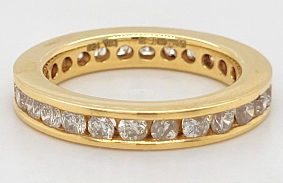 Celebrate eternal love with this stunning full eternity wedding band, set with 1.00ct of sparkling round brilliant diamonds encircling the entire ring. Crafted in luxurious 18ct yellow gold and weighing 4.1g, this timeless piece offers elegance, brilliance, and enduring meaning. Perfect as a wedding ring, anniversary band, or stackable statement piece, this diamond eternity band is a classic symbol of love with lasting beauty.
