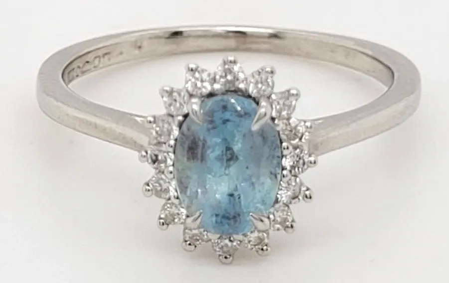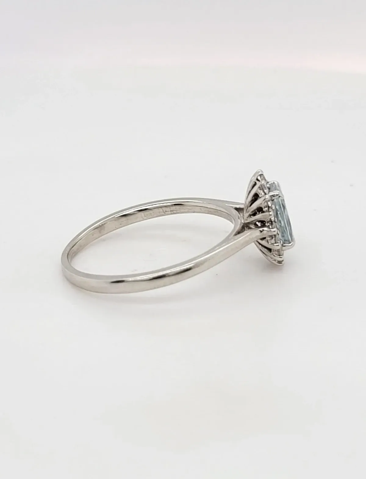 1.00ct Aquamarine & 0.16ct Diamond - Platinum Halo Ring 3.5g