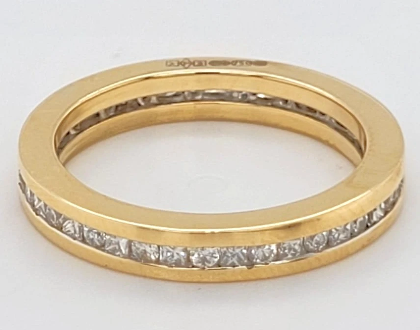 1.00ct Full Diamond & 18ct Gold Eternity / Wedding Band – 3.5g A timeless symbol of everlasting love, this 1.00ct full diamond eternity band is expertly crafted in rich 18ct gold. Weighing 3.5 grams, the ring features a continuous circle of brilliant-cut diamonds, meticulously set for a seamless display of sparkle and sophistication. Perfect as a wedding ring, anniversary band, or elegant stacking piece, this design embodies both luxury and meaning. Its classic style and refined craftsmanship make it an enduring choice for those who appreciate beauty without compromise.
