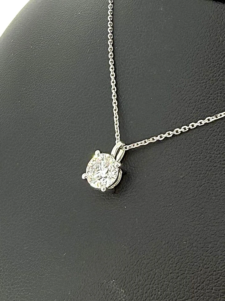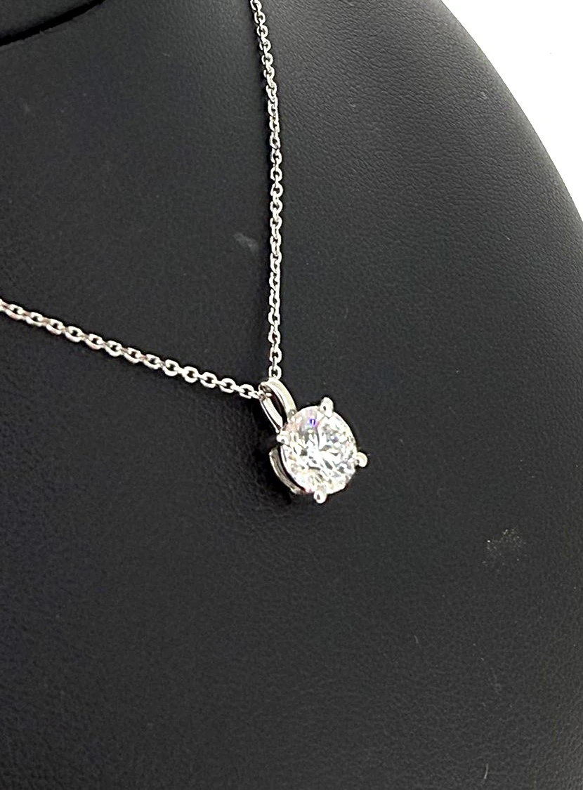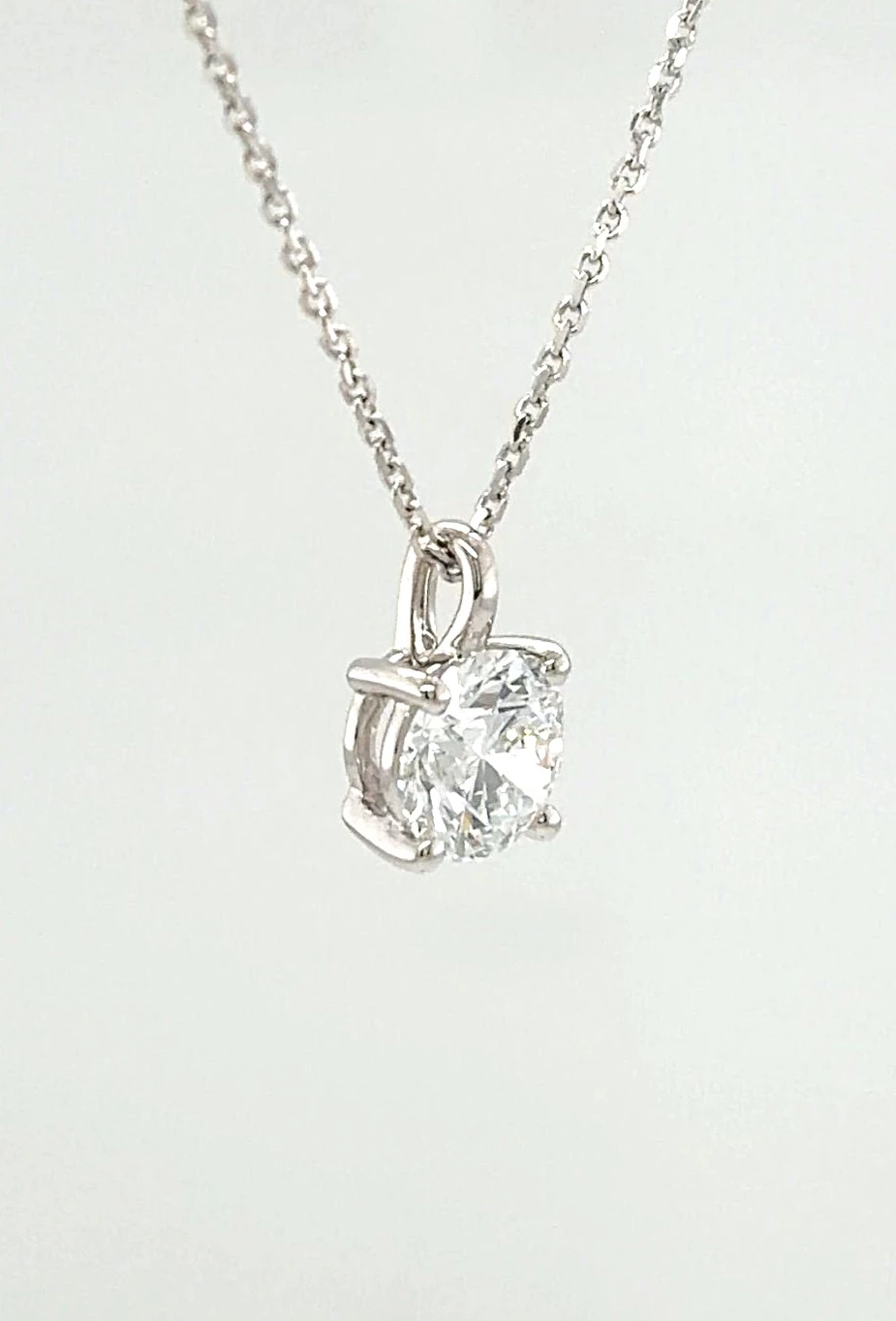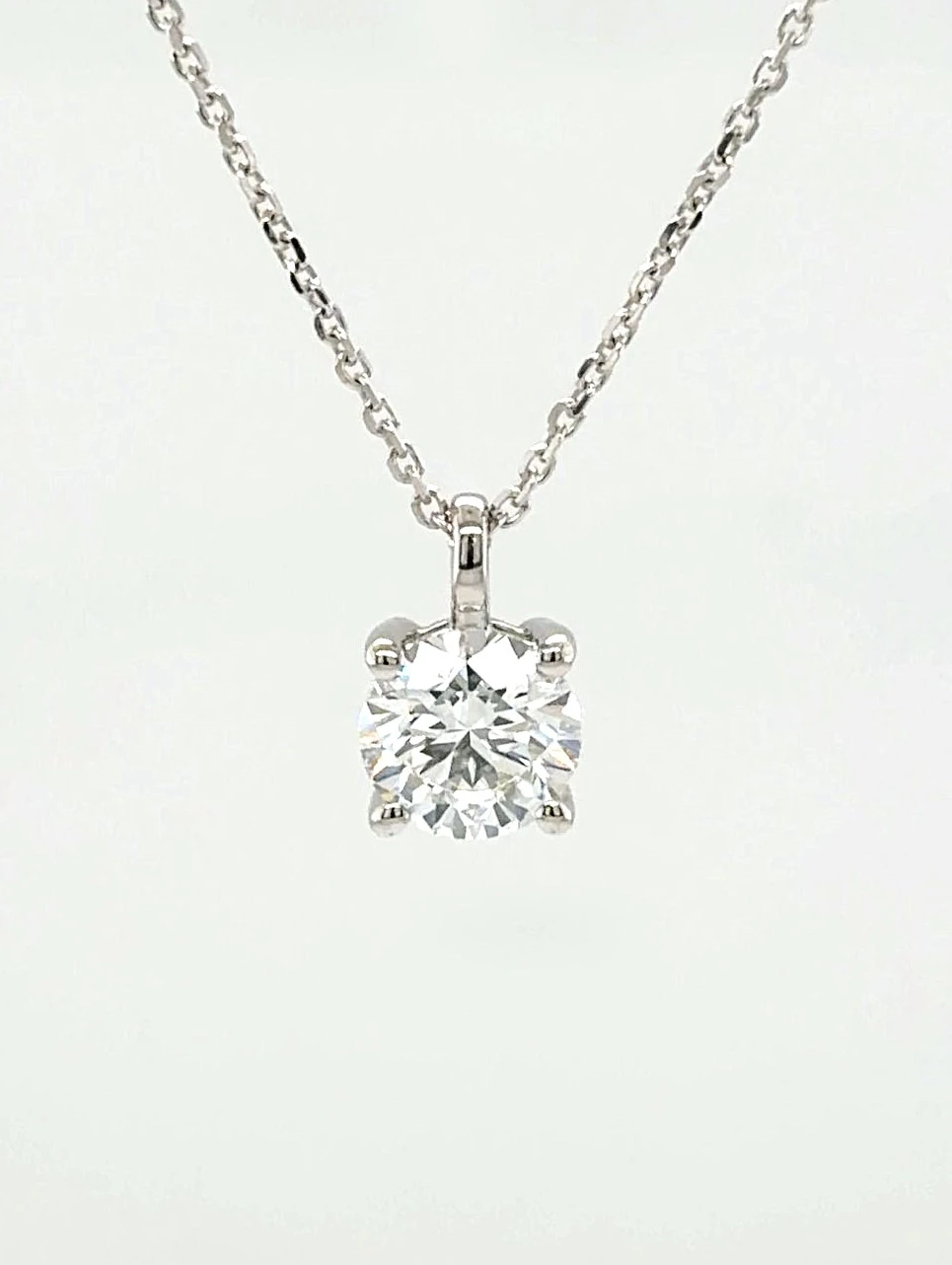 Timeless elegance meets ethical brilliance with this 1.00ct lab-grown diamond solitaire pendant, crafted in 9ct white gold. The brilliant 1.00ct lab-grown diamond is ethically sourced and set to maximise sparkle and clarity, making it a conscious and sophisticated jewellery choice. The classic four-claw white gold setting allows light to reflect beautifully, enhancing the diamond’s natural brilliance. Suspended on an adjustable 16/18-inch chain, it sits perfectly at the neckline for everyday elegance or special occasions. A refined gift or a luxurious addition to your own collection, this pendant offers enduring style and effortless sophistication. Details: