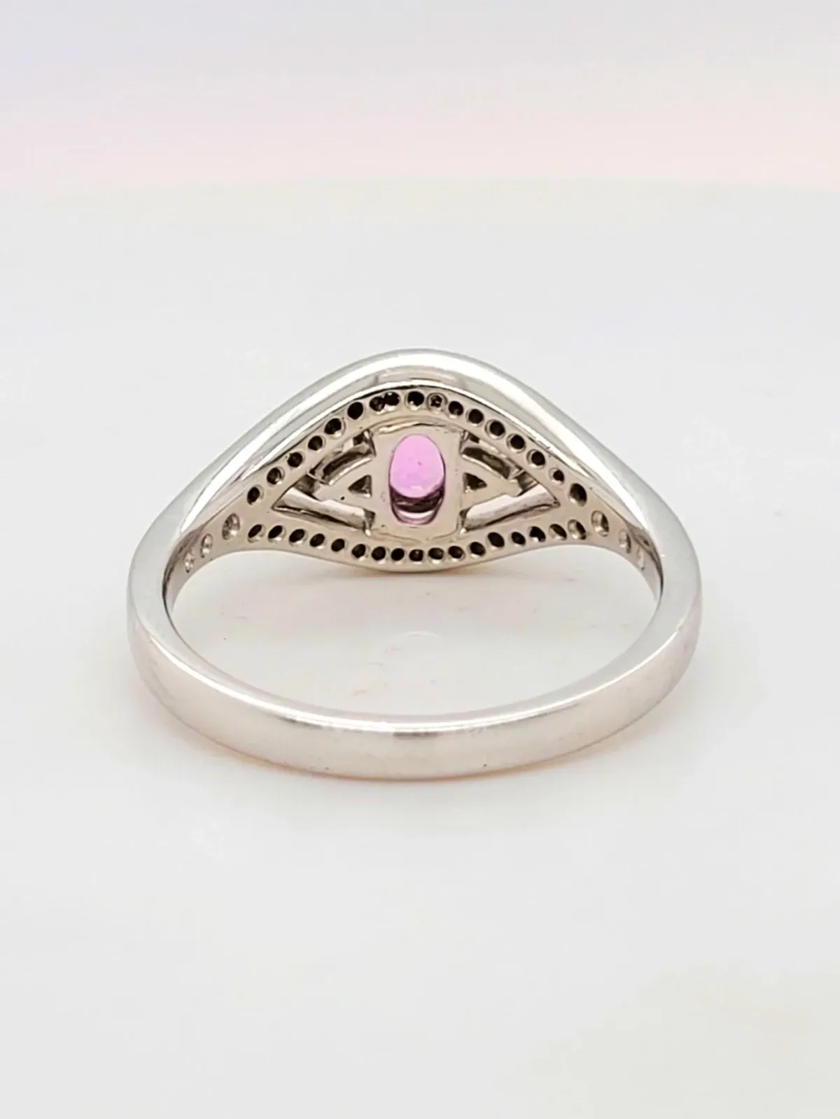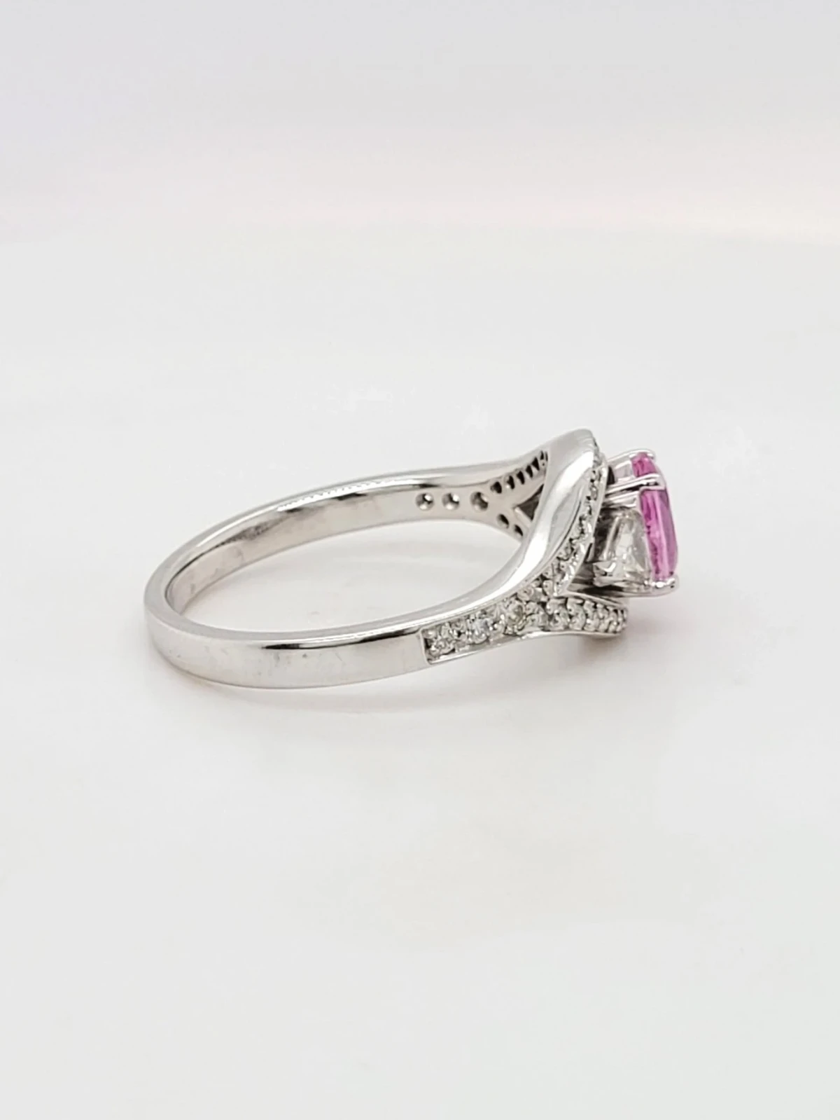Bold and romantic, this striking ring features a vivid 1.00ct pink sapphire at its centre, surrounded by a dazzling 0.65ct of brilliant-cut diamonds, all expertly set in enduring platinum. With a substantial weight of 7.1g, the ring offers a luxurious presence and exceptional craftsmanship. Whether chosen as a unique engagement ring, an anniversary gift, or a standout piece of fine jewellery, this design embodies elegance, colour, and timeless sparkle.