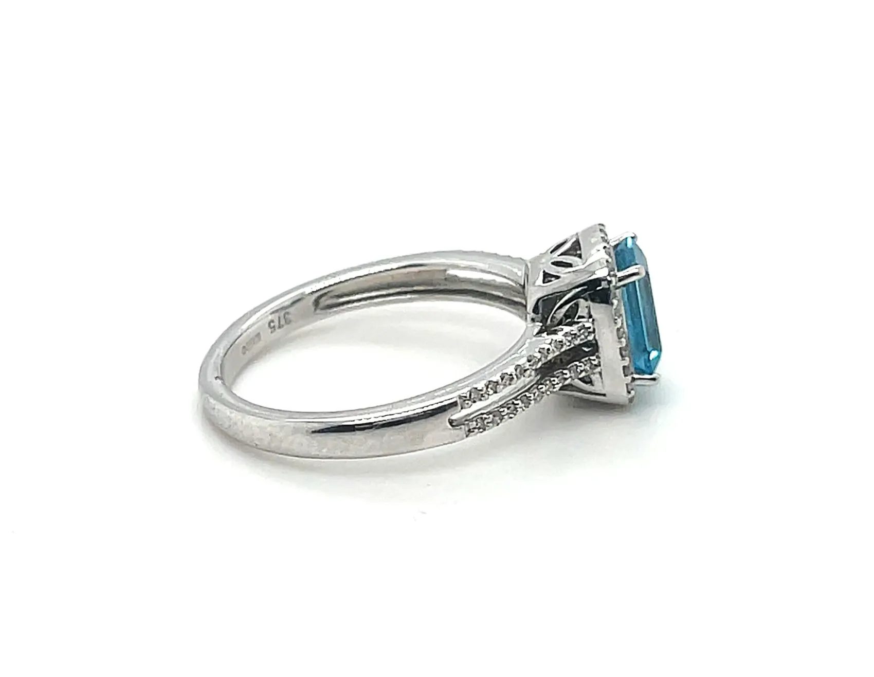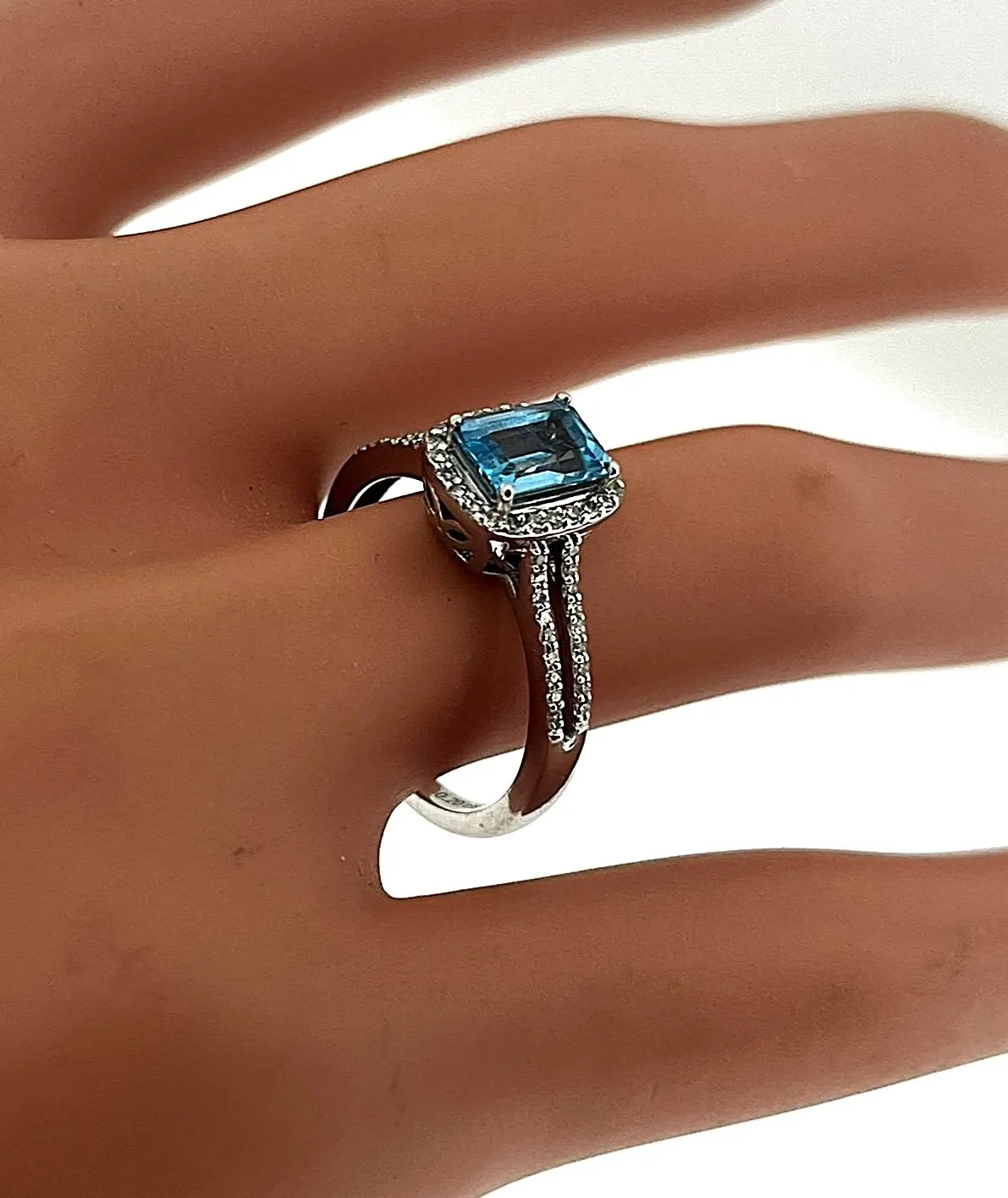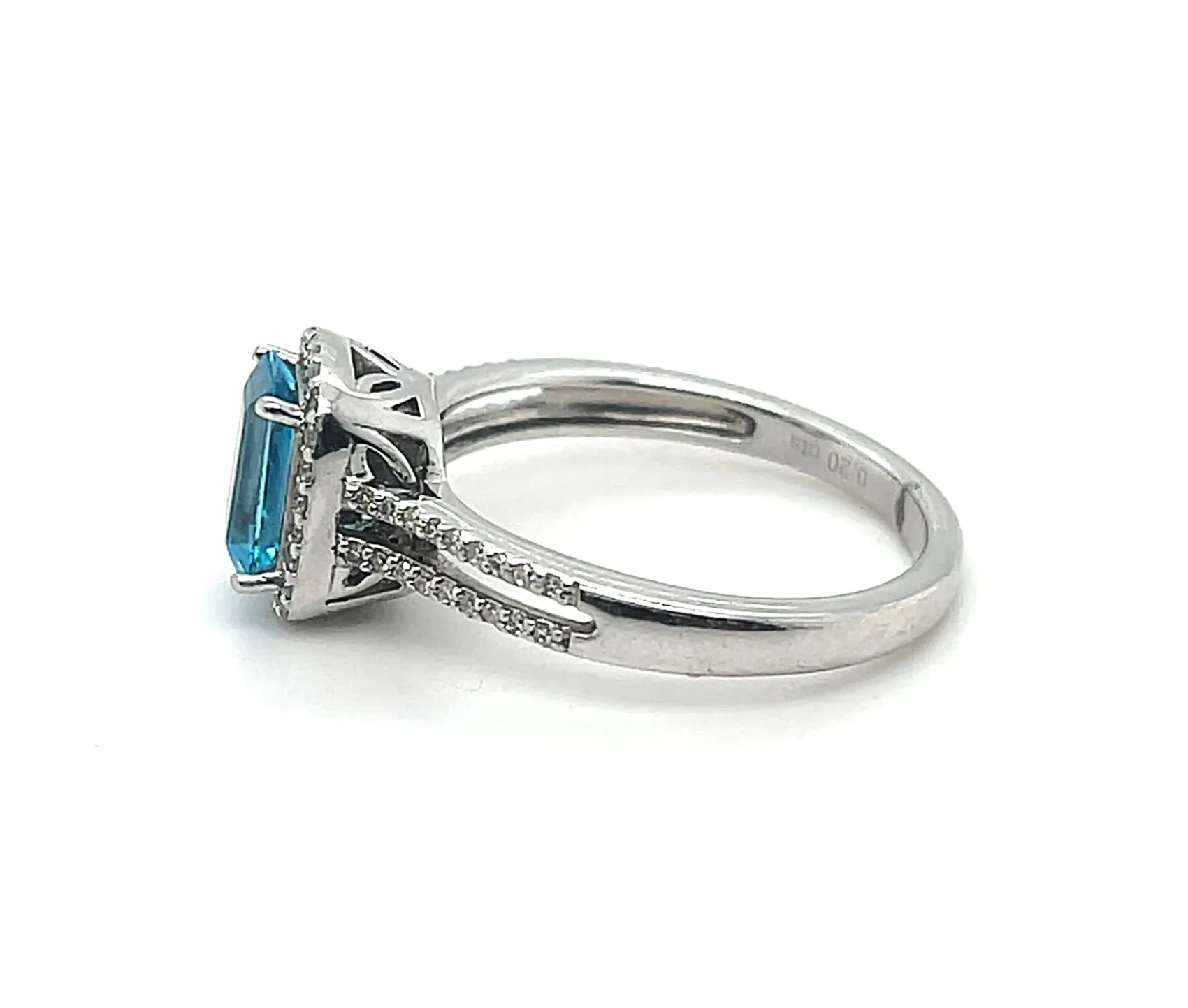 1.00ct Topaz & 0.20ct Diamond Halo Ring – 9ct White Gold, 3.3g Exuding elegance and sophistication, this stunning ring features a 1.00ct topaz centre stone, beautifully framed by a halo of sparkling 0.20ct diamonds. Set in 9ct white gold, the halo design enhances the brilliance of the topaz, creating a timeless and eye-catching piece. Weighing 3.3 grams, the ring is lightweight and comfortable, perfect for special occasions or everyday elegance. The polished white gold setting adds a luminous finish, ensuring the vibrant topaz and shimmering diamonds take centre stage. Details: