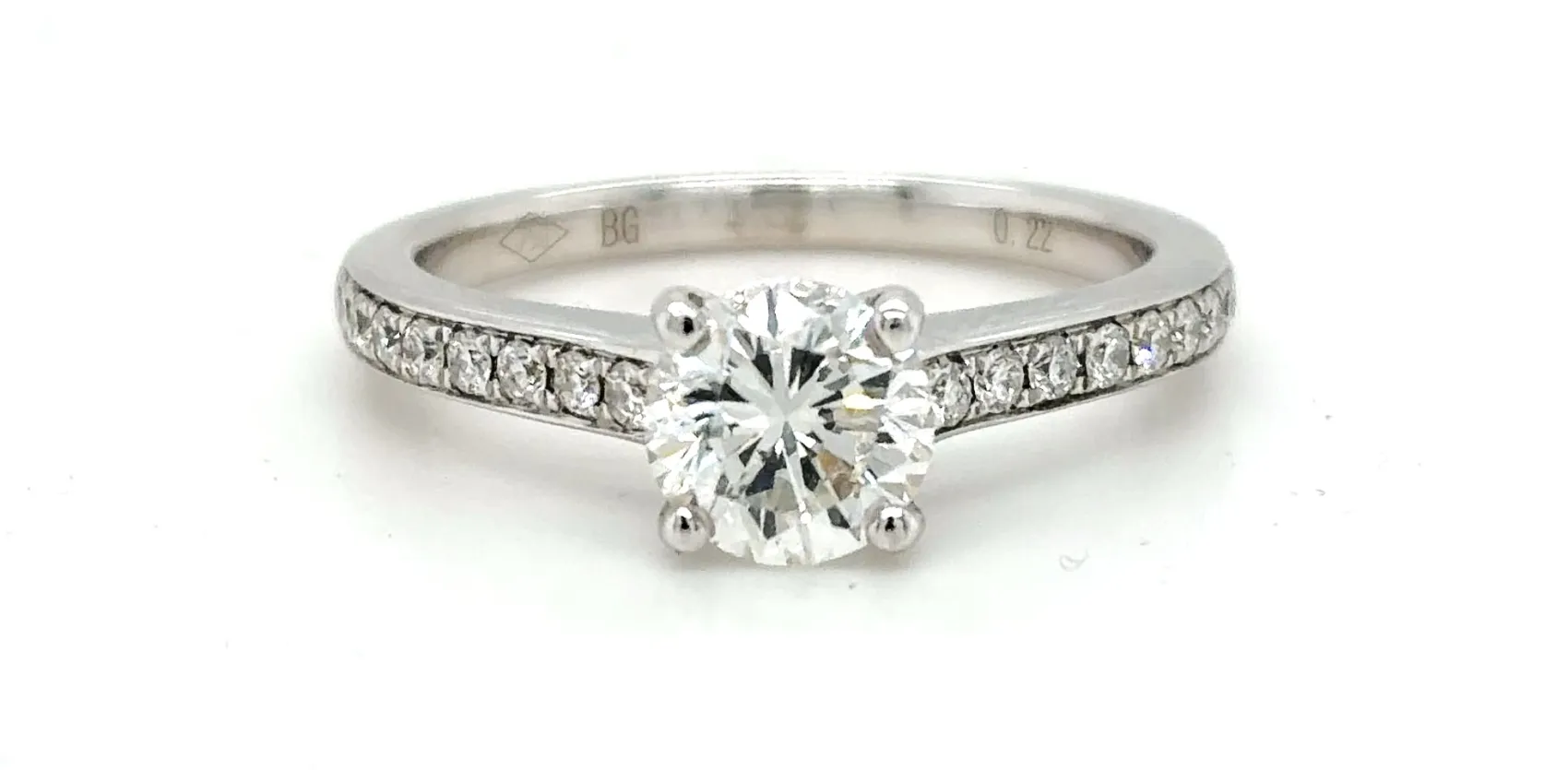 A striking symbol of timeless elegance, this exquisite solitaire ring features a 1.30-carat GIA certified diamond, expertly cut to deliver exceptional brilliance and fire. Set in luxurious 18-carat white gold, the classic solitaire design allows the diamond to take centre stage, enhanced by the cool, refined lustre of the precious metal. With a total weight of 3.7 grams, the ring offers a beautifully balanced feel, combining durability with everyday comfort. Perfect as an engagement ring or a meaningful fine jewellery piece, this sophisticated design is destined to be treasured for generations. Details: