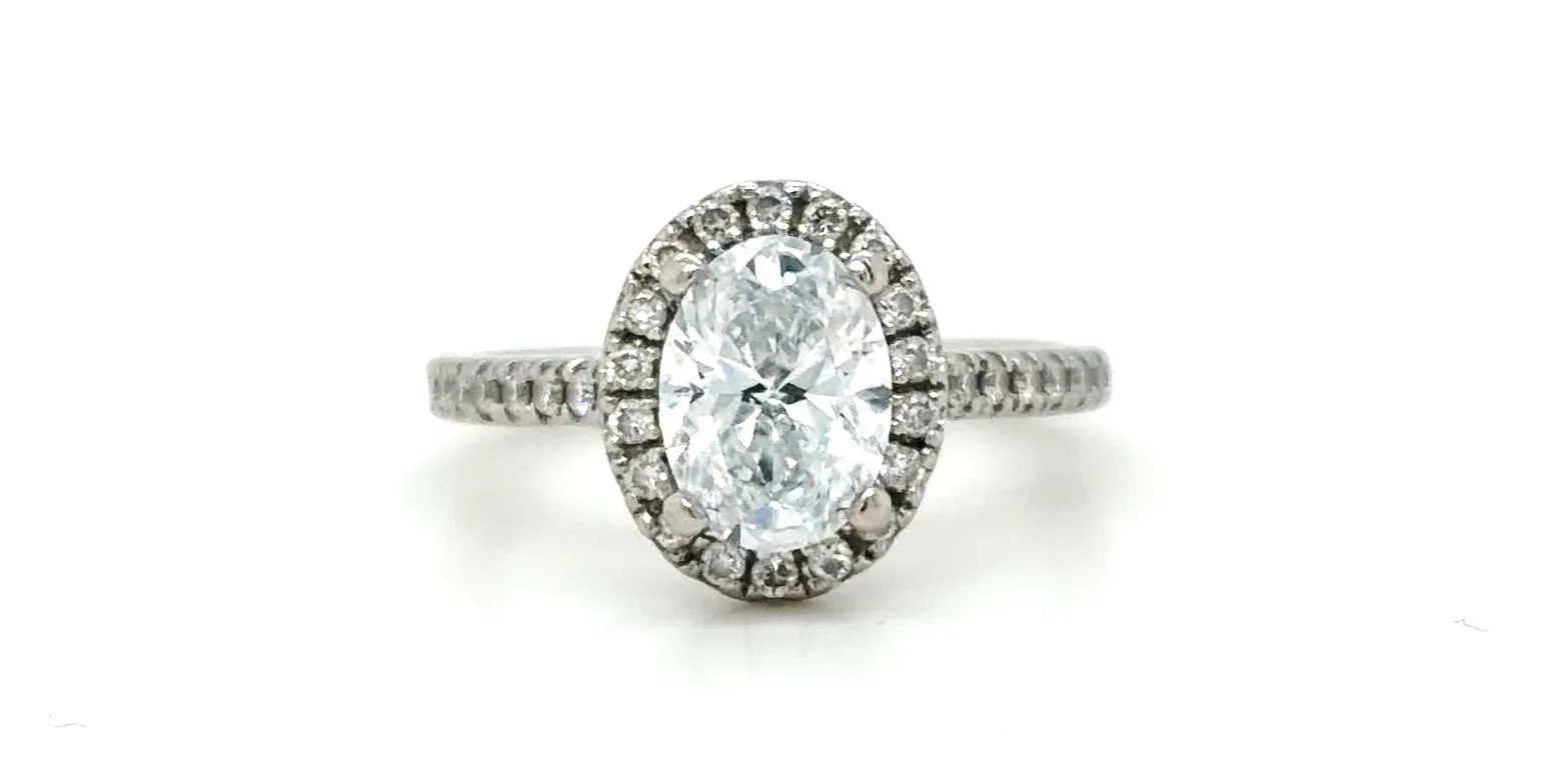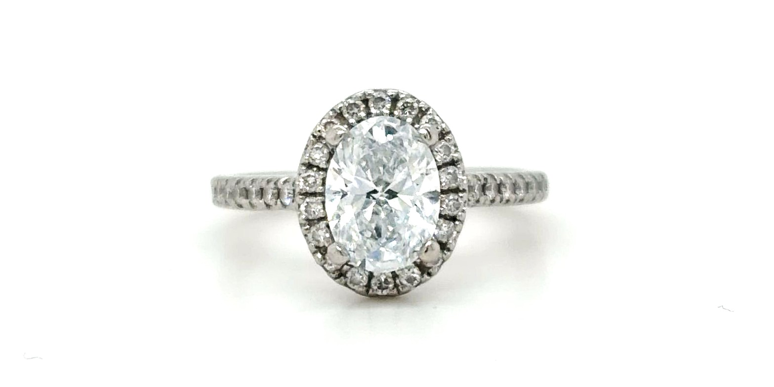 Elegant and radiant, this lab grown diamond halo solitaire ring is crafted in platinum and features a stunning 1.30 carat lab grown diamond, beautifully enhanced by a sparkling halo surround. The halo setting amplifies brilliance, creating a larger visual appearance and exceptional light reflection. Made from premium platinum, the ring weighs 3.6 grams, offering durability, comfort, and timeless sophistication. Platinum’s natural strength and lustre make it ideal for everyday wear, particularly as an engagement ring or special occasion piece. A perfect blend of modern ethics and classic luxury, this halo solitaire ring delivers outstanding sparkle with the added benefit of a sustainable lab grown diamond.