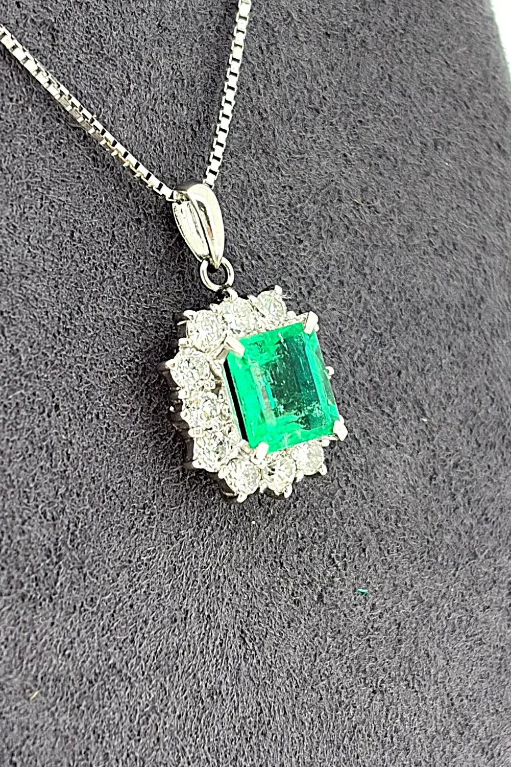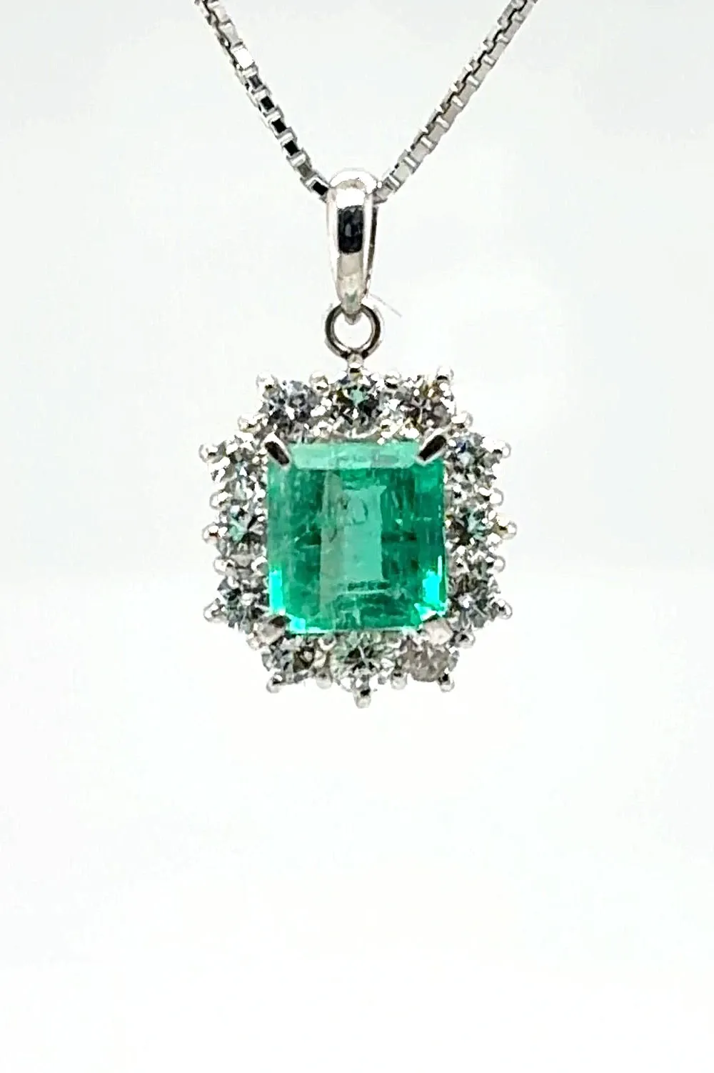 Elevate your jewellery collection with this exquisite 1.35ct Emerald & 0.34ct Diamond Pendant, masterfully crafted in luxurious platinum. The vivid green emerald radiates natural beauty, enhanced by 0.34ct of sparkling diamonds that add brilliance and contrast to the design. Suspended from a refined 17-inch platinum chain, this pendant weighs 5.5g, offering a perfectly balanced feel that combines elegance with everyday wearability. Its timeless style makes it an ideal choice for special occasions, milestone gifts, or anyone who treasures fine emerald jewellery. A classic piece that blends colour, luxury, and craftsmanship.