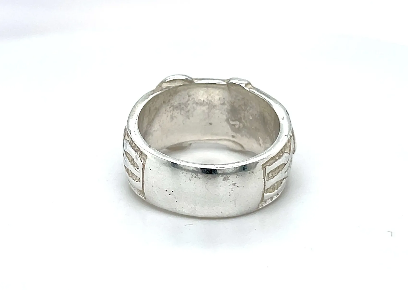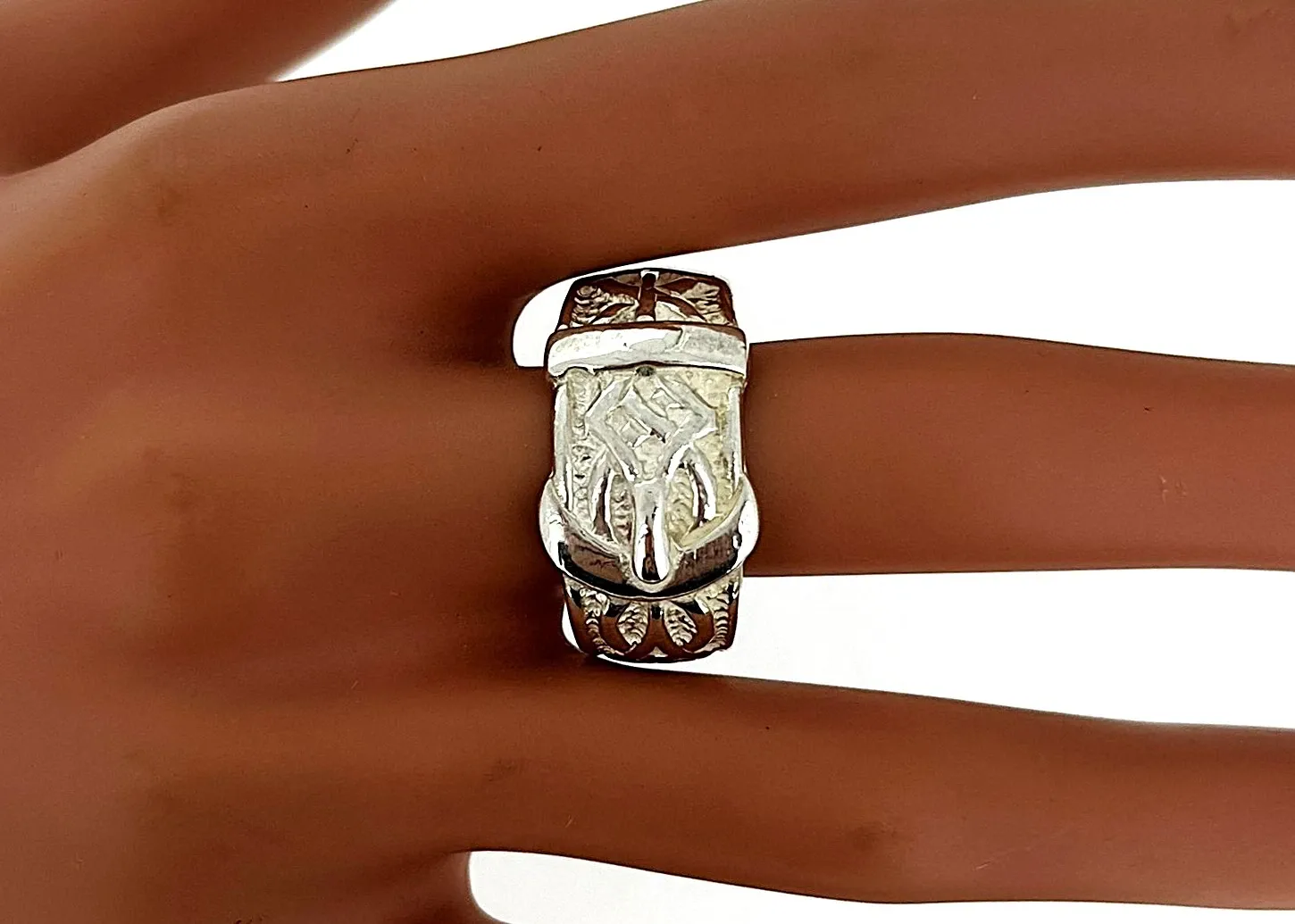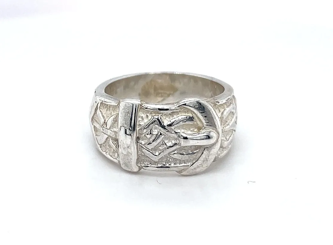 13.5mm Silver Buckle Ring – 15g Make a bold statement with this striking 13.5mm silver buckle ring. Crafted from high-quality sterling silver, the ring features a distinctive buckle design that combines classic style with a modern, edgy twist. Weighing 15 grams, this substantial ring has a solid presence on the finger while remaining comfortable for everyday wear. The polished finish enhances the natural shine of the silver, ensuring a durable and eye-catching piece that stands out in any collection. Details: