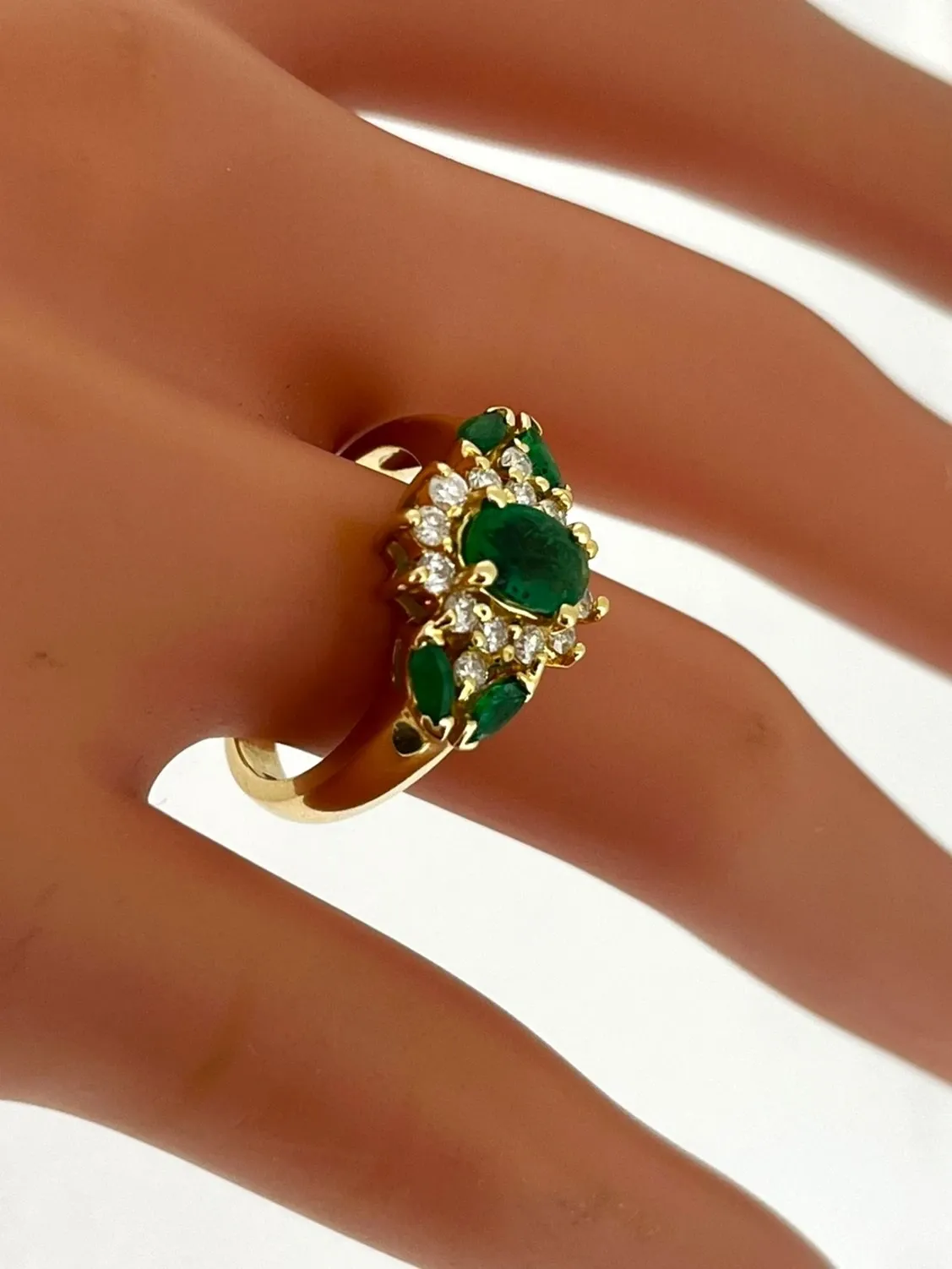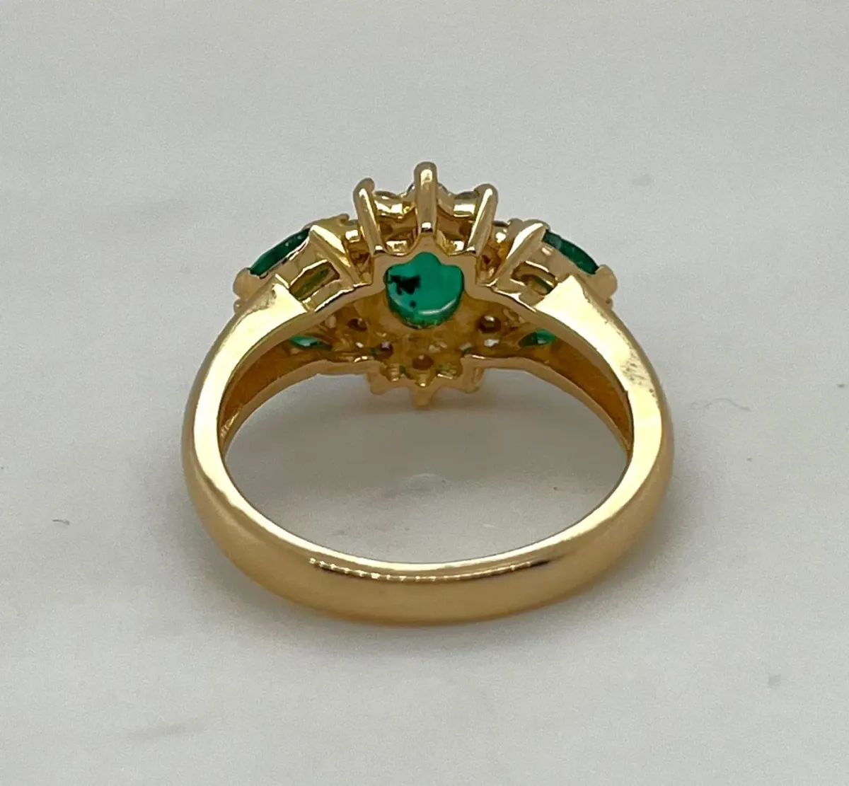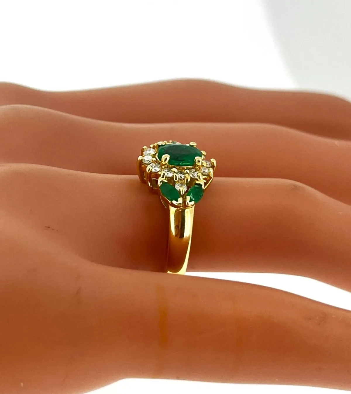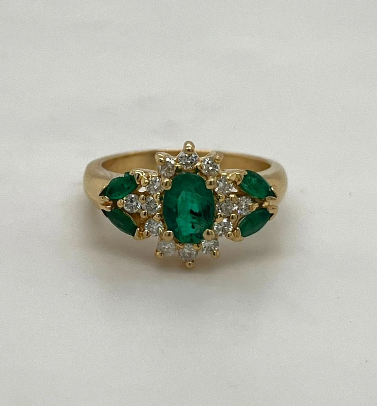 1.40ct Emerald & 0.80ct Diamond Dress Ring – 14ct Gold (5.2g) Make a statement with this stunning 14ct gold dress ring, featuring a vibrant 1.40ct emerald at its centre, accentuated by 0.80ct of brilliant diamonds. The rich green hue of the emerald is beautifully complemented by the sparkling diamonds, creating a ring that radiates elegance and sophistication. Weighing 5.2 grams, this dress ring offers a luxurious feel while maintaining a refined and wearable design. Perfect for special occasions, evening events, or as a memorable gift, it embodies timeless style and exquisite craftsmanship.