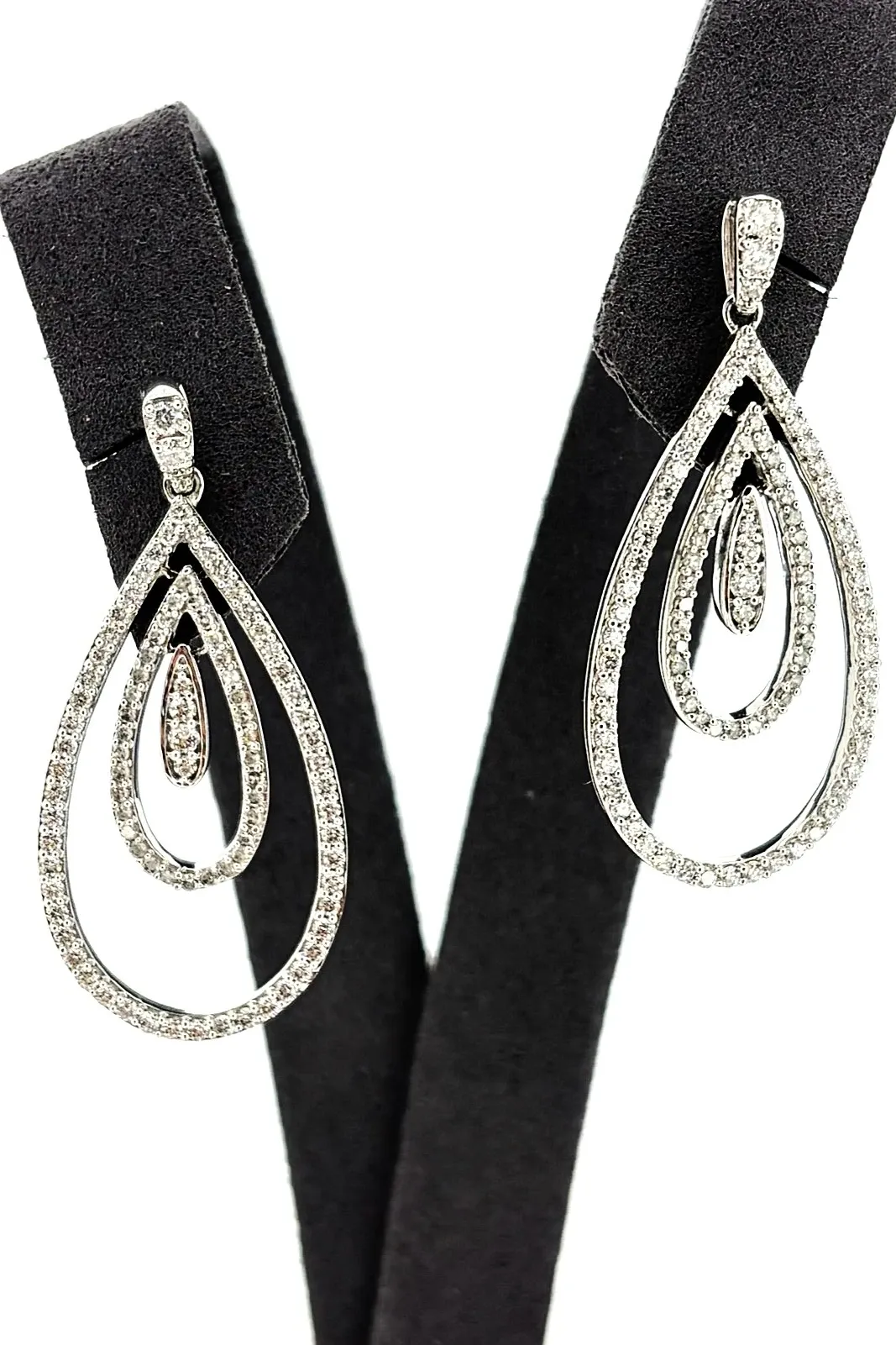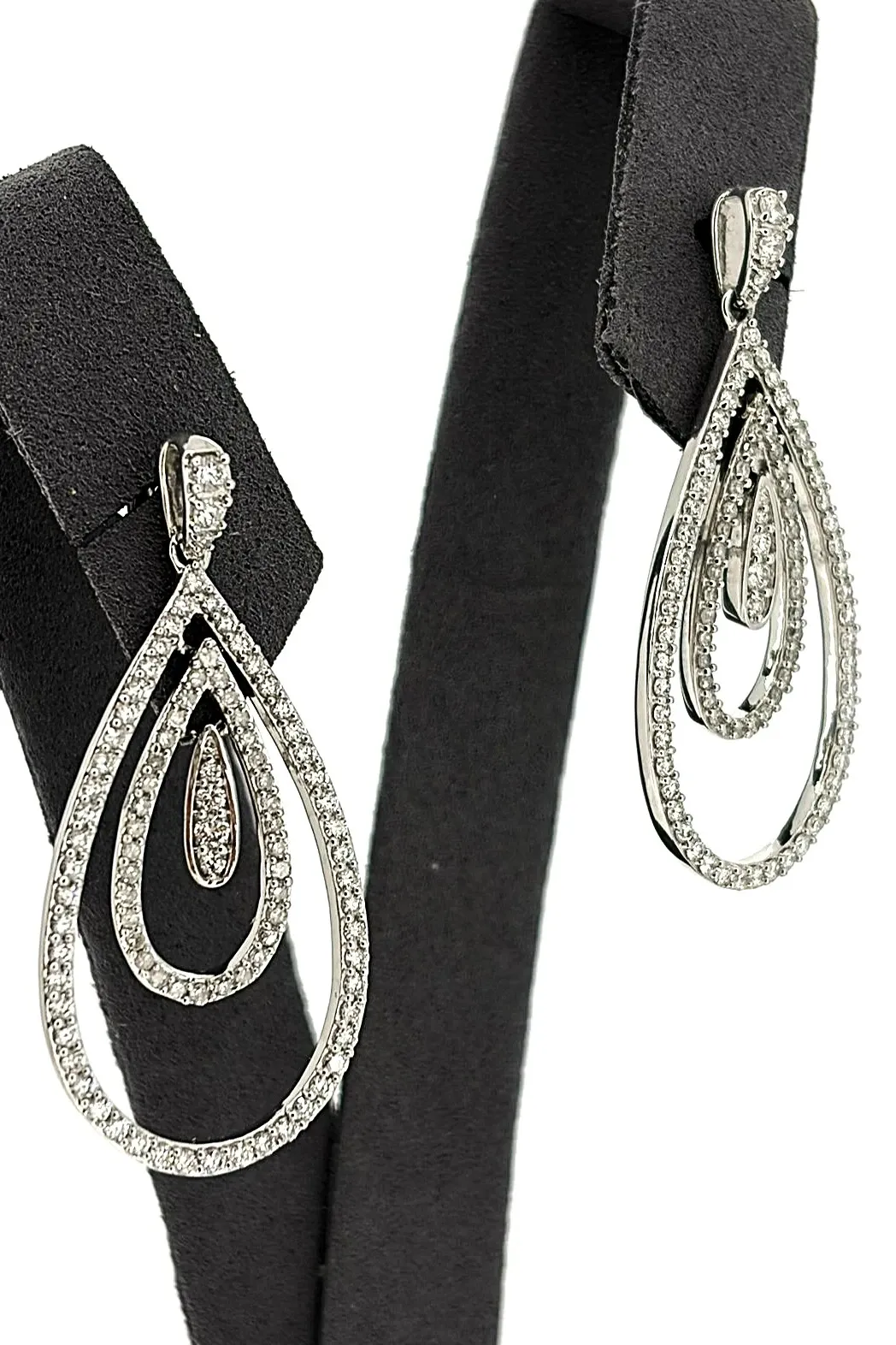 Make a statement with these stunning 1.50ct Diamond & 9ct White Gold Drop Stud Earrings, designed to bring elegance and brilliance to any occasion. Crafted in polished 9ct white gold, each earring features a graceful drop design measuring 41.00mm x 18.00mm, offering a striking yet refined silhouette. The 1.50ct of sparkling diamonds are beautifully arranged to maximise light and radiance, creating an eye-catching shimmer with every movement. Weighing 7.8g, these earrings feel luxurious while remaining comfortable for extended wear. Perfect for evening wear, celebrations, weddings, or adding a touch of glamour to any outfit, these drop studs are an exquisite addition to any fine jewellery collection.