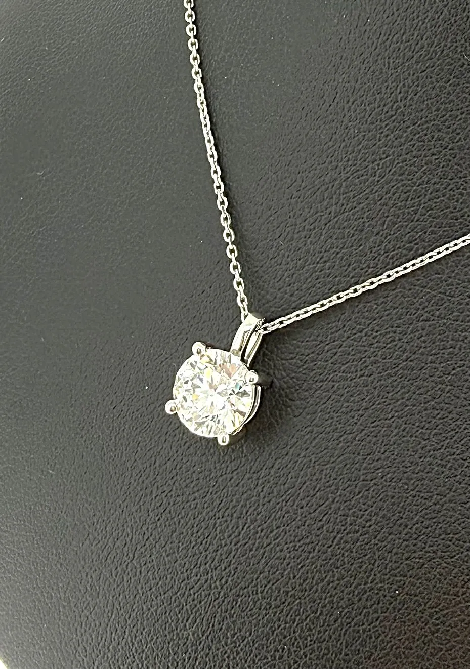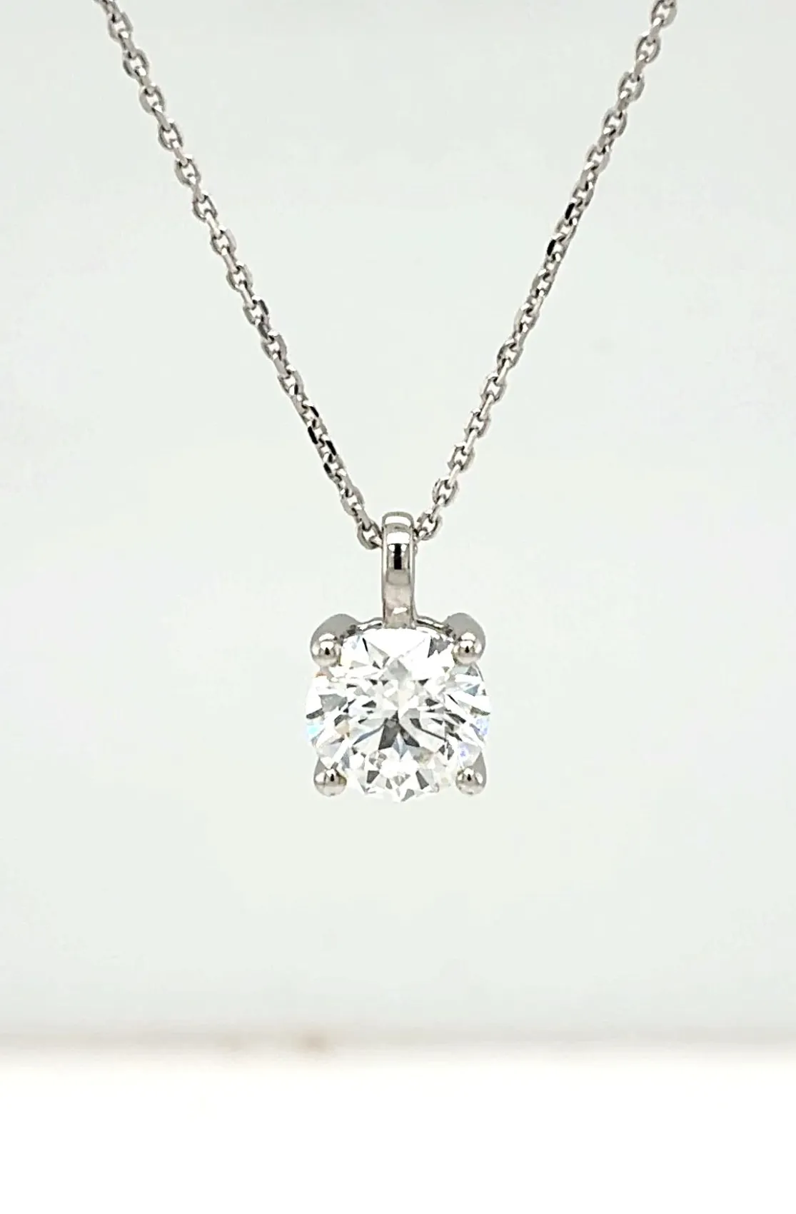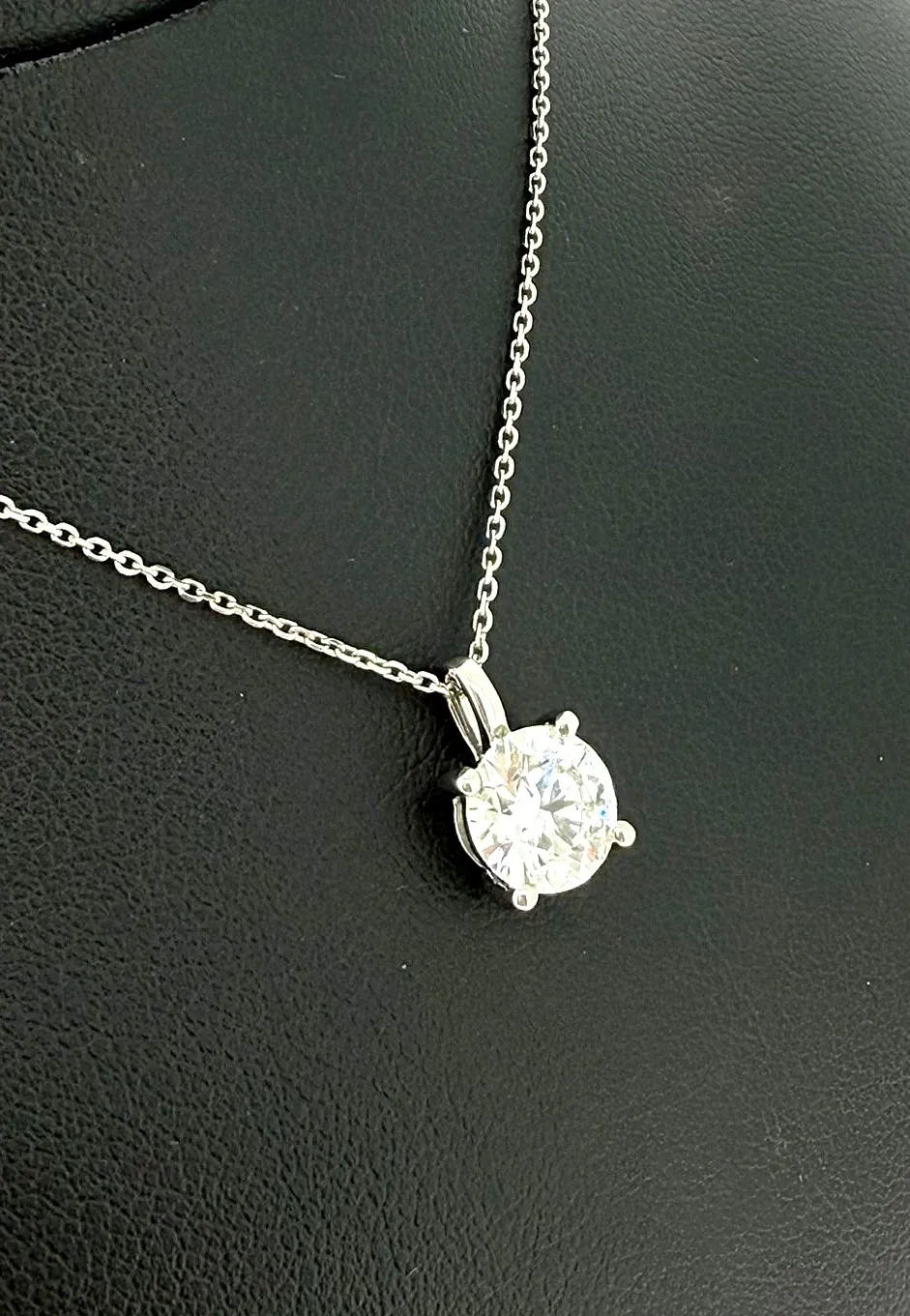 Elevate your everyday elegance with this timeless 1.50ct lab-grown diamond solitaire pendant, beautifully crafted in 9ct white gold. The striking round brilliant diamond is expertly cut to maximise brilliance, offering exceptional sparkle with a modern, ethical edge. Suspended from a sleek white-gold bale, the pendant comes complete with an adjustable 16/18 inch chain, allowing you to tailor the length to suit any neckline or occasion. Whether worn as a signature piece or gifted to someone special, this pendant embodies sophistication, sustainability, and enduring style. Features: