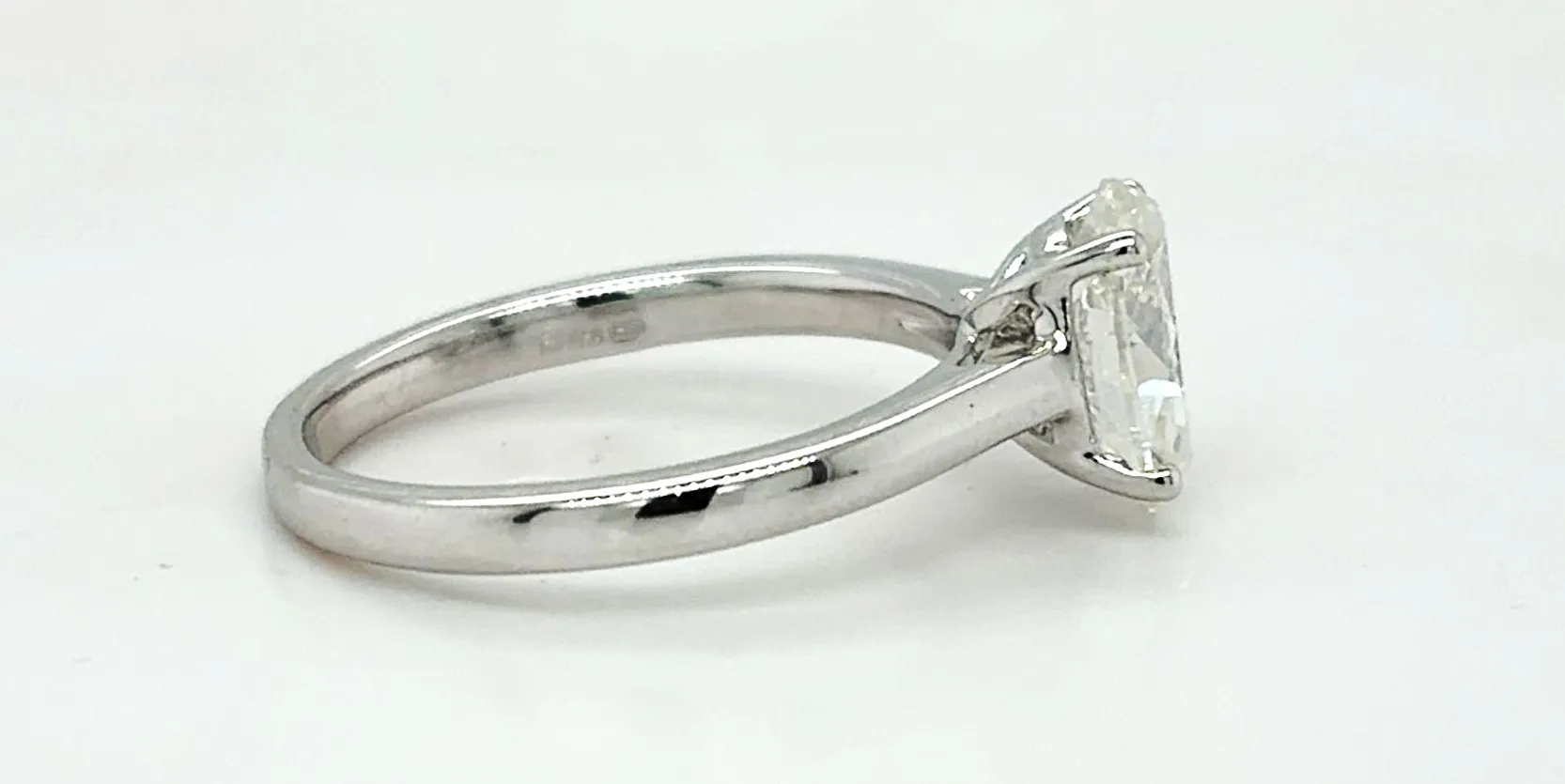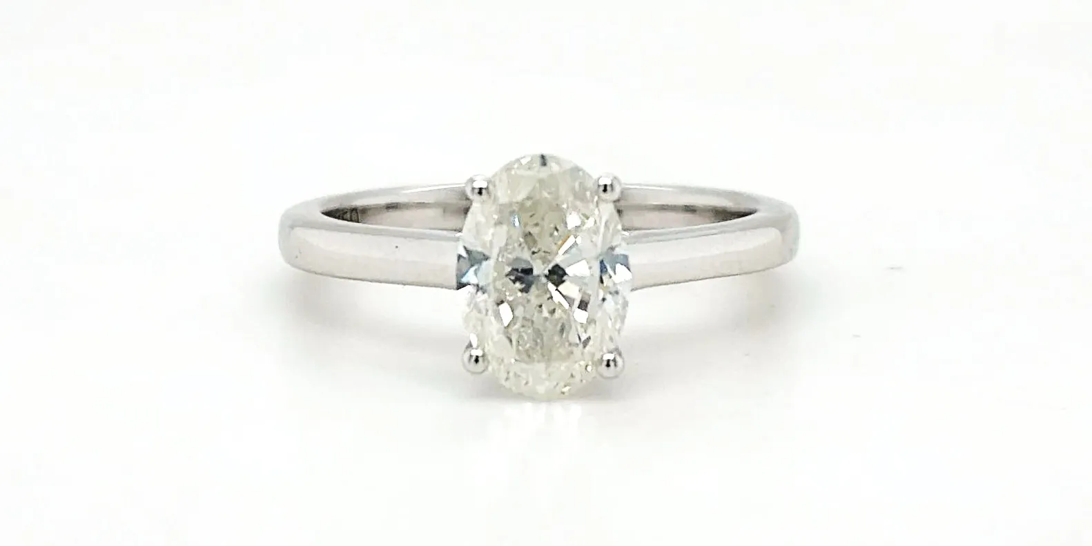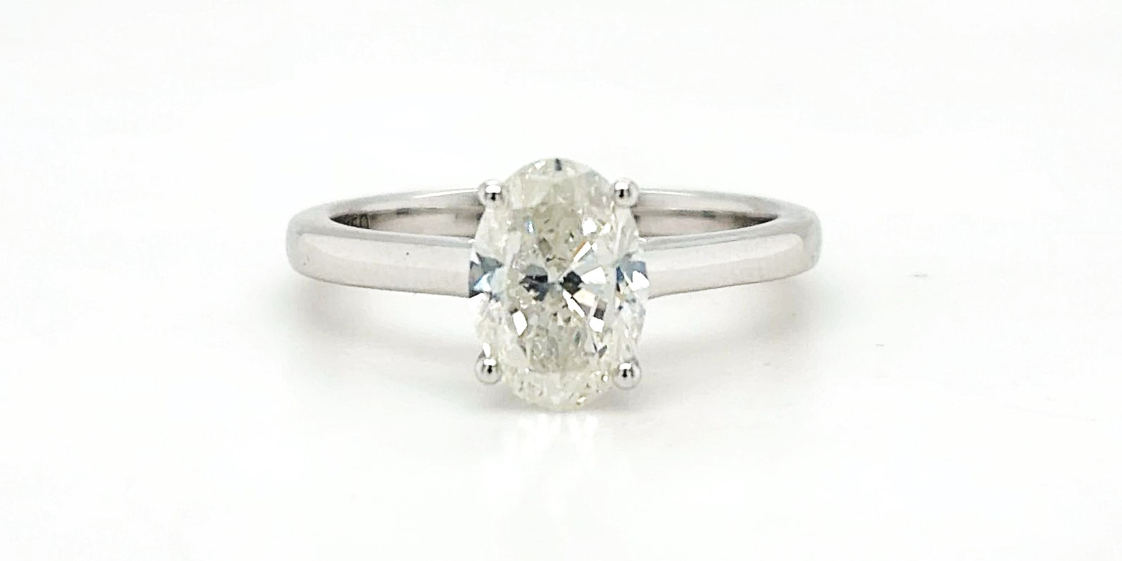 Elegant and timeless, this oval diamond solitaire ring is beautifully crafted in 18ct white gold and set with a stunning 1.50 carat oval-cut diamond. The classic solitaire setting enhances the diamond’s natural brilliance, creating a refined and sophisticated look. Made from high-quality 18ct white gold, the ring weighs 3.3 grams, offering a delicate yet secure feel on the hand. The elongated oval shape adds a flattering appearance to the finger, making this ring perfect for engagements, anniversaries, or as a statement piece. A luxurious symbol of love and commitment, this solitaire ring is a timeless addition to any fine jewellery collection.