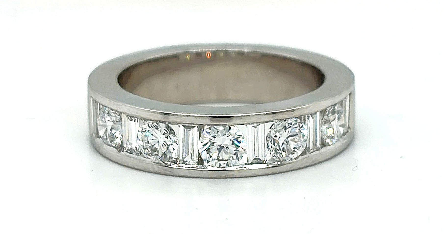 This elegant wedding and eternity band is beautifully crafted in luxurious platinum, offering exceptional durability and a timeless white lustre. Measuring 6mm in width and weighing a substantial 20.6 grams, the band has a reassuringly solid feel, perfect for everyday wear. Set with 1.60 carats of lab grown diamonds, the stones are expertly matched for brilliance and fire, creating a continuous line of sparkle that symbolises everlasting love. Lab grown diamonds offer the same beauty and quality as mined diamonds, while being a more sustainable and ethical choice. Designed to be worn as a wedding band, eternity ring, or statement piece, this platinum diamond band combines modern responsibility with classic elegance—an enduring symbol of commitment that will be treasured for a lifetime