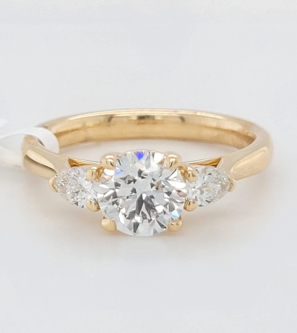 The trilogy design showcases a dazzling centre stone, flanked by two equally brilliant side stones, offering exceptional sparkle and sophistication from every angle. Ethically sourced and environmentally conscious, the lab grown diamonds deliver all the fire and brilliance of mined stones with a lower environmental impact.