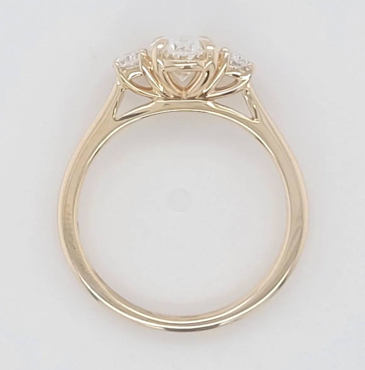 1.66ct Lab Grown Diamond & 9ct Gold Trilogy Ring – Size M (2.8g) Celebrate past, present, and future with this exquisite 1.66-carat lab grown diamond trilogy ring crafted in elegant 9ct gold. Featuring three beautifully set lab created diamonds, this design symbolises enduring love and commitment, making it a meaningful choice for engagements, anniversaries, or special milestones. Weighing 2.8 grams and available in ring size M, the classic trilogy setting highlights each diamond’s brilliance, creating a harmonious sparkle from every angle. The lab grown diamonds offer ethical luxury with exceptional clarity and fire, paired perfectly with the warm glow of 9ct gold for a timeless and responsible piece of fine jewellery.