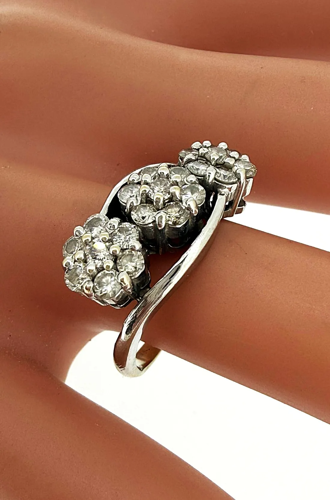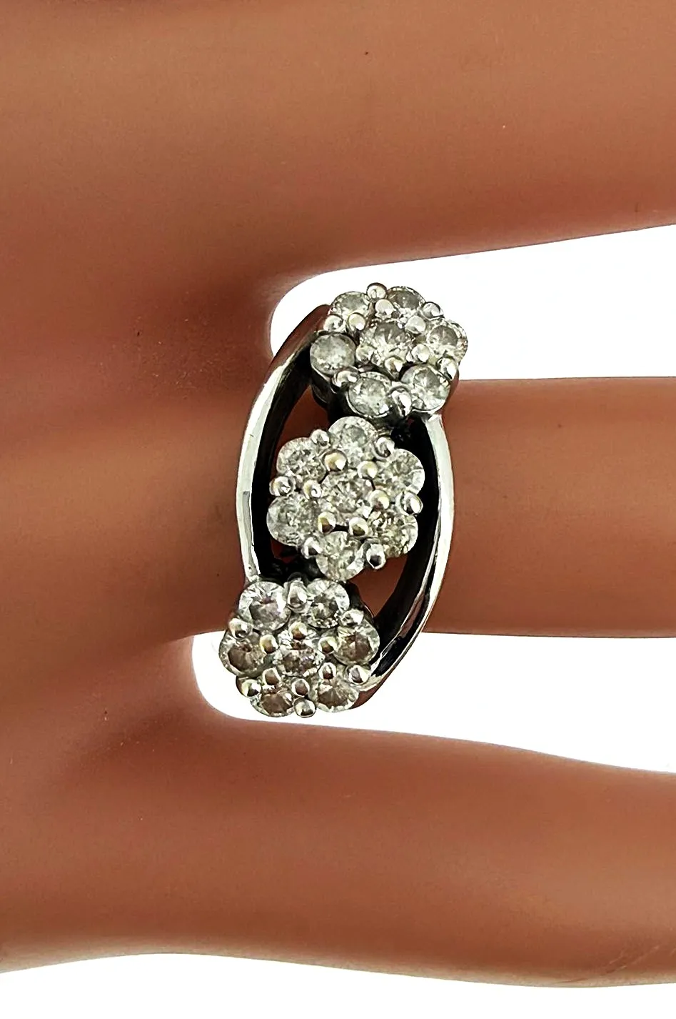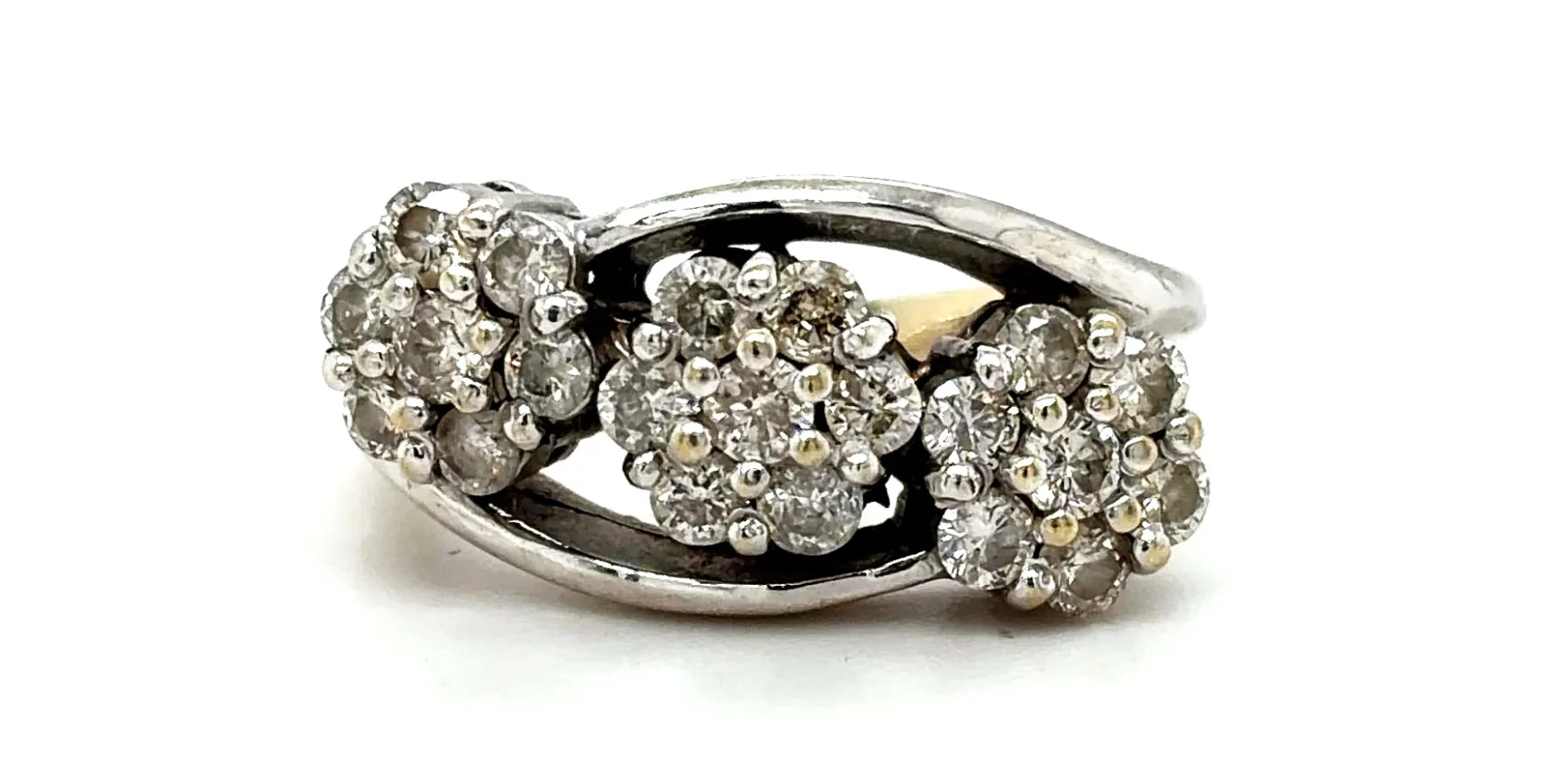 Timeless and elegant, this trilogy cluster ring is crafted in 18ct white gold and features a total of 0.75 carats of sparkling diamonds arranged in a classic three-stone cluster design. The trio of diamonds represents past, present, and future, making it an ideal symbol of love and commitment. Weighing 5.9 grams, the ring offers a substantial yet comfortable fit, with a polished white gold band that enhances the diamonds’ brilliance. Perfect as an engagement ring, anniversary gift, or statement piece, this trilogy cluster ring combines traditional design with modern elegance. A sophisticated and meaningful addition to any fine jewellery collection, this ring is designed to shine on every occasion.