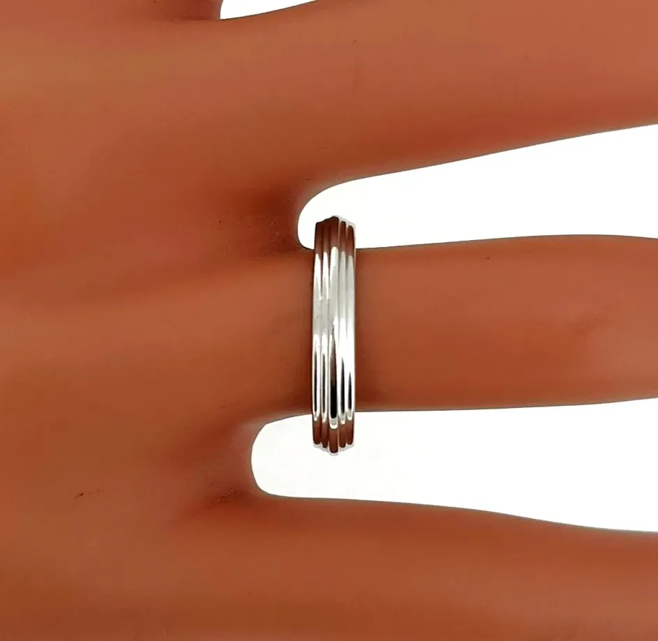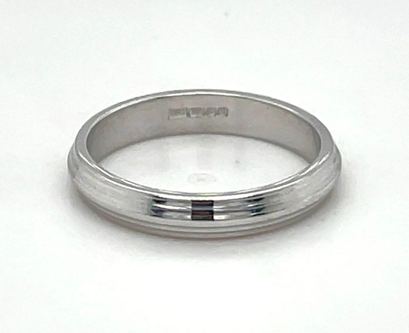 18ct White Gold Diamond-Cut Wedding Band – 3.3mm, 3.3g This exquisite 3.3mm wedding band is crafted from luxurious 18ct white gold and features a sophisticated diamond-cut design that catches the light with every movement. The diamond-cut pattern adds subtle sparkle and texture, giving the band a modern yet timeless appeal. Weighing 3.3 grams, the ring is lightweight and comfortable, making it ideal for daily wear while symbolising enduring love and commitment. The polished finish enhances the brilliance of the white gold, ensuring a radiant look for years to come. Details: