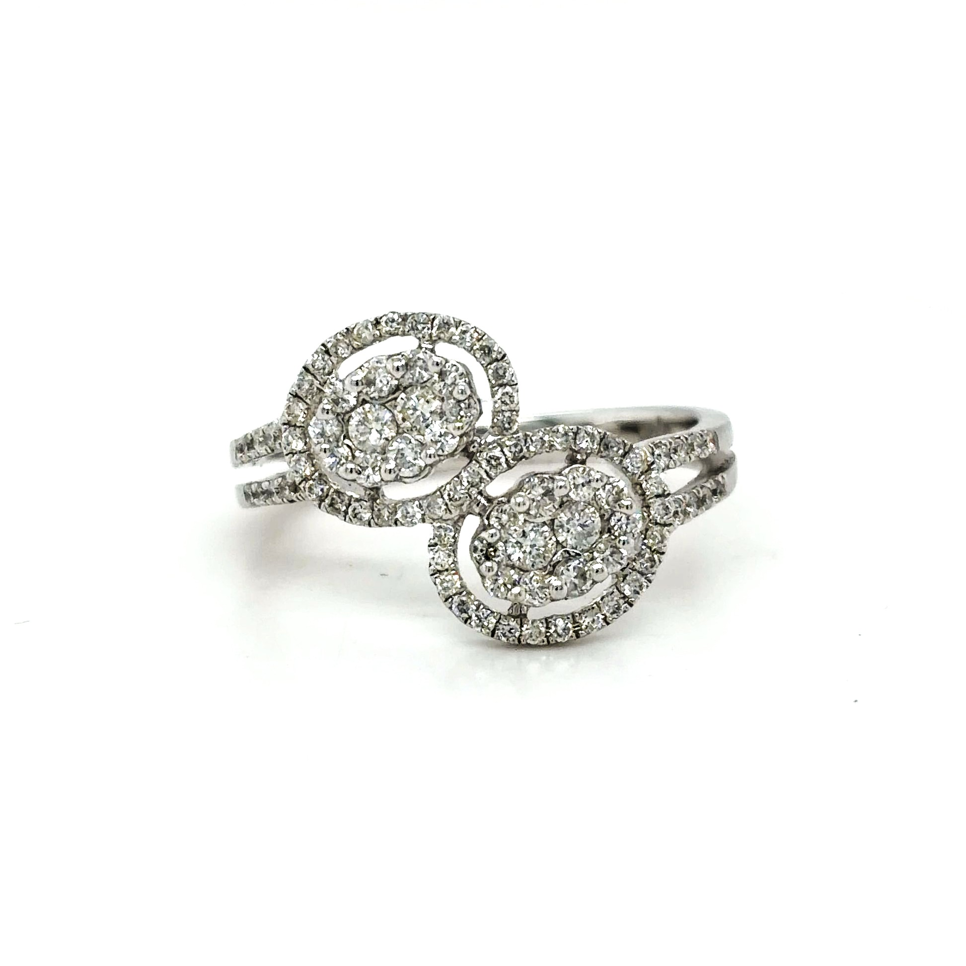 Elegant and contemporary, this 0.70ct Diamond Twist/Halo Ring is beautifully crafted in luxurious 18ct white gold. Featuring a total of 0.70 carats of sparkling diamonds, the design combines a graceful twist detail with a delicate halo setting, enhancing brilliance and creating a captivating play of light. The flowing lines of the twist band add movement and modern sophistication, while the halo accentuates the centre for maximum impact. Crafted entirely in 18ct white gold and weighing approximately 3.16 grams, this ring offers both refinement and comfort, making it suitable for everyday elegance or special occasions.
