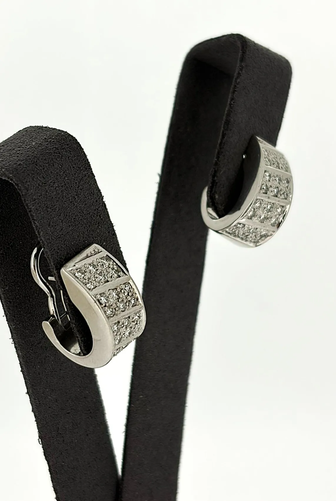 Bold, elegant and beautifully crafted, these 0.74ct Diamond Huggies Style Earrings are set in luxurious 18ct white gold. Featuring a total of 0.74 carats of sparkling diamonds, each stone is expertly set to maximise brilliance and create continuous shimmer across the front of the design. The classic huggies style offers a close, comfortable fit to the earlobe, combining contemporary styling with timeless sophistication. Measuring approximately 17mm x 8.2mm and weighing an impressive 13.9 grams, these earrings have a substantial, high-quality feel while remaining perfectly balanced for wear. Their refined yet statement-making presence makes them ideal for both everyday luxury and special occasions.