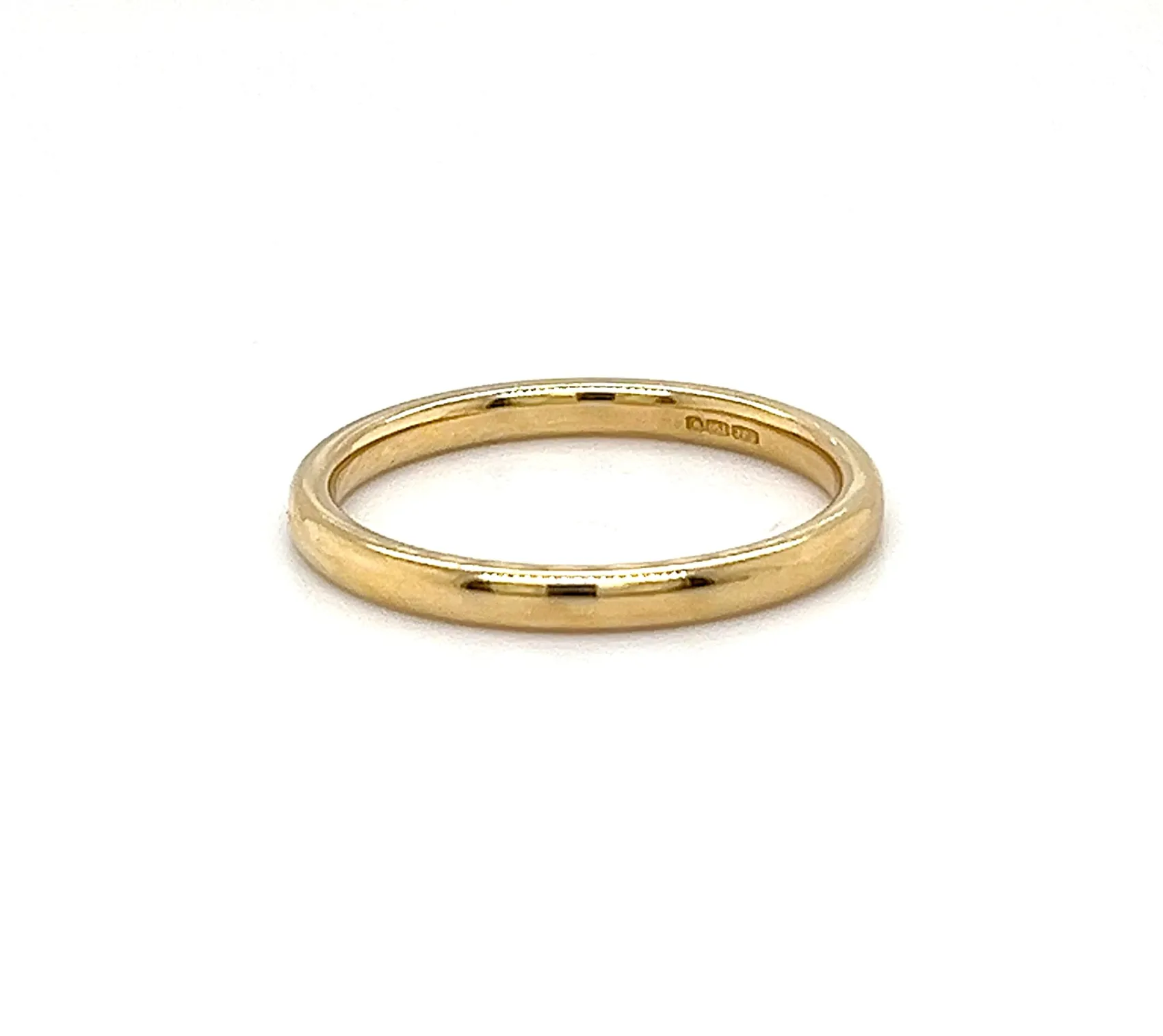 18ct Yellow Gold 2mm Traditional Court Wedding Band – 2.4g A classic symbol of love and commitment, this 2mm traditional court wedding band is crafted in 18ct yellow gold, offering timeless elegance in a sleek, understated design. Weighing 2.4 grams, it provides a comfortable and lightweight fit, perfect for everyday wear. The gently rounded court profile ensures a smooth and classic silhouette, making it a versatile choice for both him and her. Simple, elegant, and enduring, this wedding band is a perfect expression of everlasting devotion.