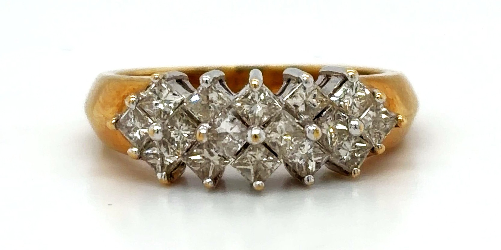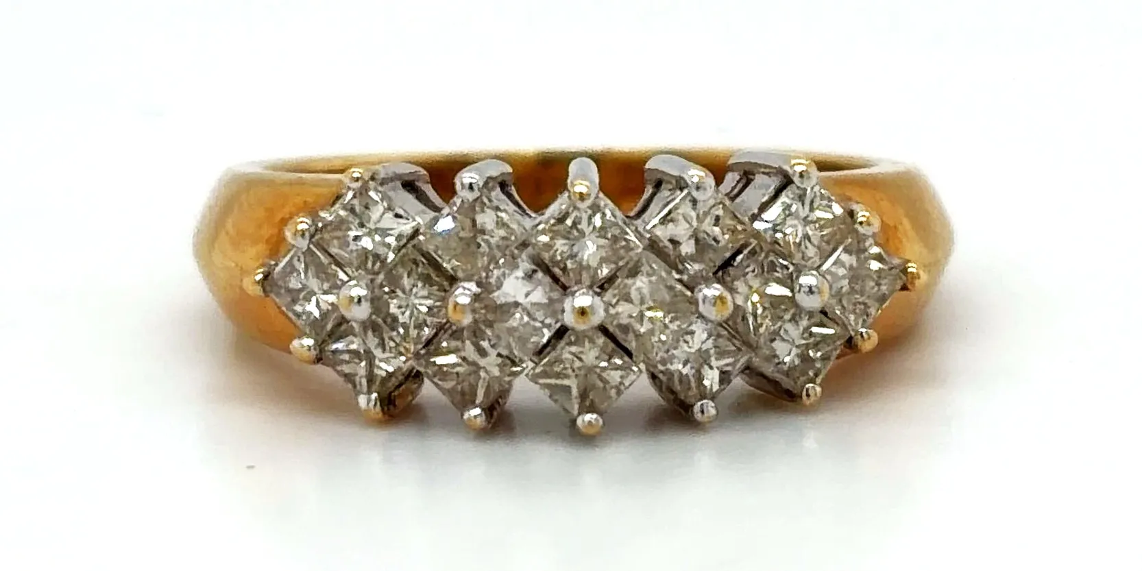 Bold, brilliant and beautifully crafted, this 1.00ct Diamond & 18ct Gold Dress Ring is designed to make an unforgettable impression. Expertly made from luxurious 18ct gold and weighing approximately 5.4 grams, this striking ring offers both presence and comfort. A dazzling arrangement of diamonds totalling 1.00 carat creates exceptional sparkle, making it the perfect statement piece for special occasions or elegant evening wear. The warm glow of polished 18ct gold enhances the fire and brilliance of the diamonds, resulting in a sophisticated design that is both timeless and eye-catching. Whether worn as a celebration ring, cocktail ring or signature dress piece, this ring exudes confidence and refined glamour. Key Features: