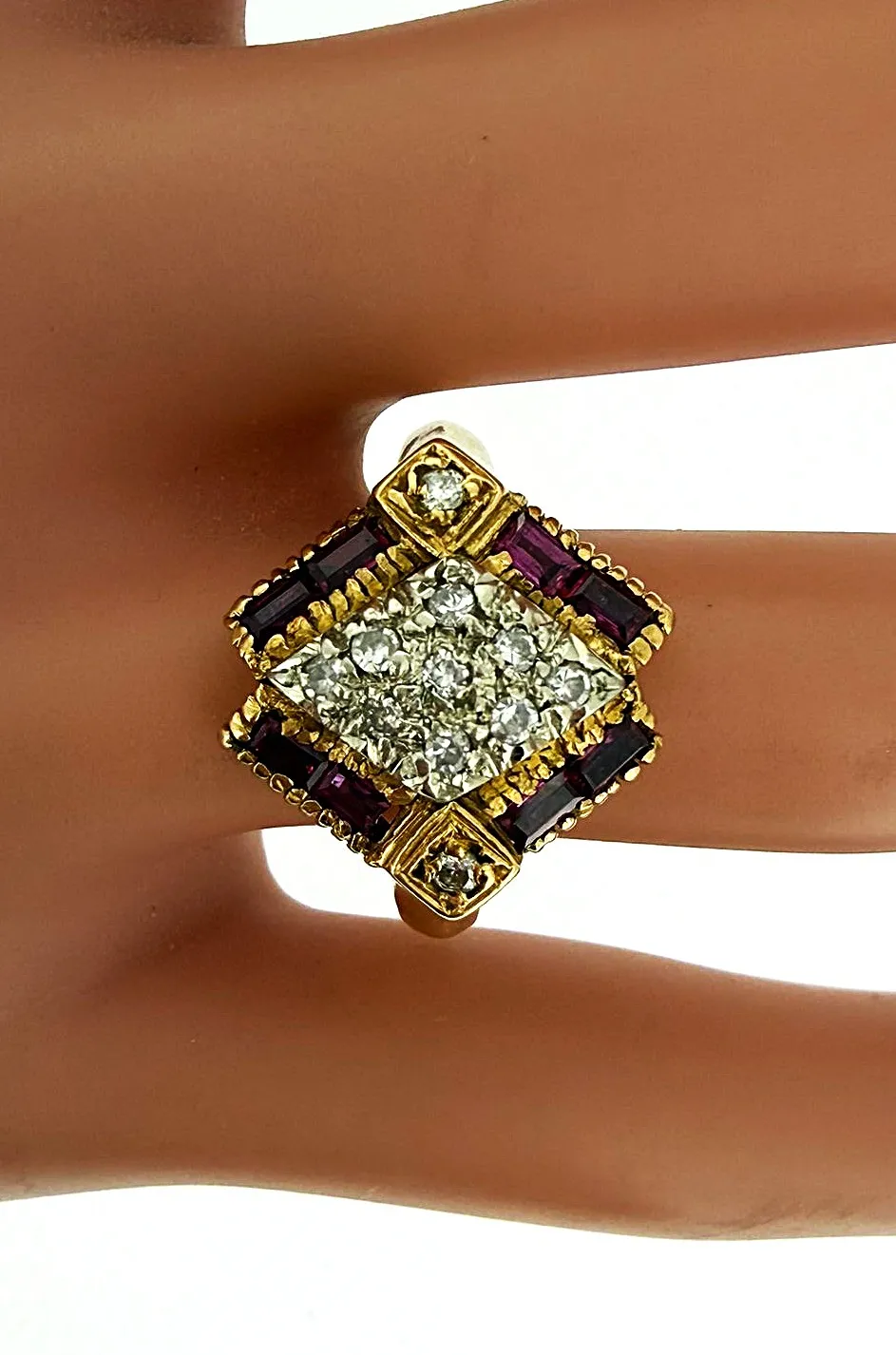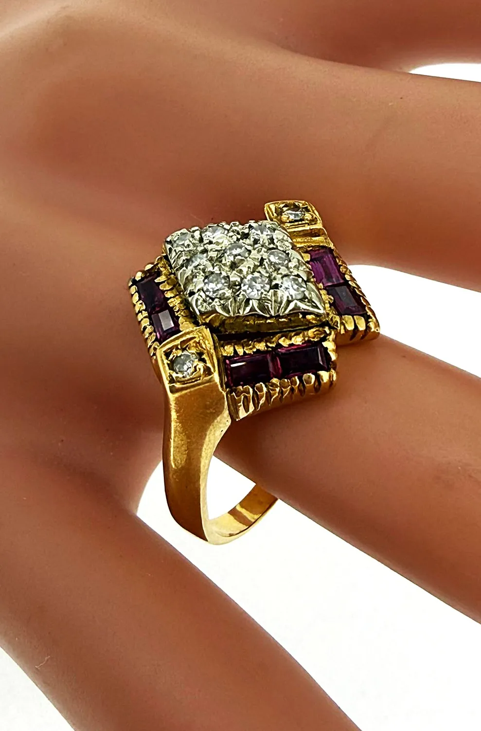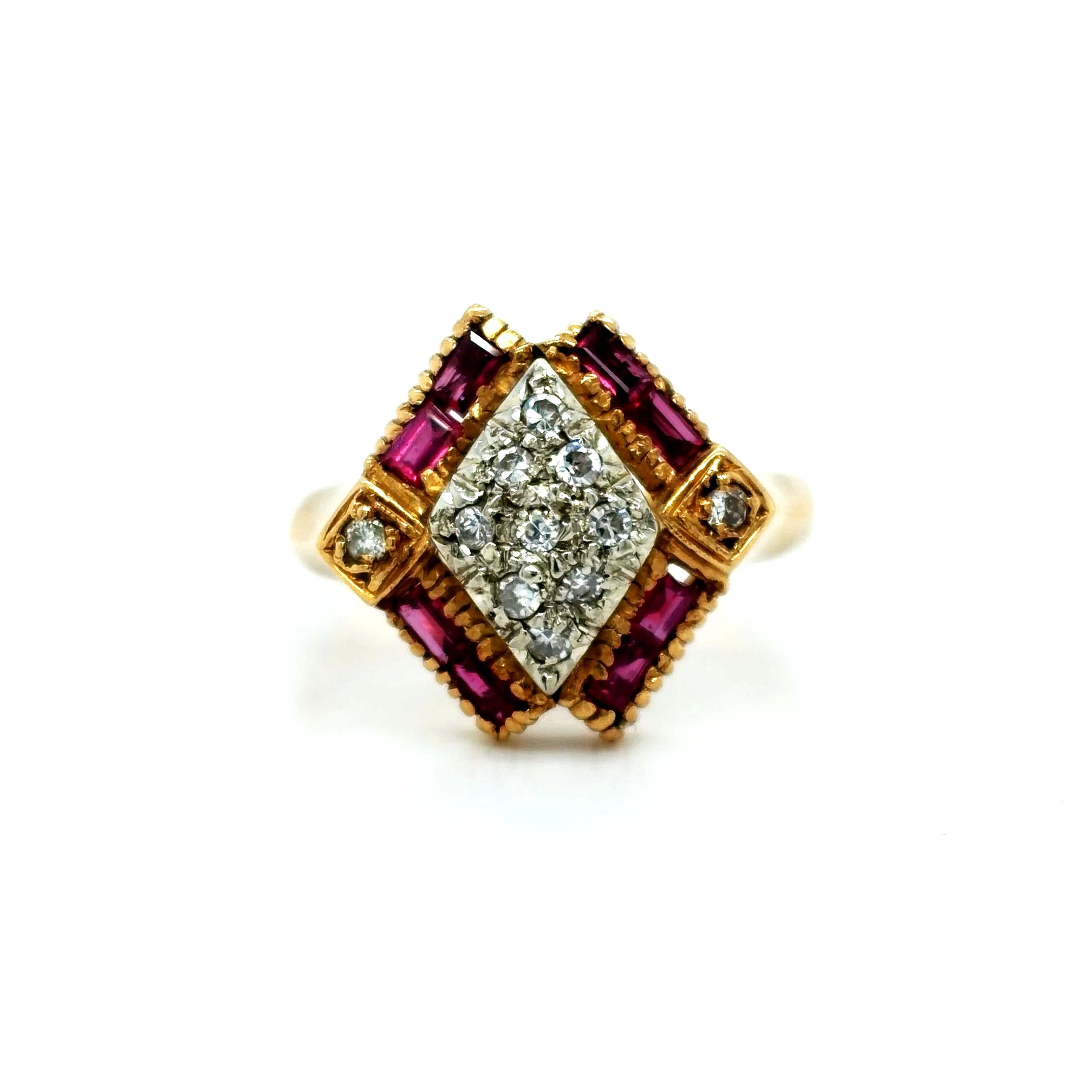 Make a striking statement with this exquisite 0.80ct Ruby & 0.30ct Diamond Art Deco Style Dress Ring, beautifully crafted in luxurious 18ct gold. At its centre sits a vibrant 0.80 carat ruby, rich in colour and full of captivating depth. Surrounding and accenting the design are 0.30 carats of sparkling diamonds, carefully set to enhance the geometric elegance inspired by classic Art Deco design. The clean lines and balanced proportions evoke vintage glamour while maintaining a timeless sophistication. Crafted in radiant 18ct gold and weighing approximately 7.3 grams, this ring offers a reassuring, high-quality feel on the hand. Bold yet refined, it is perfect as a statement dress ring, a special occasion piece, or a distinctive addition to any fine jewellery collection.