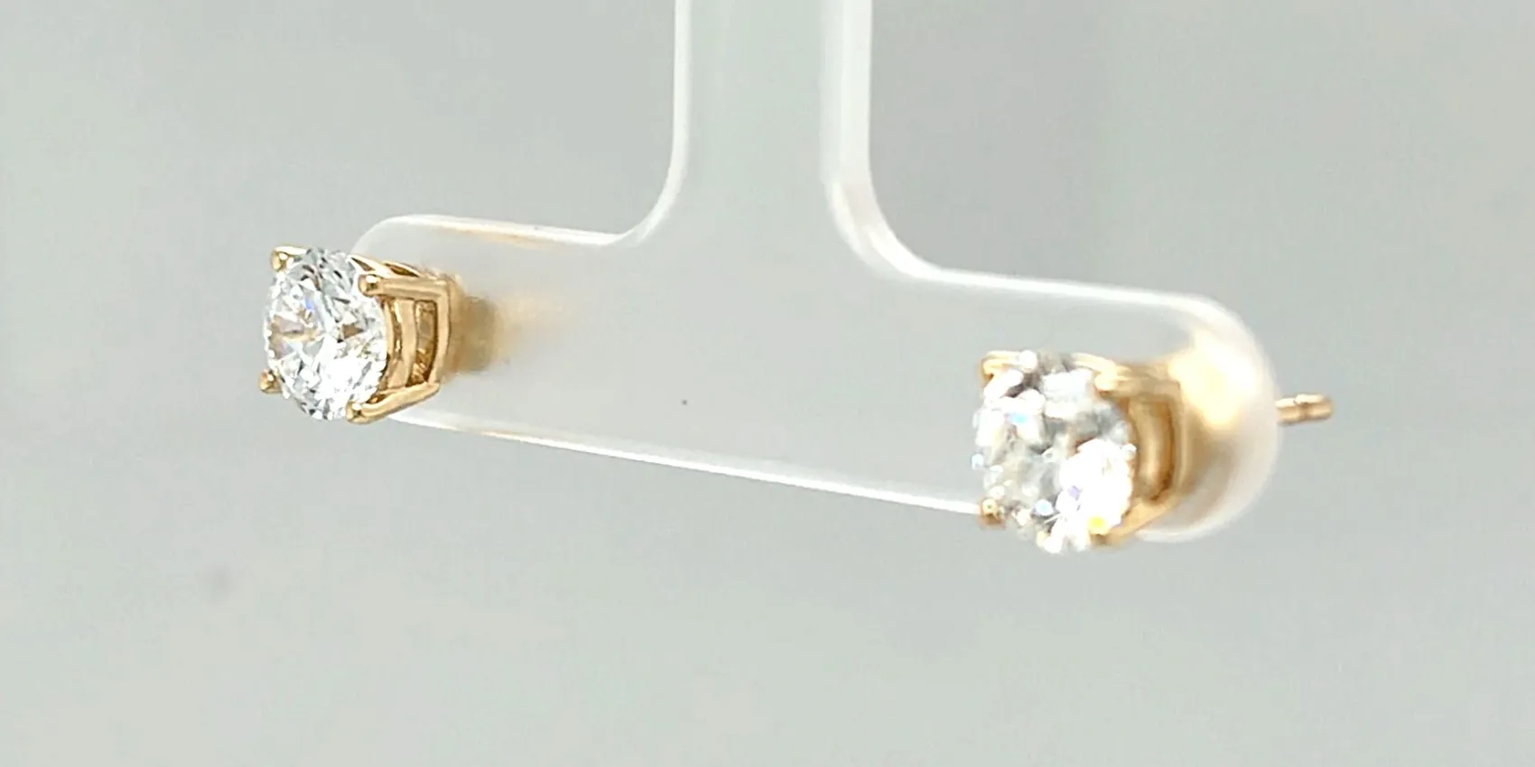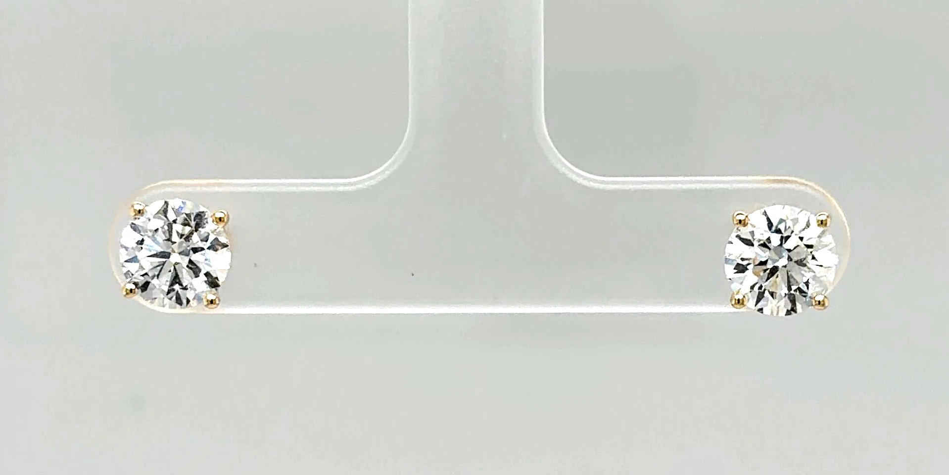 Add timeless brilliance to your jewellery collection with these elegant lab-grown diamond stud earrings. Featuring a combined 2.00 carats of beautifully cut round diamonds, this pair offers exceptional sparkle, clarity, and fire while reflecting ethical and sustainable craftsmanship. Each diamond is securely set in classic 9ct yellow gold, providing a warm, luxurious contrast that enhances the stones’ natural radiance. With a total weight of 1.8 grams, these studs are comfortable for everyday wear while maintaining a premium, high-quality feel. Perfect for gifting or elevating your own collection, these diamond stud earrings deliver enduring style and refined sophistication. Features: