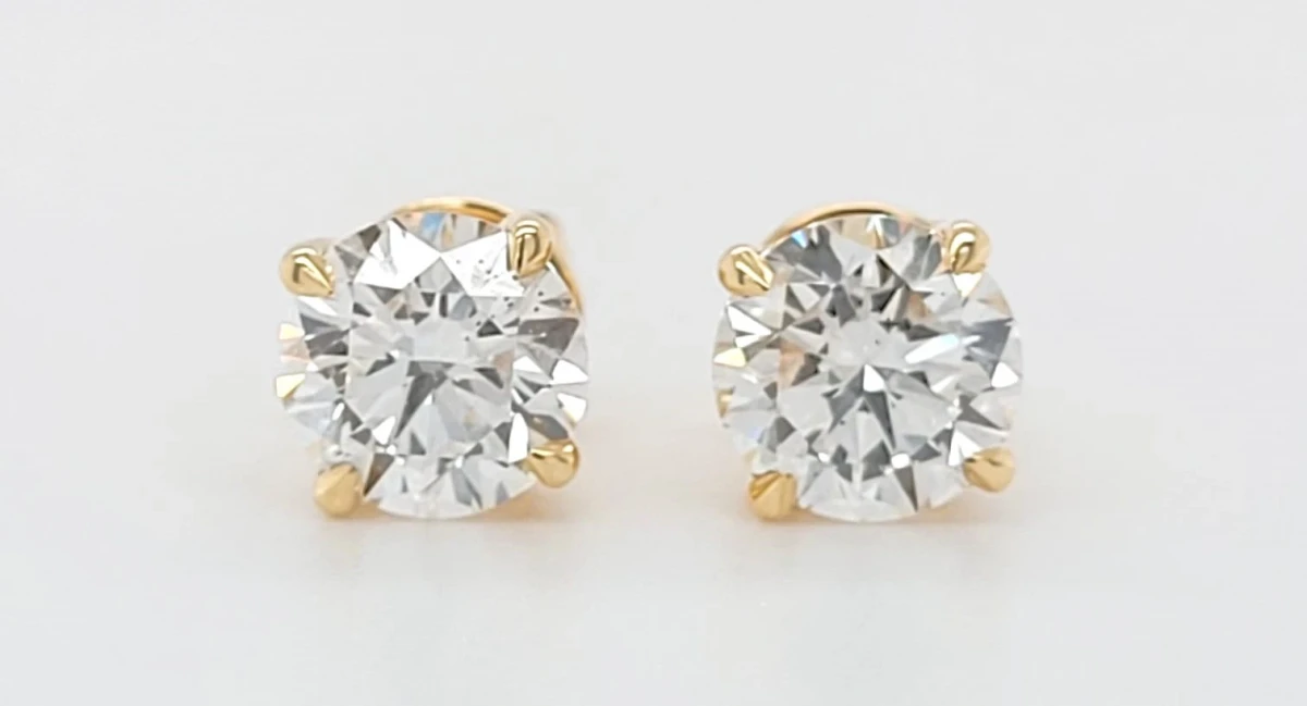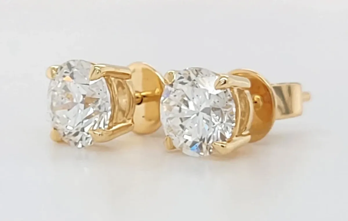 2.01ct Lab Grown Diamond & 9ct Gold Solitaire Stud Earrings – 1.8g Timeless elegance meets ethical brilliance in these stunning 2.01-carat lab grown diamond solitaire stud earrings set in radiant 9ct gold. Each earring showcases a beautifully cut lab created diamond, designed to catch the light and sparkle with every movement. Lightweight yet luxurious, these earrings weigh just 1.8 grams, making them perfect for everyday wear or special occasions. Crafted with precision and care, the classic solitaire design highlights the pure beauty and fire of the diamonds, while the sustainable sourcing reflects a commitment to responsible luxury. Whether gifting or treating yourself, these earrings offer a sophisticated statement with conscience.