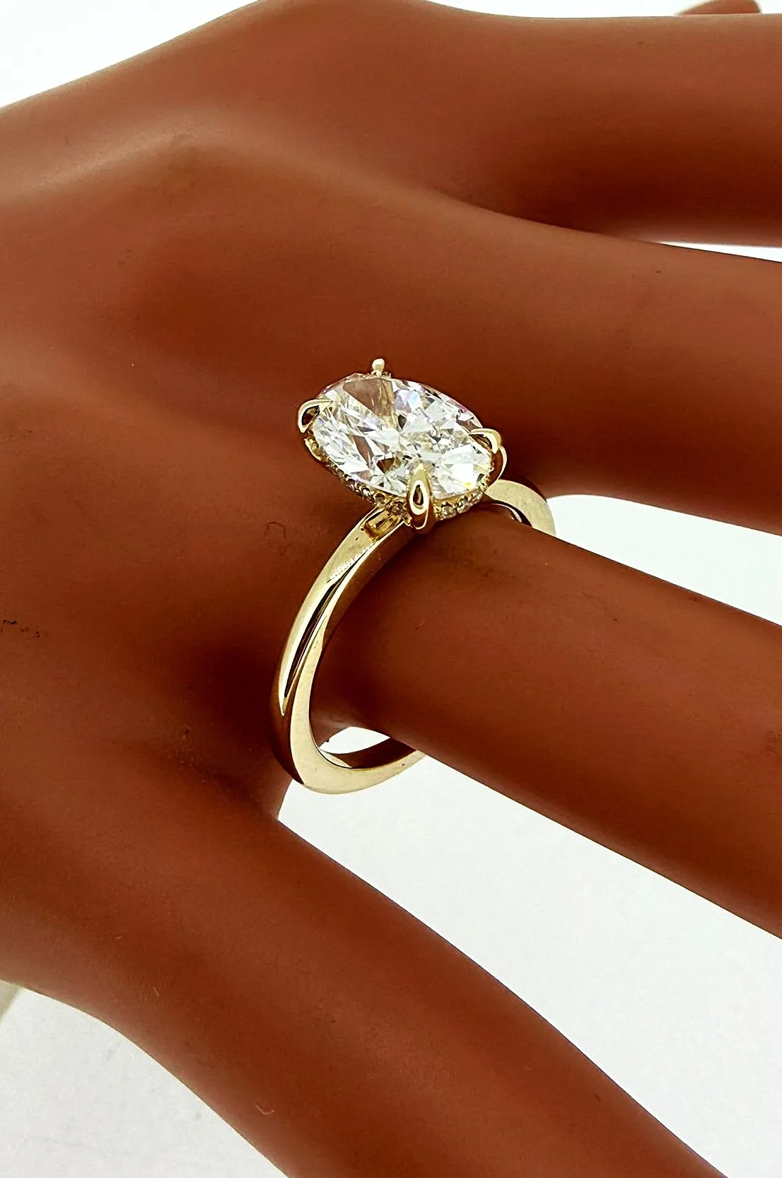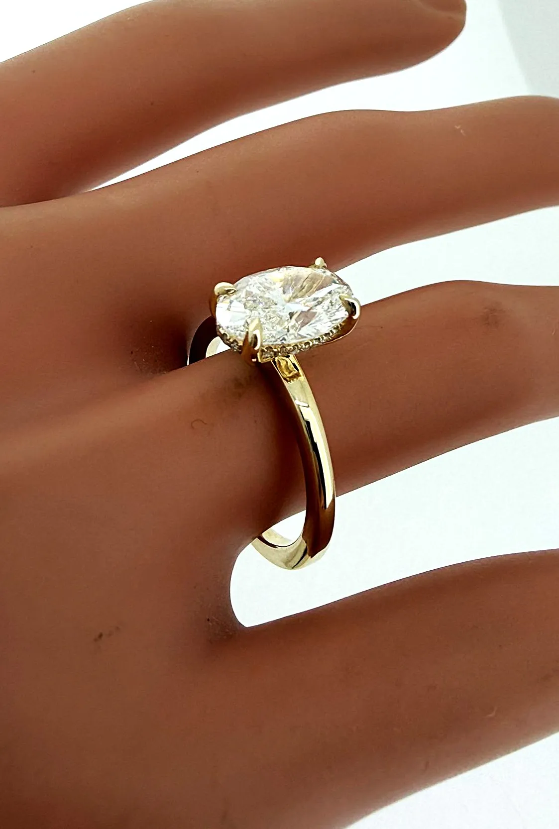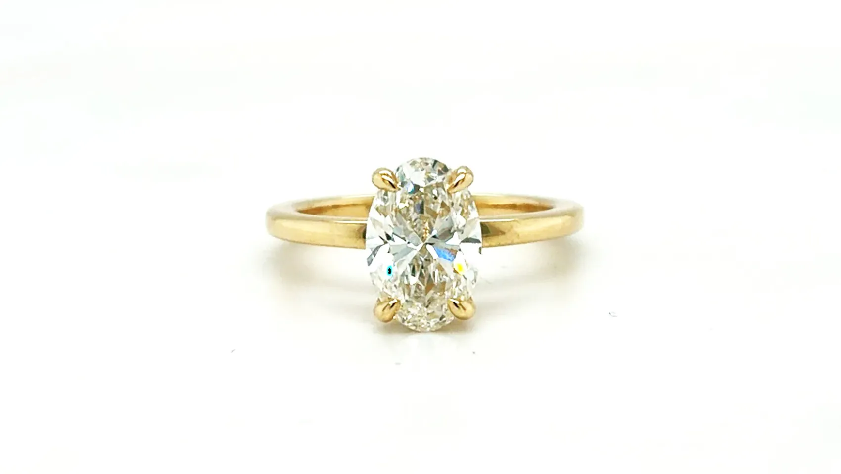 Elegant and eye-catching, this 2.09ct Lab Grown Diamond & 9ct Gold Solitaire Ring with Hidden Halo beautifully combines classic design with modern detailing. At the centre sits a stunning 2.09 carat lab-grown diamond, expertly set in a traditional solitaire style to maximise brilliance and light reflection. Beneath the centre stone lies a delicate hidden halo, a circle of smaller diamonds positioned discreetly under the main diamond. This subtle feature enhances the overall sparkle and adds depth to the design while maintaining the clean, timeless appearance of a solitaire ring from above. Crafted from 9ct gold, the band provides both durability and a warm, elegant finish that complements the brilliance of the diamond. With a total weight of 3.14g, the ring offers a comfortable yet quality feel on the finger. Lab-grown diamonds share the same physical, chemical, and optical properties as natural diamonds, delivering exceptional sparkle while offering a modern and more sustainable alternative. Key Features